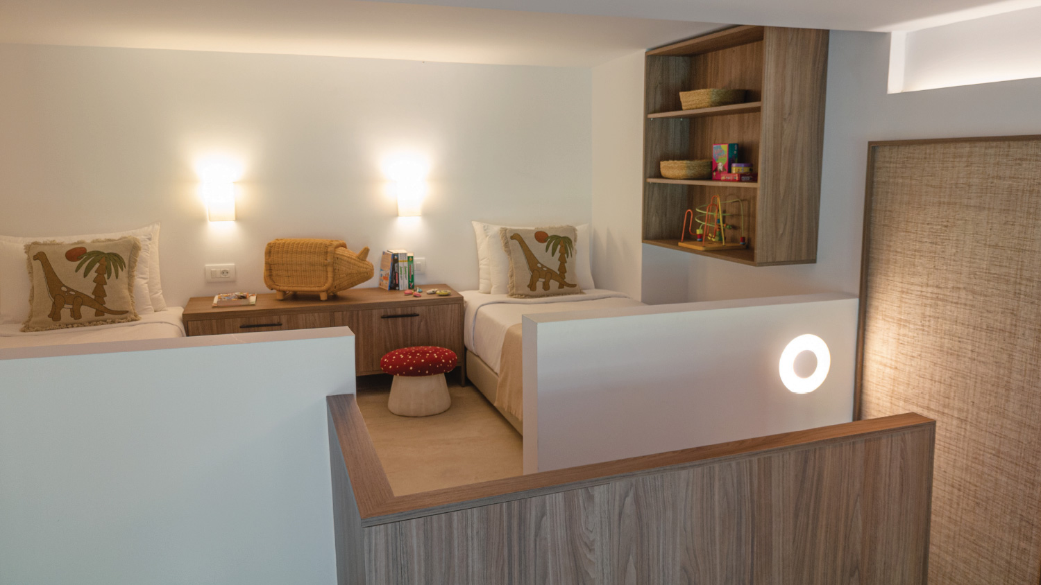 Updated family accommodation ideally located on the ground floor for seamless indoor-outdoor living. An ideal choice for relaxed family holidays, the Premier Loft Family Guestroom Garden View provides 2 separate sleeping spaces, one on the ground floor and one in the loft area, connected through a wooden staircase. The direct access to the lush garden evokes the feeling of being one with nature and brings together indoor and outdoor living.