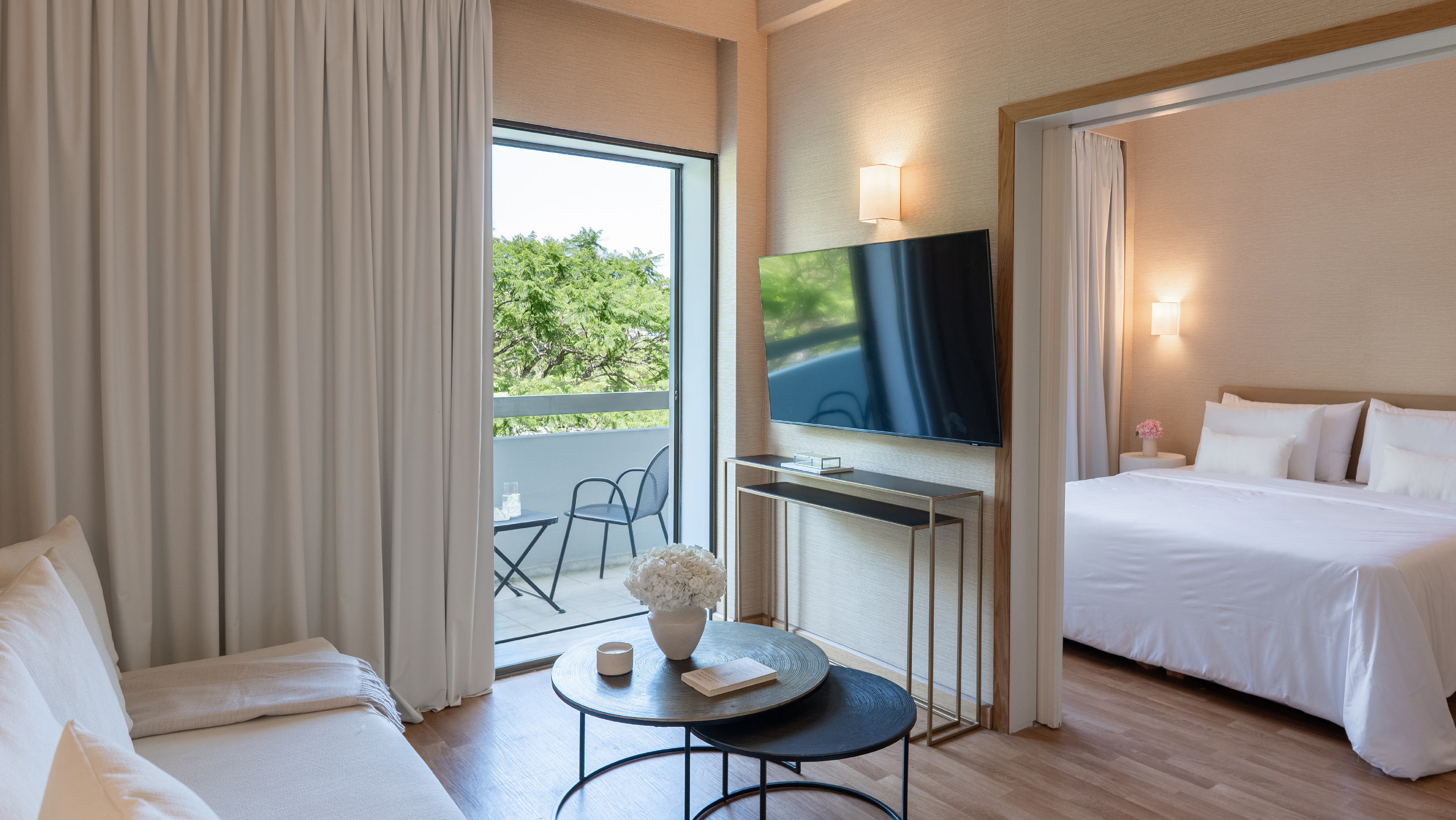 A spacious family apartment focusing on unpretentious comfort, the Superior Family Apartment Inland view features 2 separate bedrooms and a cosy open plan living area, guaranteeing privacy and togetherness for all. The private balconies are perfect for lounging and fun moments all day long, overlooking the resort’s beautiful landscape.
