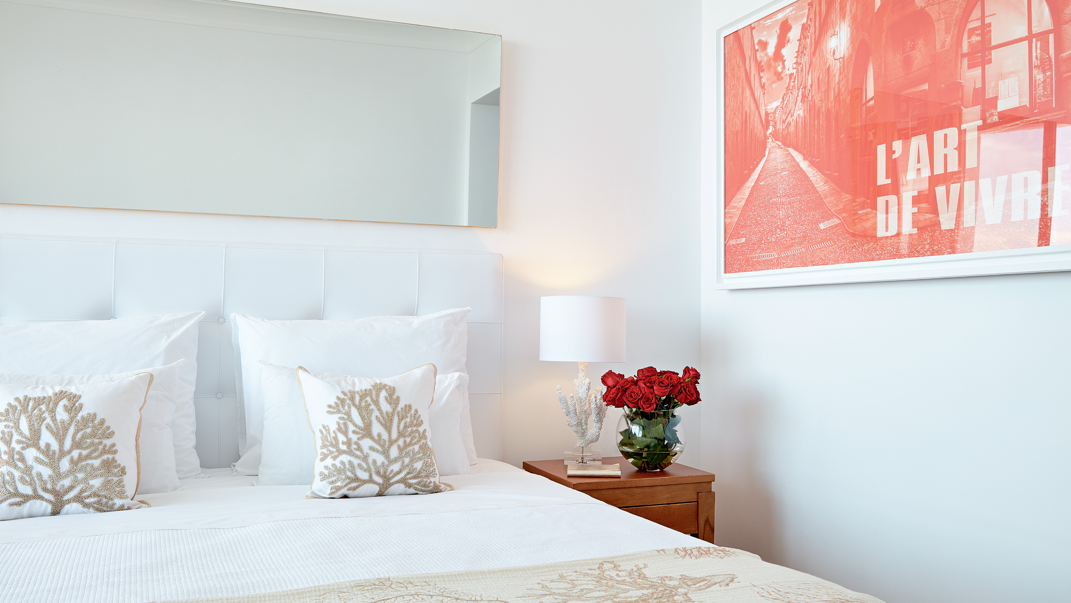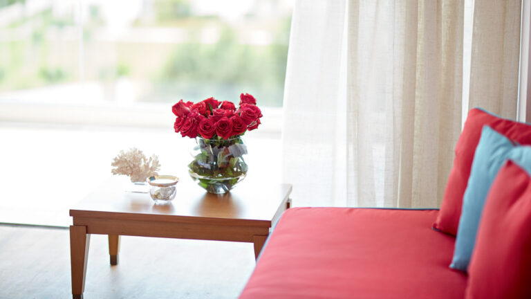 Double Guestroom is illuminated within a neutral palette of colors, embellished with details of ruby and scarlet.