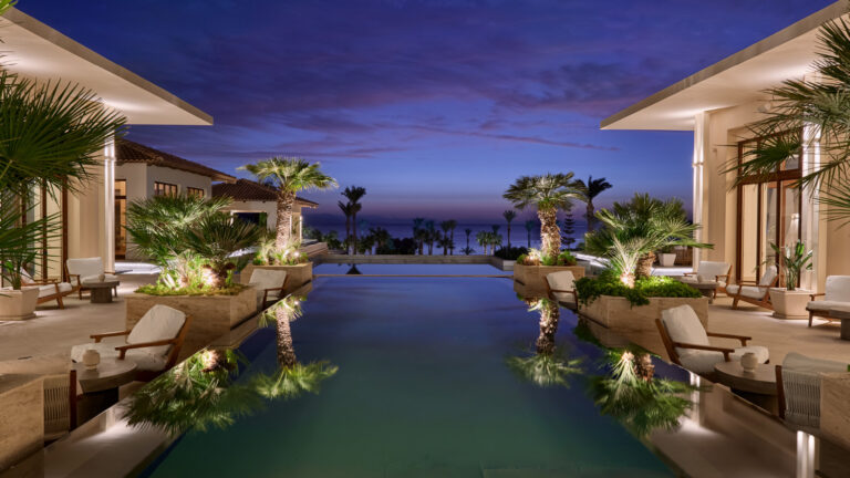 Set in the resort’s lush tropical gardens, the resort offers redesigned luxury family suites with island aesthetics, sculptural furniture, and travertine bathrooms with freestanding tubs, alongside bungalows, family rooms, and suites around a shared pool, plus sea-view rooms, penthouses, and beachfront villas with private pools.
