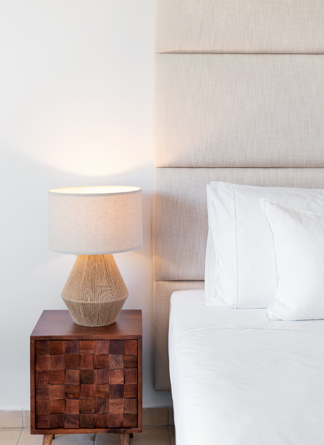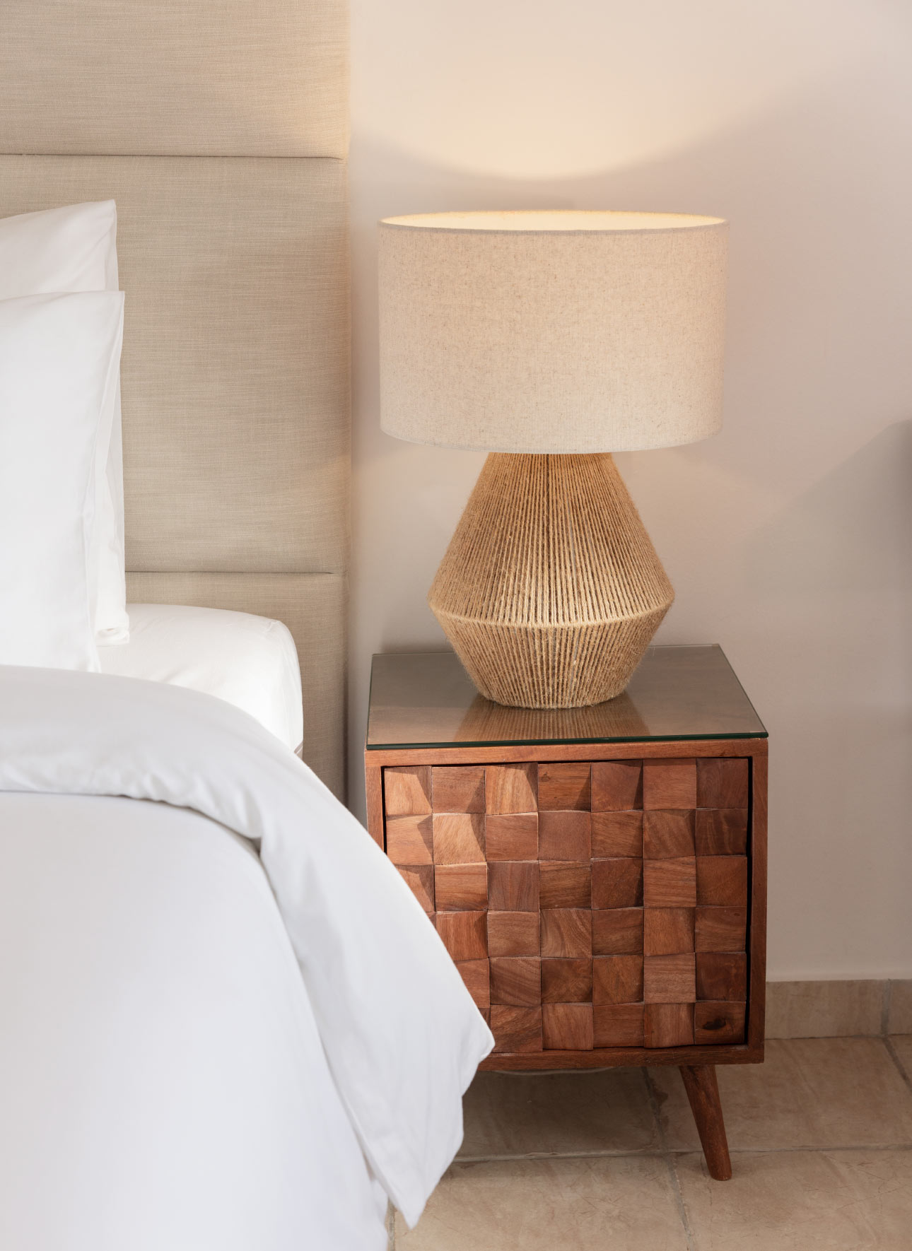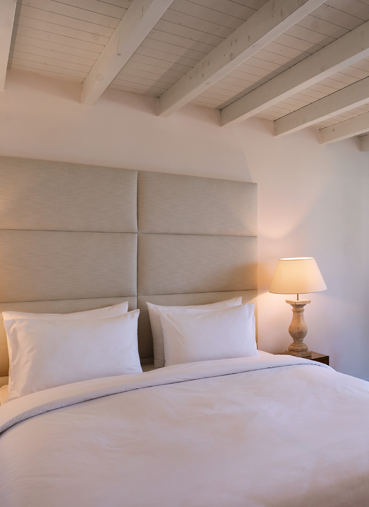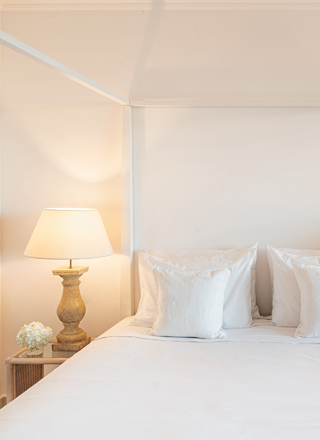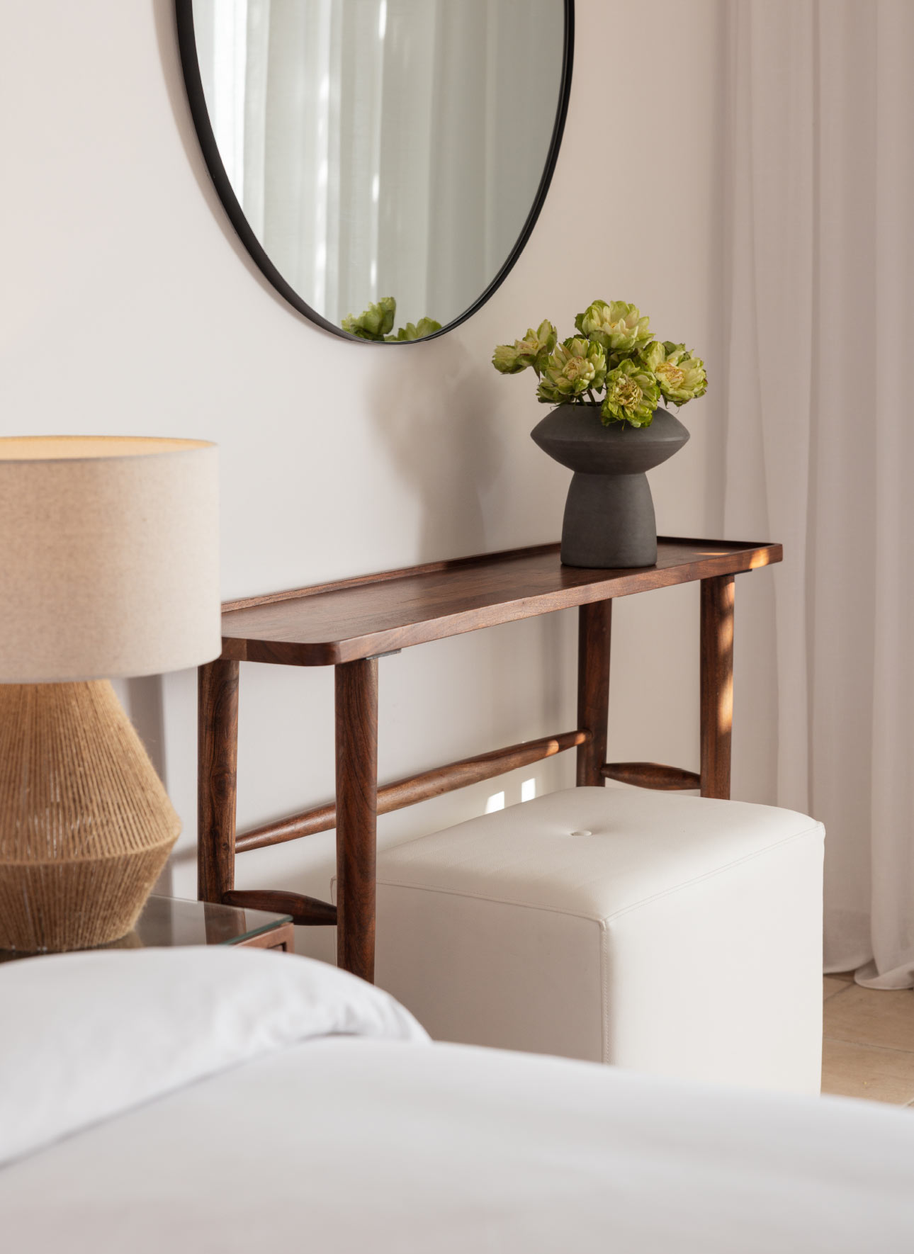 Bright summer hues, airy fabrics, crisp whites, raffia, and bamboo bring a fresh, restyled touch to the elegant guestrooms. Spacious verandas open to sweeping views of the sea and the lush palmerai, offering a serene escape filled with coastal charm.
