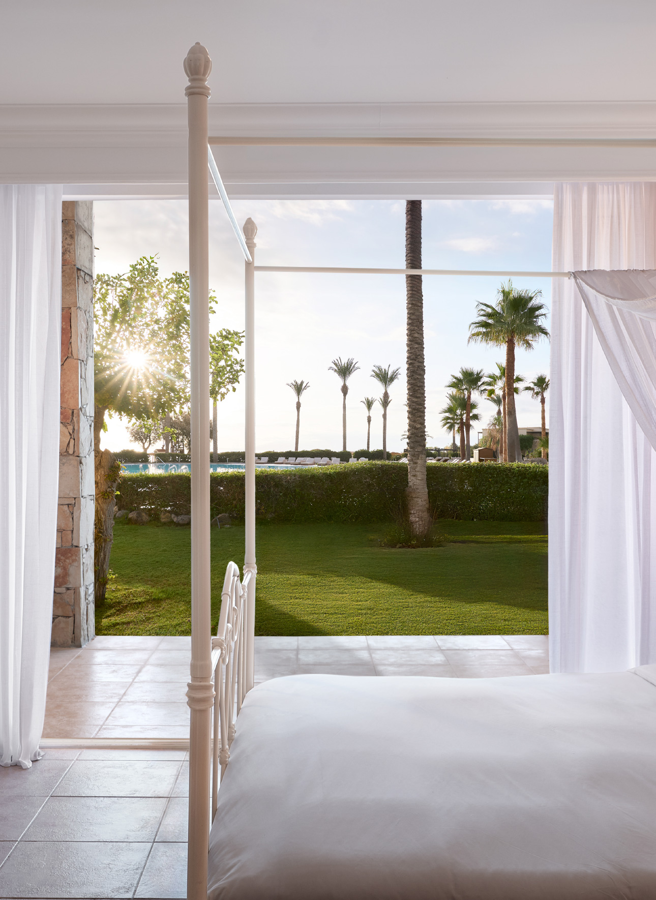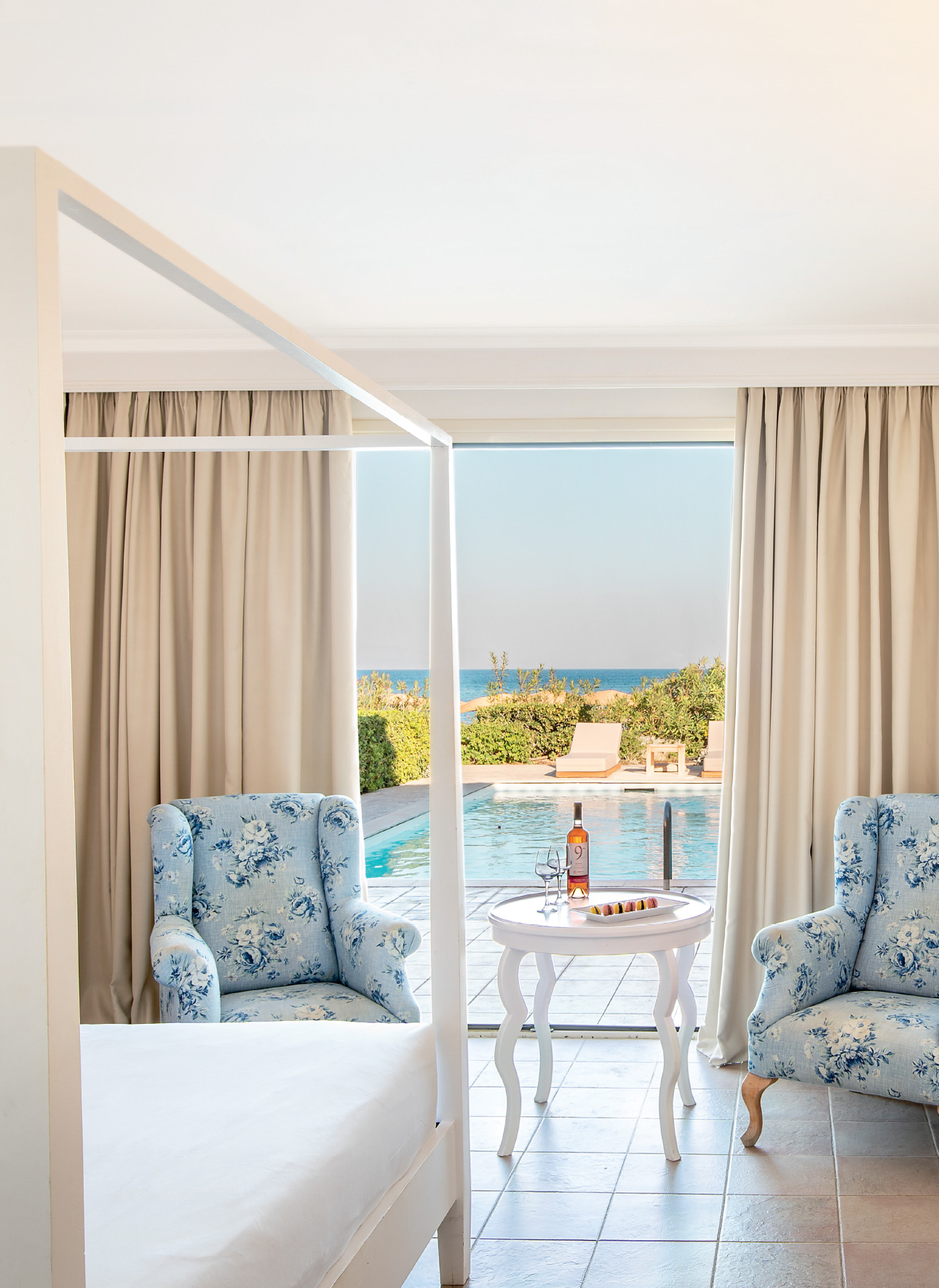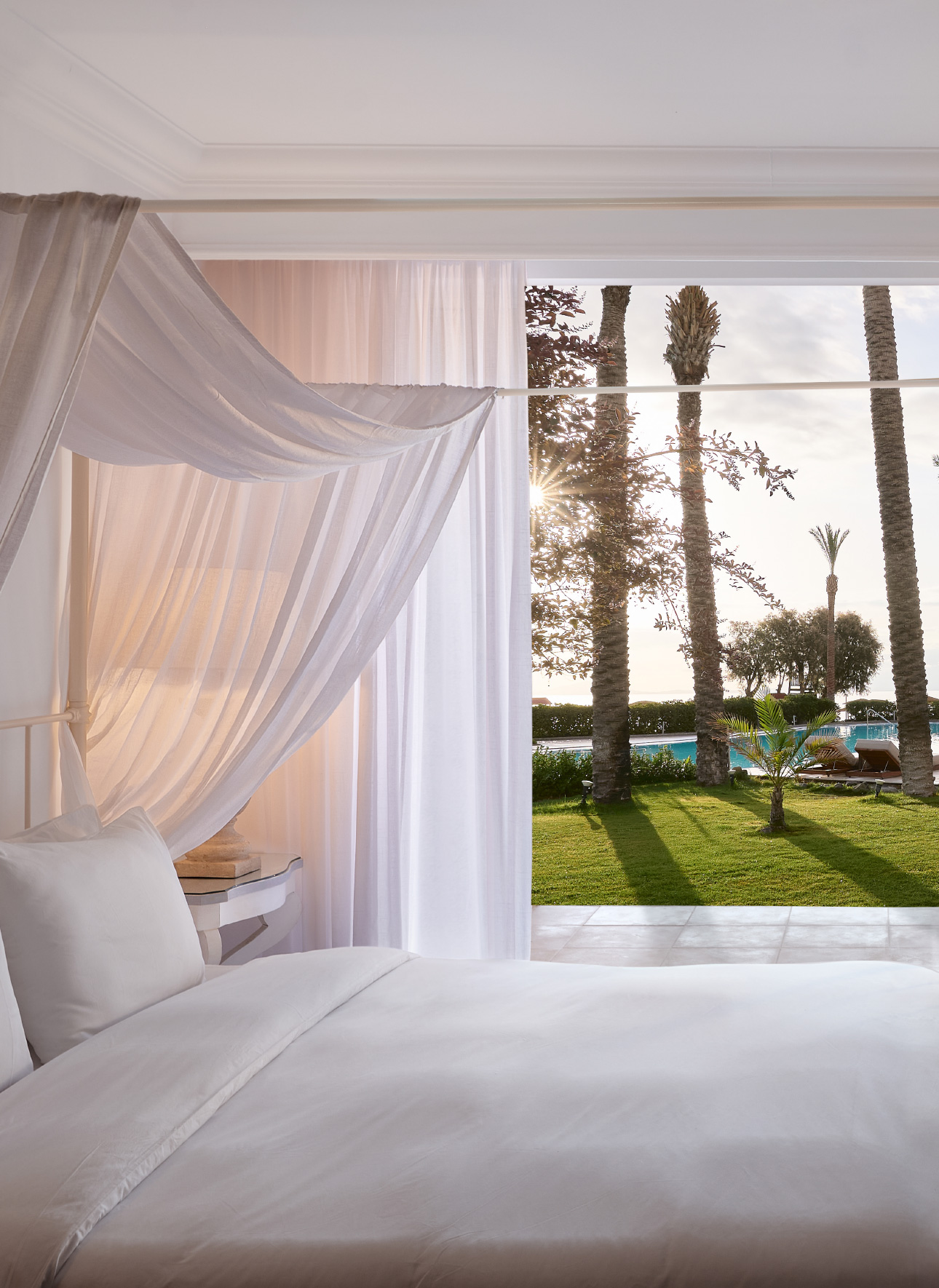 Standout among the collection are the entirely redesigned luxury family suites where sculptural furniture, soft fabrics and travertine-clad bathrooms with freestanding bathtubs bring a cool island aesthetic to life.
