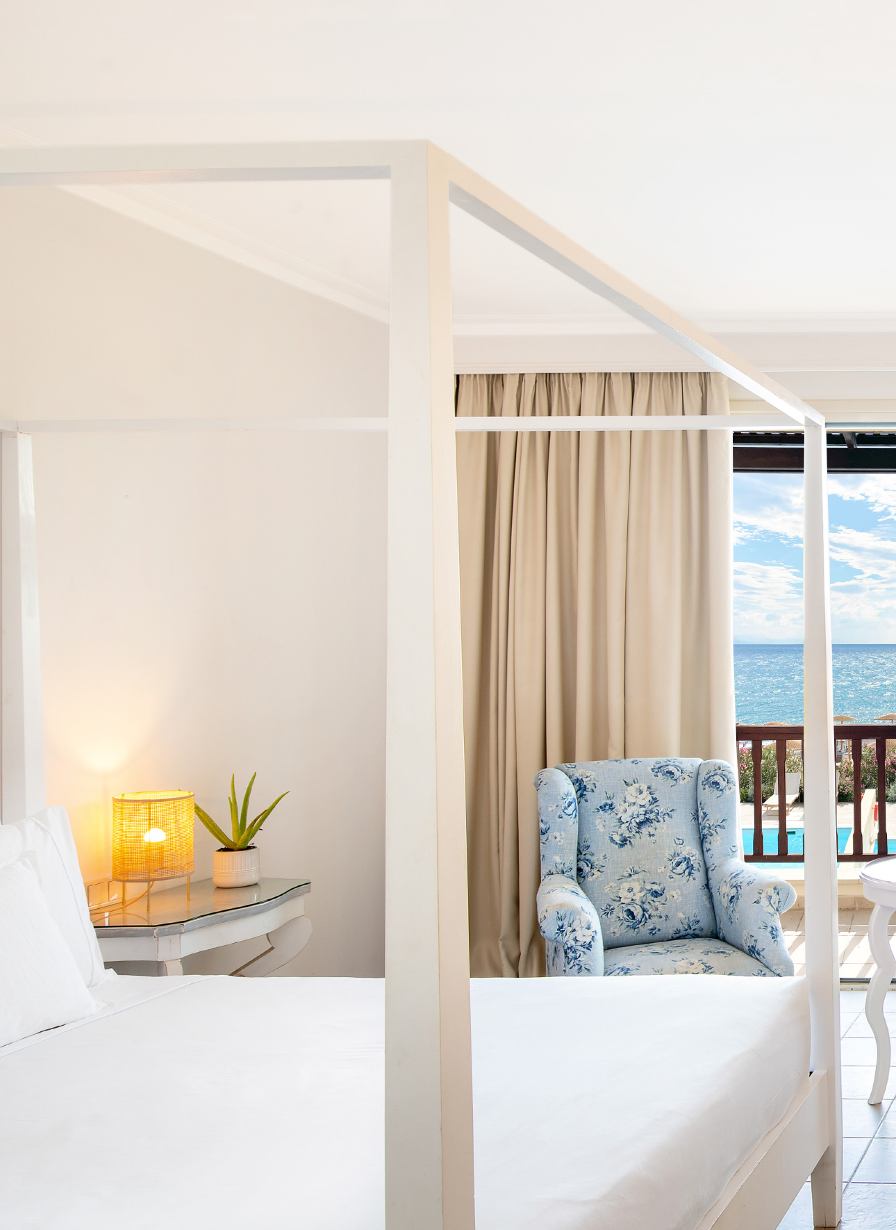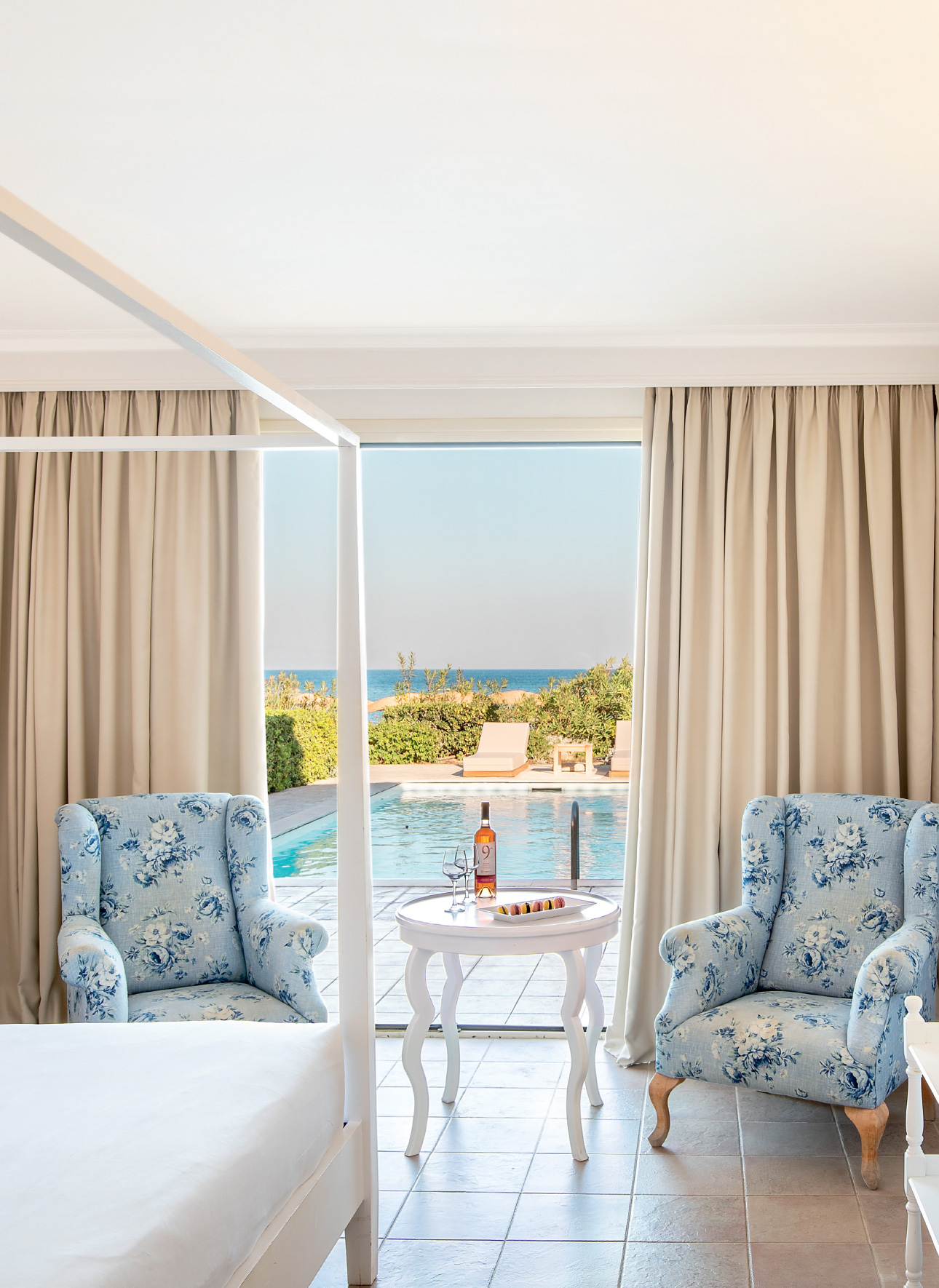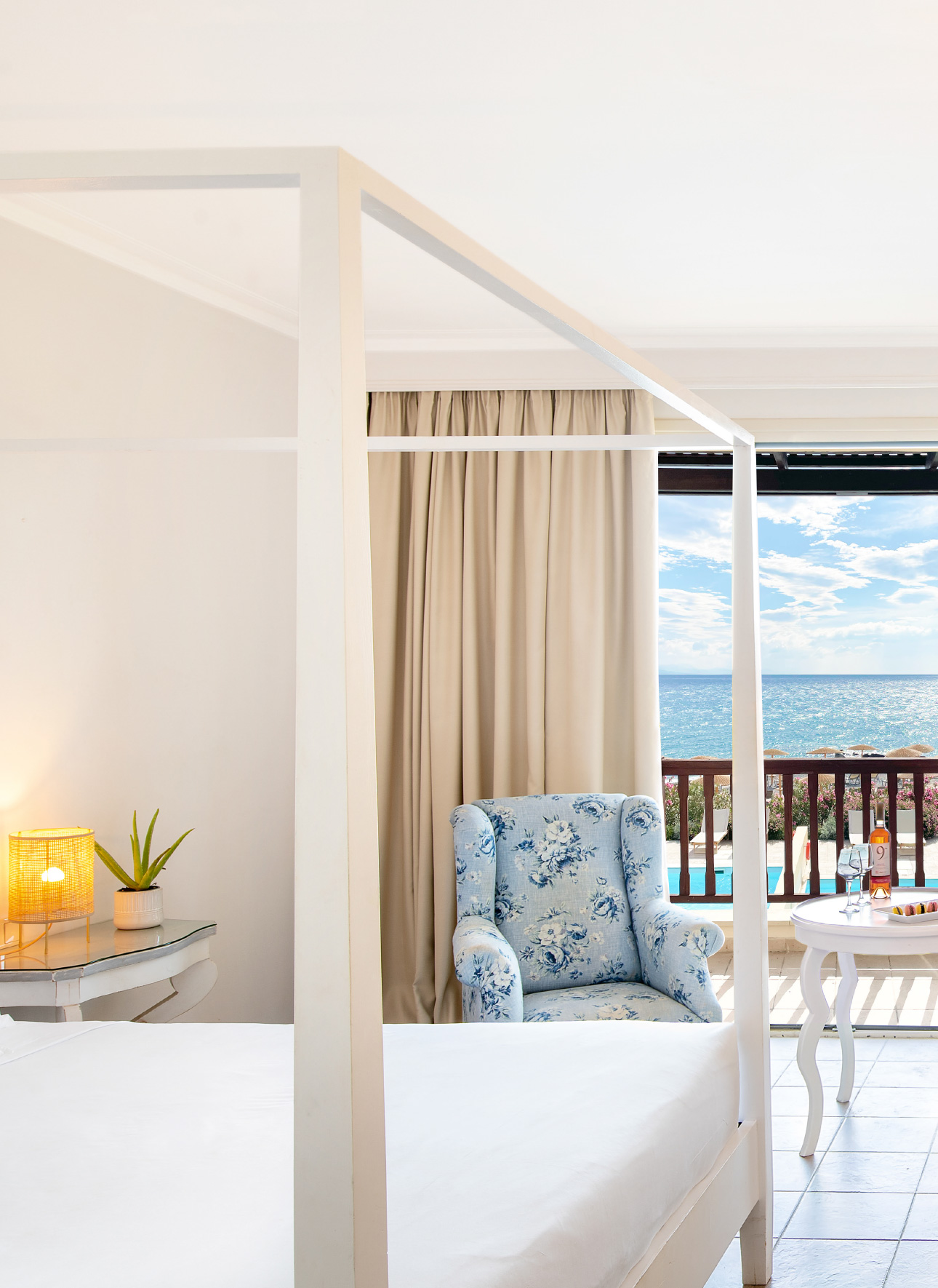 From well-appointed sea-view rooms and sun-drenched bungalows to sweeping penthouse suites and beachfront villas with private pools, accommodation at Grecotel LUX®ME Kos offers something extraordinary at every turn. A spectacular 250-square-metre two-level residence crowns it all, with expansive verandas and uninterrupted views of the Aegean.