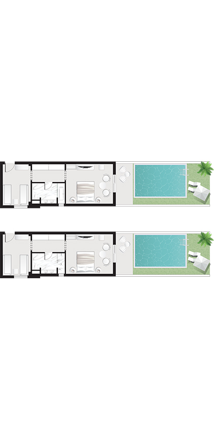 Beachfront bungalows offering private pools, generous interiors, and breathtaking views of the sea.