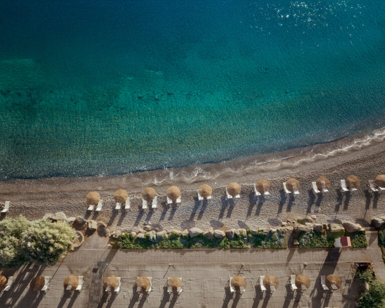 The resort’s private pebble beach opens directly onto the shimmering Aegean. With the clearest of waters and attentive beach service at your fingertips, it is a serene coastal haven designed for effortless days spent under the Mediterranean sun.
