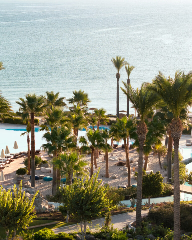 At the heart of the resort, the spectacular lagoon pool complex wraps around Papaya Island, a lush sandy islet adorned with hammocks and plush loungers, with fire pits glowing come evening. Winding around it, a brand-new lazy river offers a sun-drenched drift through gardens and waterways. When the pull of the sea becomes irresistible, the resort’s private pebble beach opens directly onto the Aegean, where beach service and crystalline waters await.