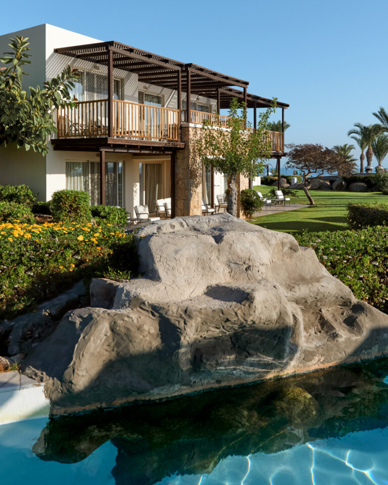 Diese eleganten, sonnendurchfluteten Villen empfangen Sie mit einer romantischen Atmosphäre. Sie befinden sich in den privaten Gärten am Strand und haben einen direkten Zugang zu den Pools des Resorts.