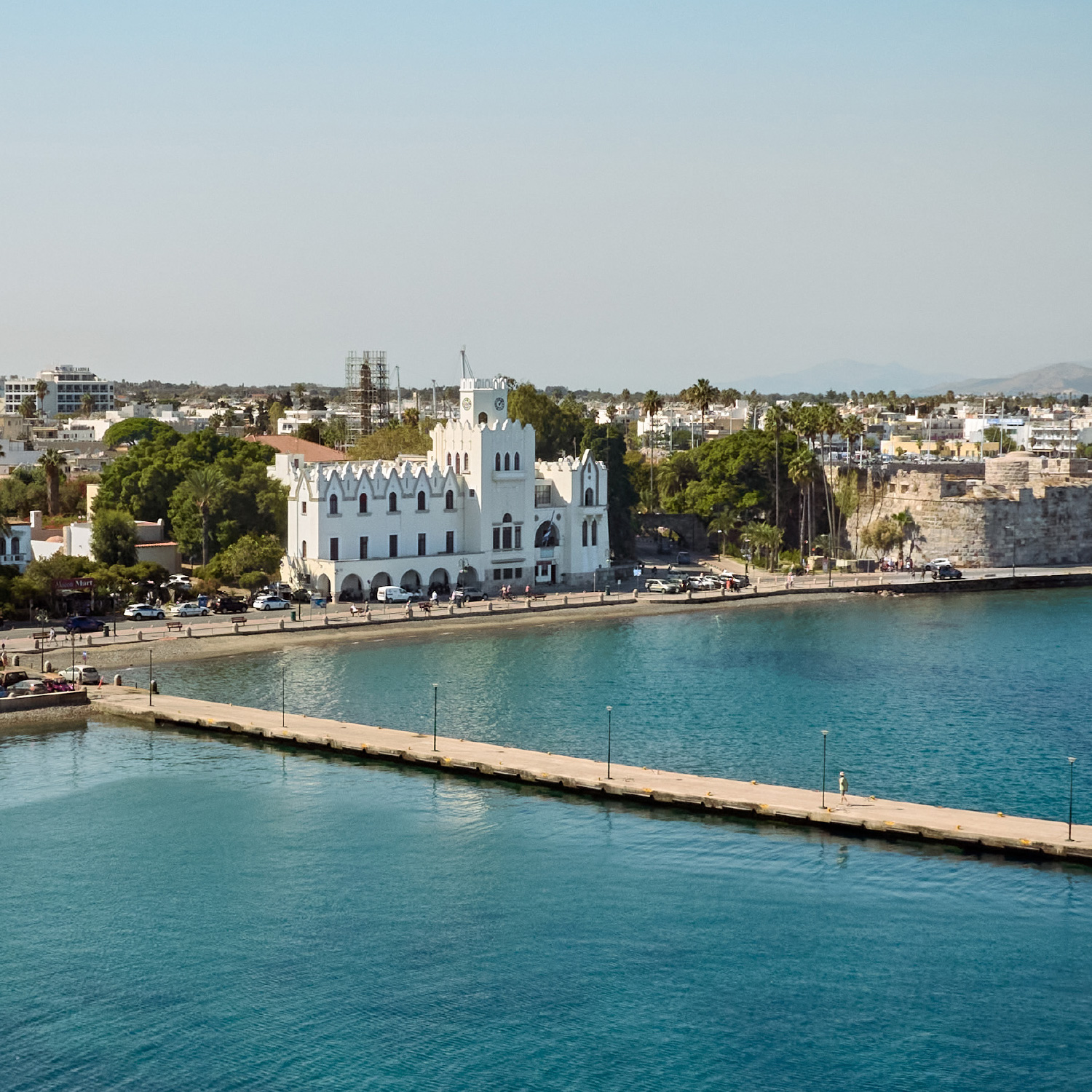 Kos Town is a small and elegant place. Situated at the crossroads of empires, Kos developed a cosmopolitan vibe. Until 1948, the island was part of the Italian Kingdom, which significantly influenced its public architecture. Kos has many cultural sites scattered across the city, which can be explored at your own pace. The plentiful shade provided by the many trees makes this historical walk enjoyable. Kos Town is well-known for its 13 km cycling road, which begins a few kilometers before our hotel, making the town a cyclist’s paradise. The town offers many dining and nightlife options for all ages. From the party corner of Bar street to quiet brunch places and traditional fish taverns, Kos Town can please every taste and lifestyle.