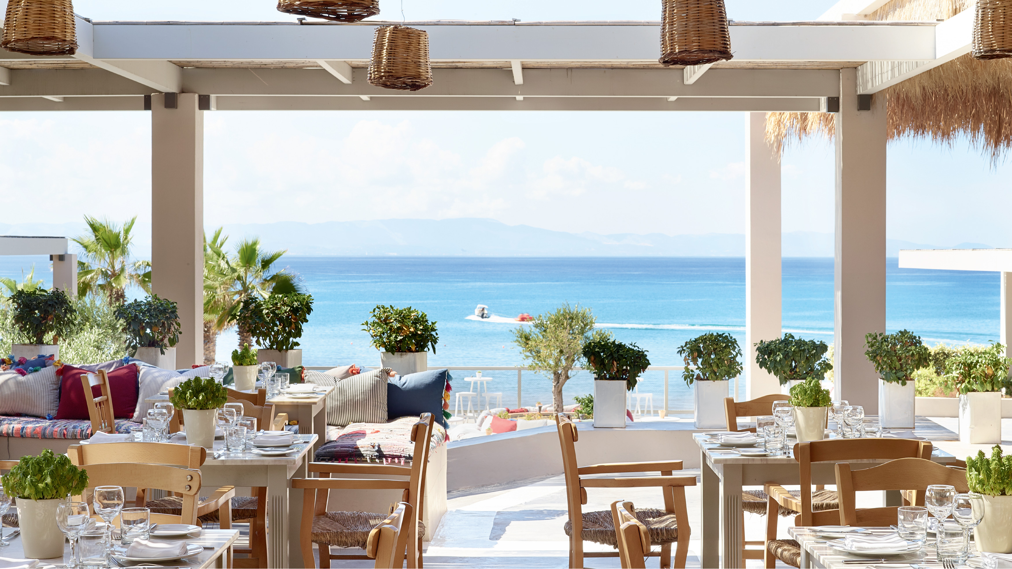 This colorful, lively Greek taverna offering traditional meze and authentic Greek dishes made from the freshest local ingredients. Enjoy lunch or dinner al fresco on a sea-view terrace with mind-blowing views of the Ionian. In the evening, Taverna Tavernaki transforms into a lavish à la carte venue, featuring signature dishes like oven-baked lamb with feta and thyme which bring the taste of Greece to life.