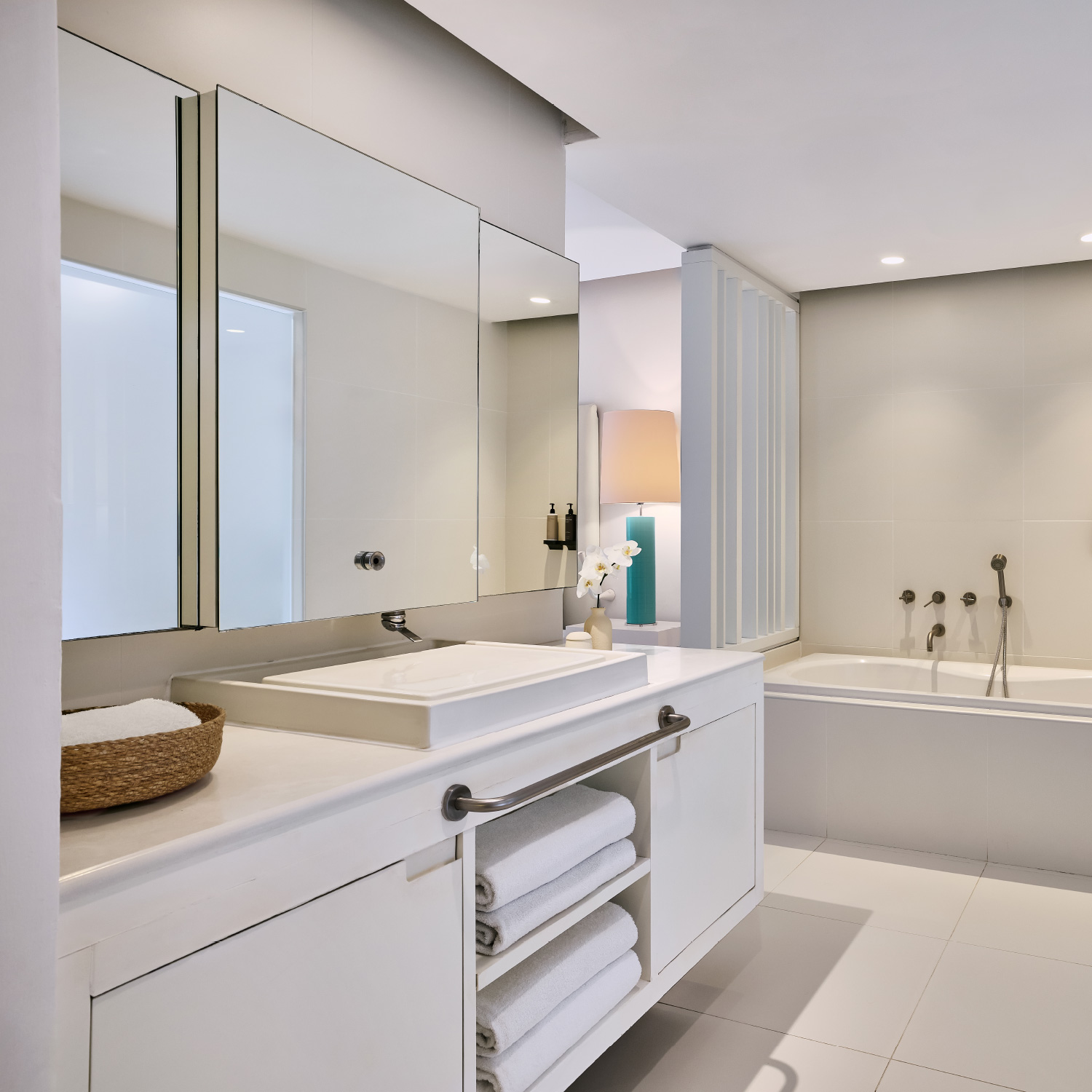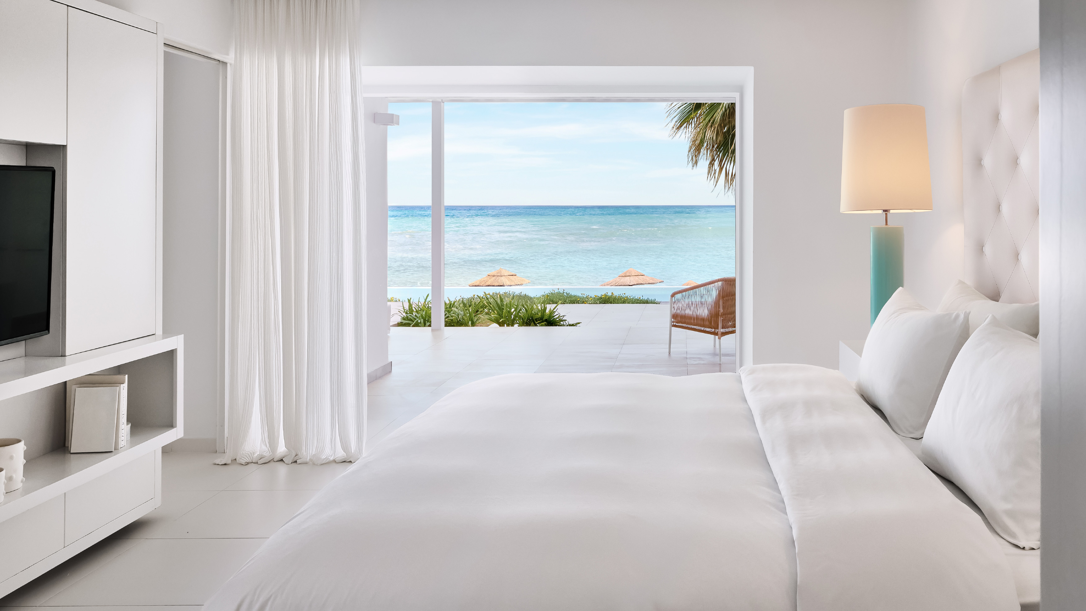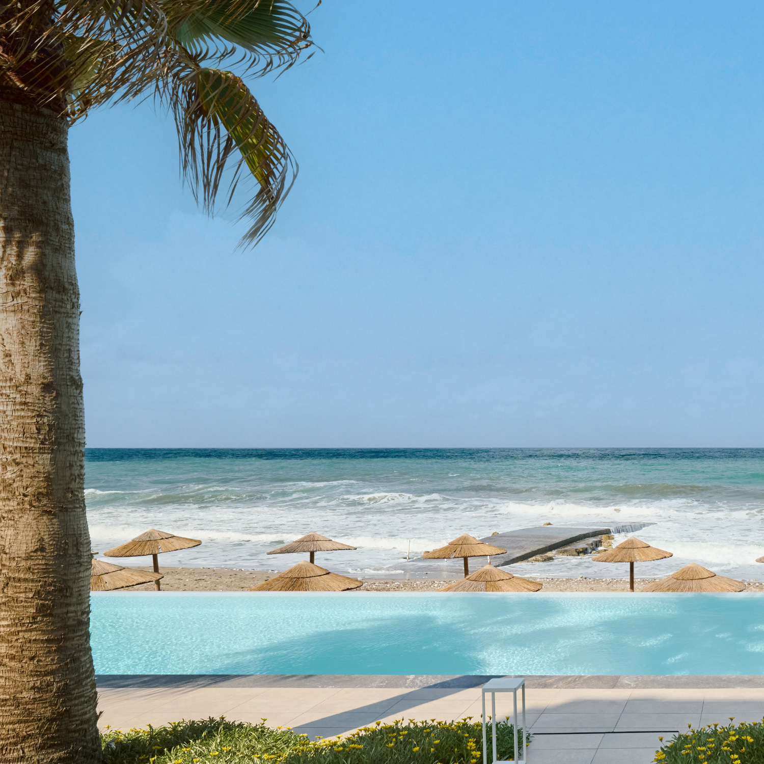 A sun terrace which seems to flow right into the exclusive access infinity pool, custom design furnishings, and an oversized patio a breath away from the Aegean Sea, are only a few of the ultra-luxury details of this suite. Relax like you have never relaxed before in your landscaped garden on a sunbed under an umbrella, choose between shower or bath in your ensuite bathroom, sink into your king size bed, and ensure that the kids are happy in the separate living area that turns into their sleeping area.