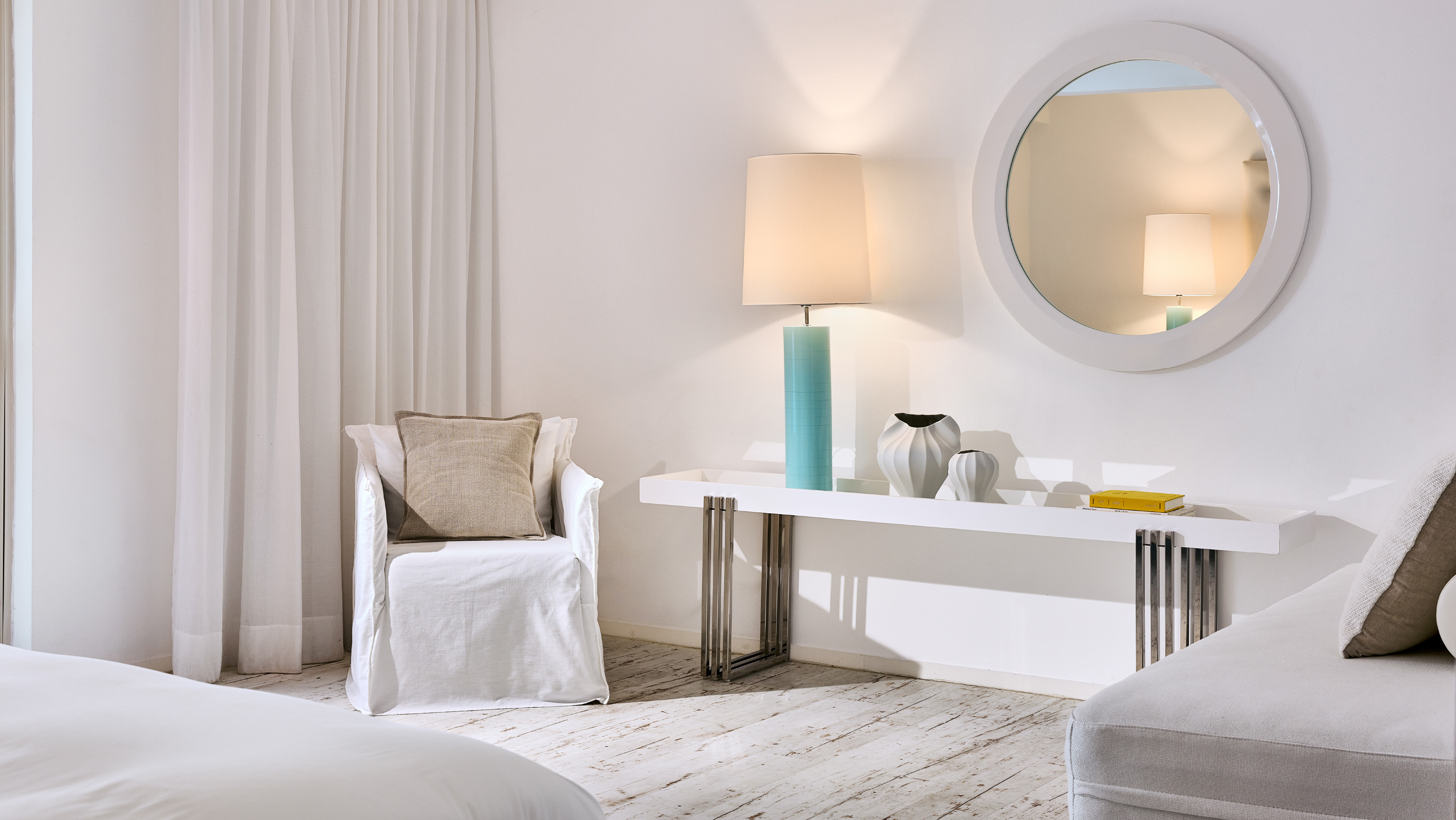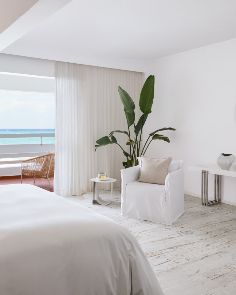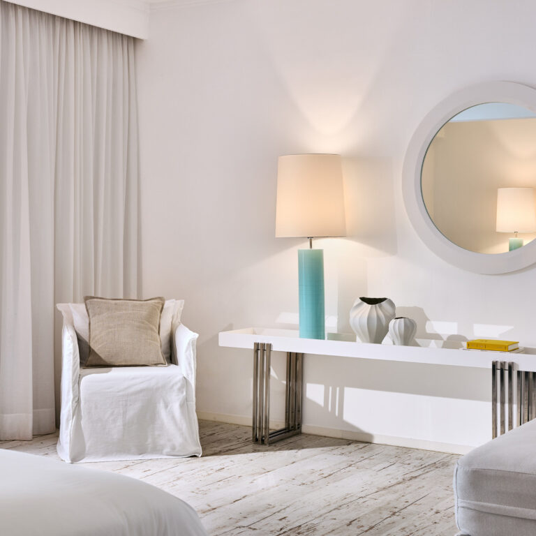 Prunk trifft in dieser hellen Suite auf griechisches Weiß und Blau, das durch die Farben des Sonnenuntergangs abgerundet wird. Ein offenes Hauptschlafzimmer mit Wohnbereich, und ein geräumiger Balkon sorgen für einen unvergesslichen Aufenthalt. Diese Suite ist ideal für eine kleine Familie und fängt das Essenz des Resorts perfekt ein.