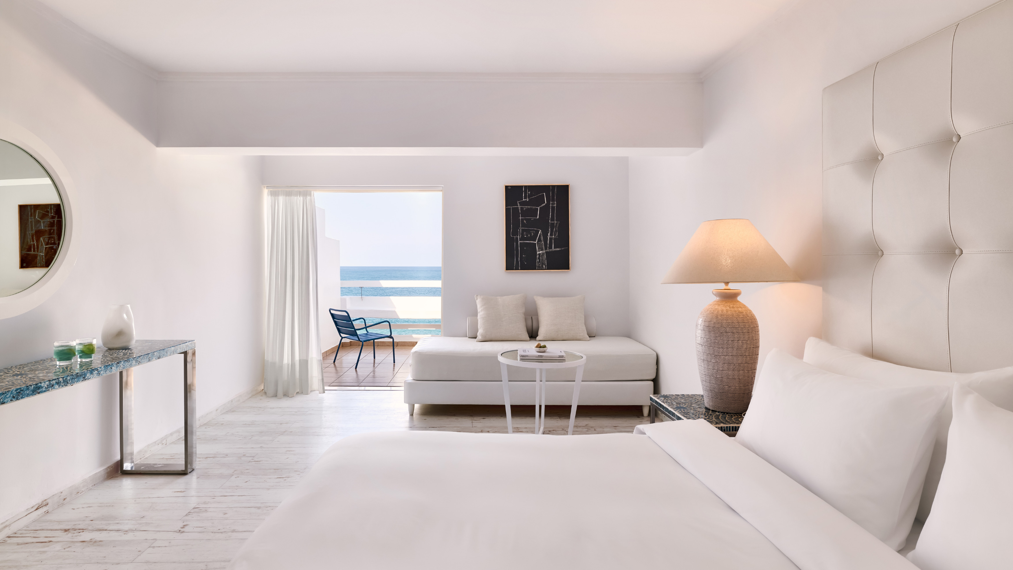 Unsere exquisiten Familienzimmer mit offenem Meerblick wurden für Komfort, Ruhe und eine atemberaubende Aussicht konzipiert. Mit 37 Quadratmetern ist dieser geräumige Rückzugsort für bis zu 2 Erwachsene und 1 Kind geeignet und garantiert einen unvergesslichen Aufenthalt für die ganze Familie. Die offene Raumaufteilung sorgt für ein Gefühl der Zusammengehörigkeit und ermöglicht gemeinsame Momente und schöne Familienzeiten.