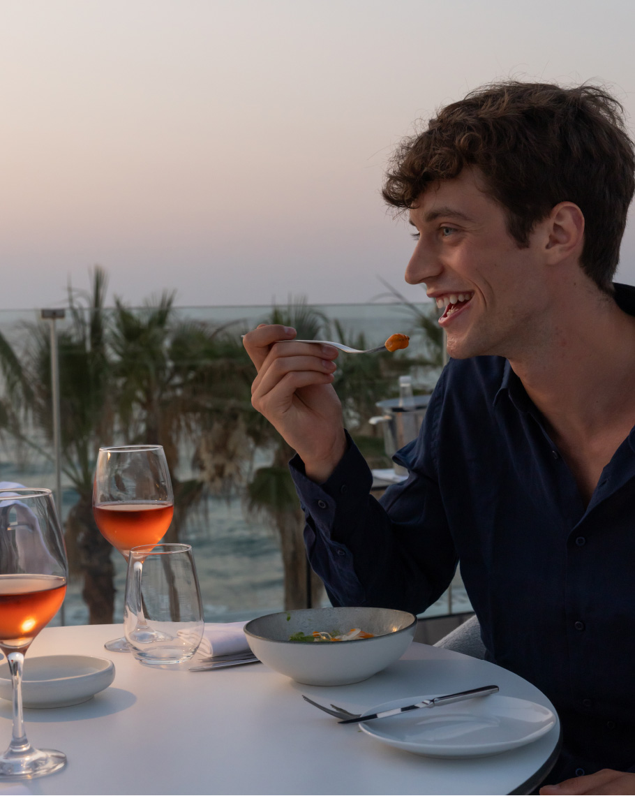 Dans l’un des endroits les plus privilégiés du LUXME White, sur une magnifique terrasse surplombant la vaste mer bleue et sous le ciel étoilé de Crète, vous pouvez profiter d’une expérience gastronomique des plus élégantes. Que pensez-vous du homard et du vin mousseux pour le dîner ? Un menu créatif prêt à satisfaire les palais les plus sophistiqués s’offre à vous, non seulement pour répondre à vos attentes, mais aussi pour les dépasser. Détendez-vous dans le superbe cadre extérieur du restaurant et savourez un verre de vin mousseux gratuit, tout en découvrant le menu de homard créé par nos chefs talentueux.