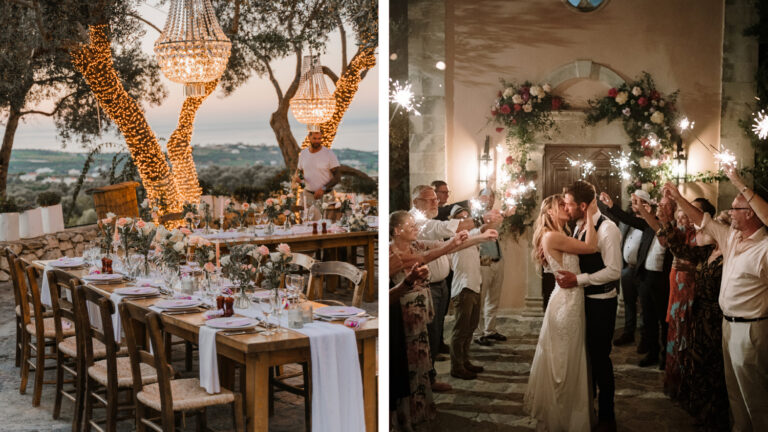 Un lieu de réception unique surplombant la mer de Crète, où la nature met en scène le coucher de soleil.