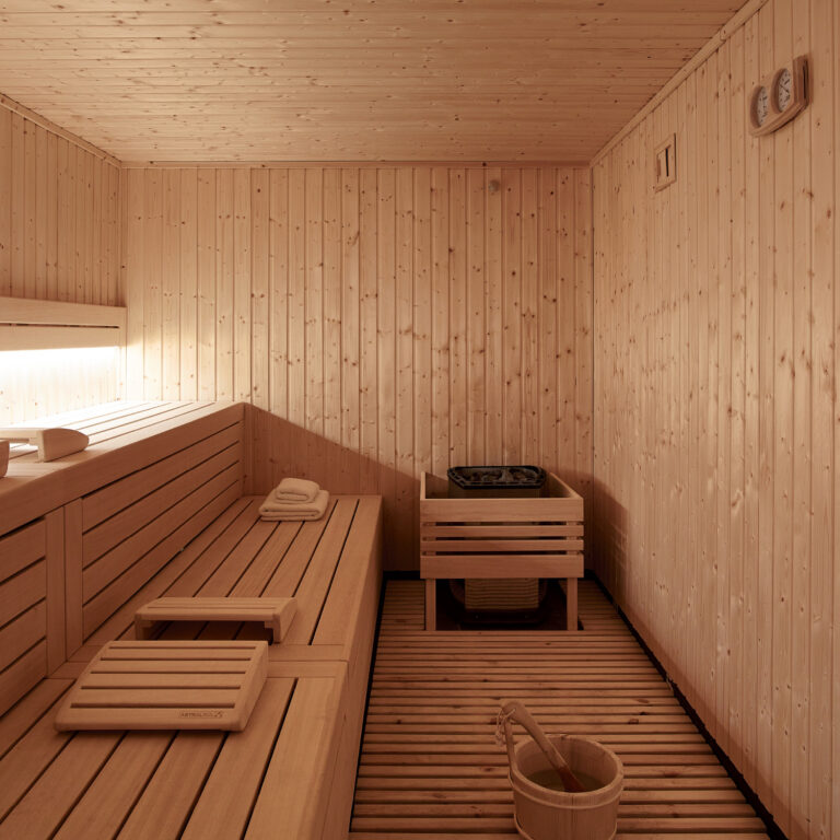 Two distinct sauna rooms invite you to unwind in an atmosphere of quiet luxury, where warmth, design, and serenity come together for deep relaxation.