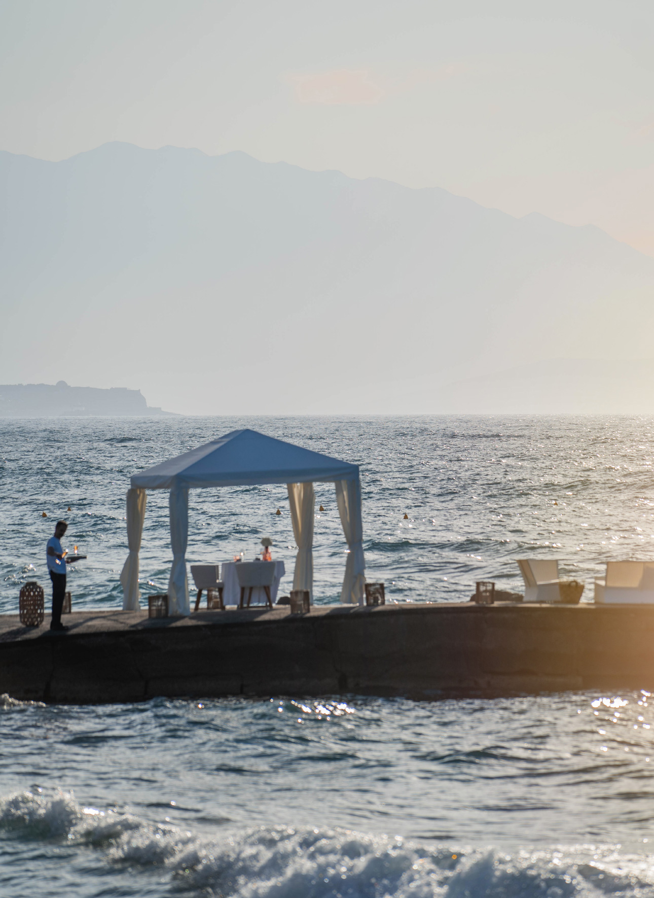 A unique terrace overlooks the spectacular scenery of the Rethymnon Riviera and the famous Cretan sunset making it an idyllic locale for hosting intimate weddings and receptions.