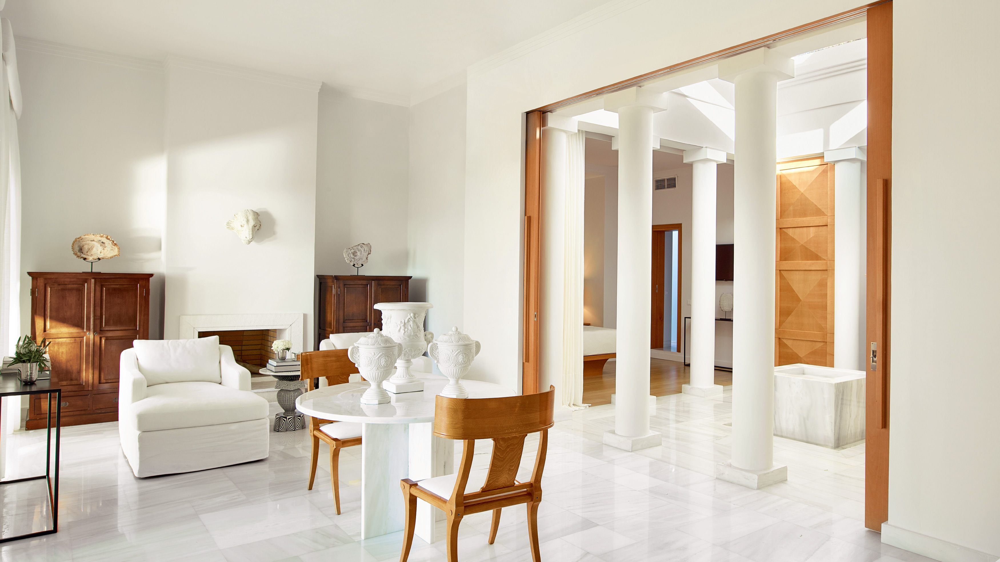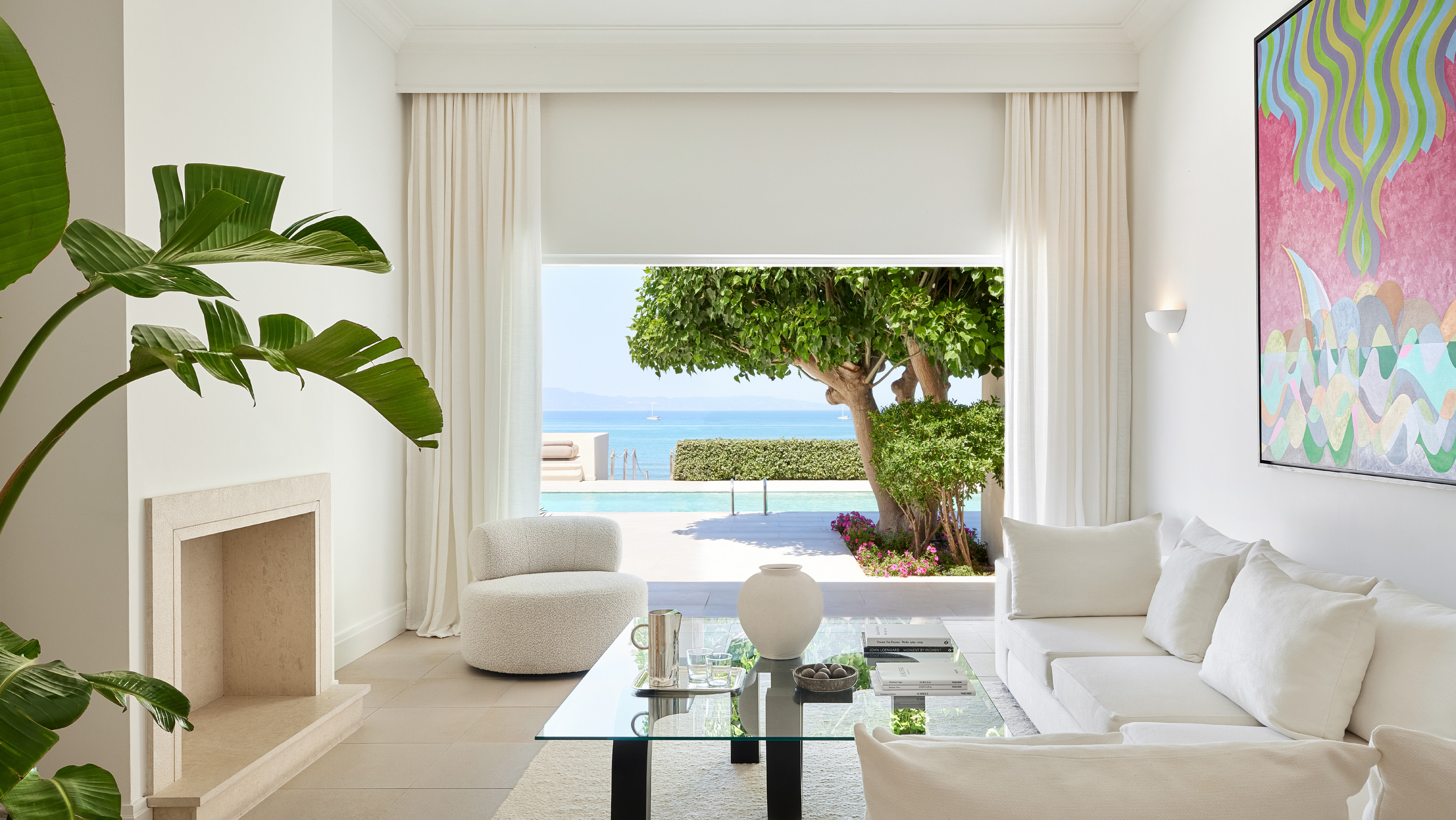 Located in the most exclusive section of Mandola Rosa Riviera, this Grand Sunset Residence offers the most extravagant beachfront setting in the resort with its own private beach cabana. The Residence is set out all in one level with amazing terraces, a grand marble pool and a more private master suite pool; all with infinity views to the sea. There are 5 bedrooms, all in crisp white cotton and linen decoration with luxurious bathrooms. The Grand Master suite is centered around a sparkling skylight with direct sea views, a cool veranda to relax or dine, a his & hers bathroom and a walk-in wardrobe room. The Salon opens to the covered and open air verandas with outdoor cozy cinema, ideal for family time together. Throughout the Residence the luxury of Greek marble, rich wood and works of Art creates a feeling of serenity, all in an amazing natural setting with the sounds of the sea.