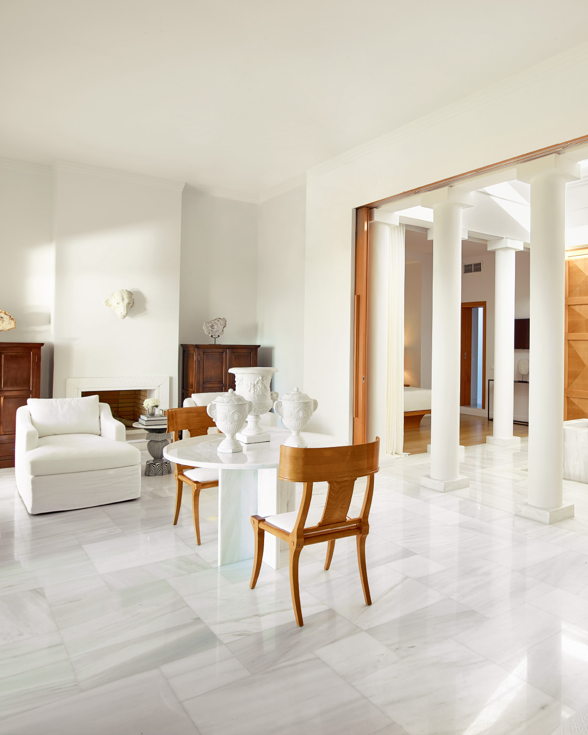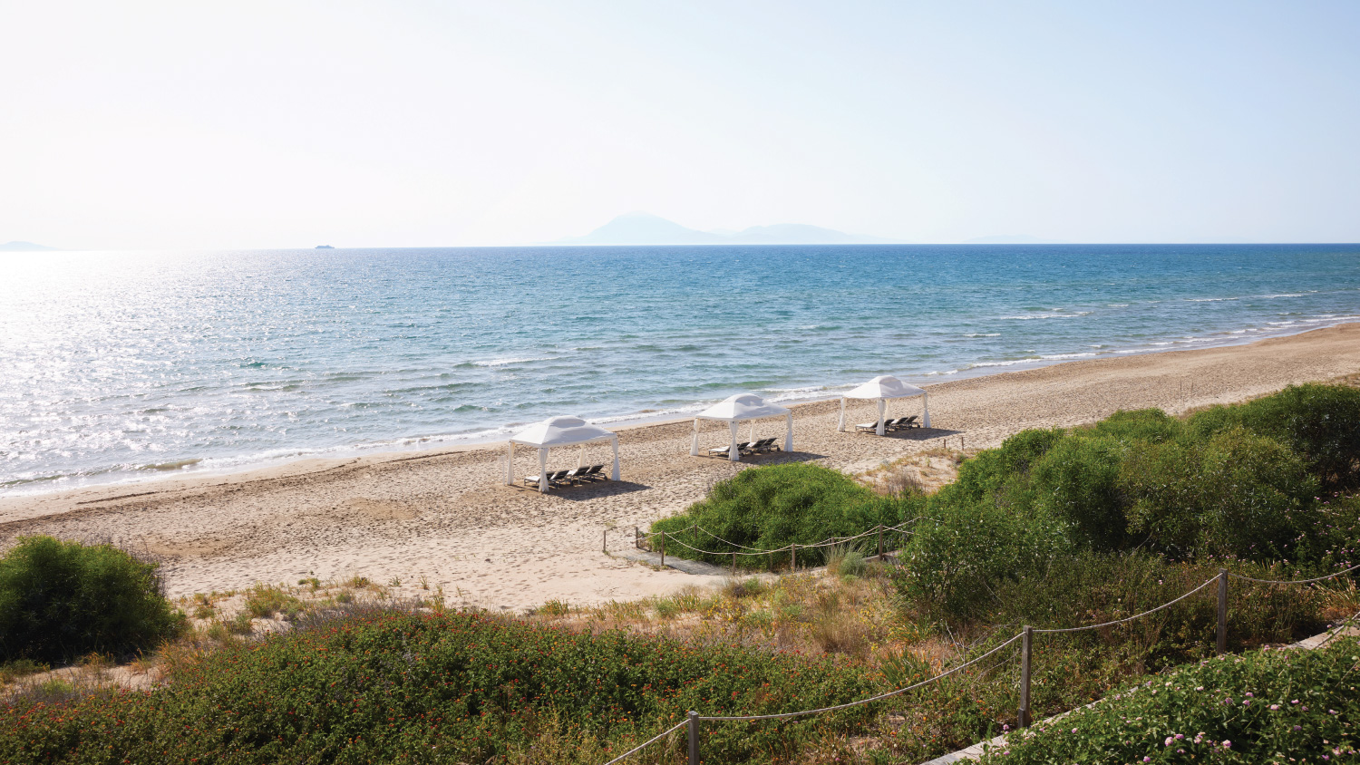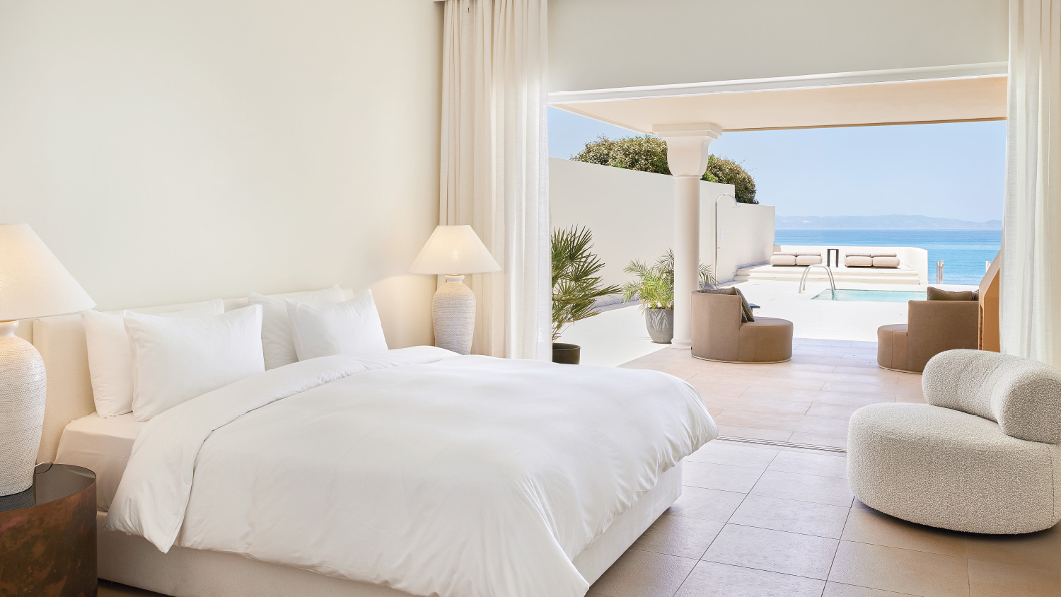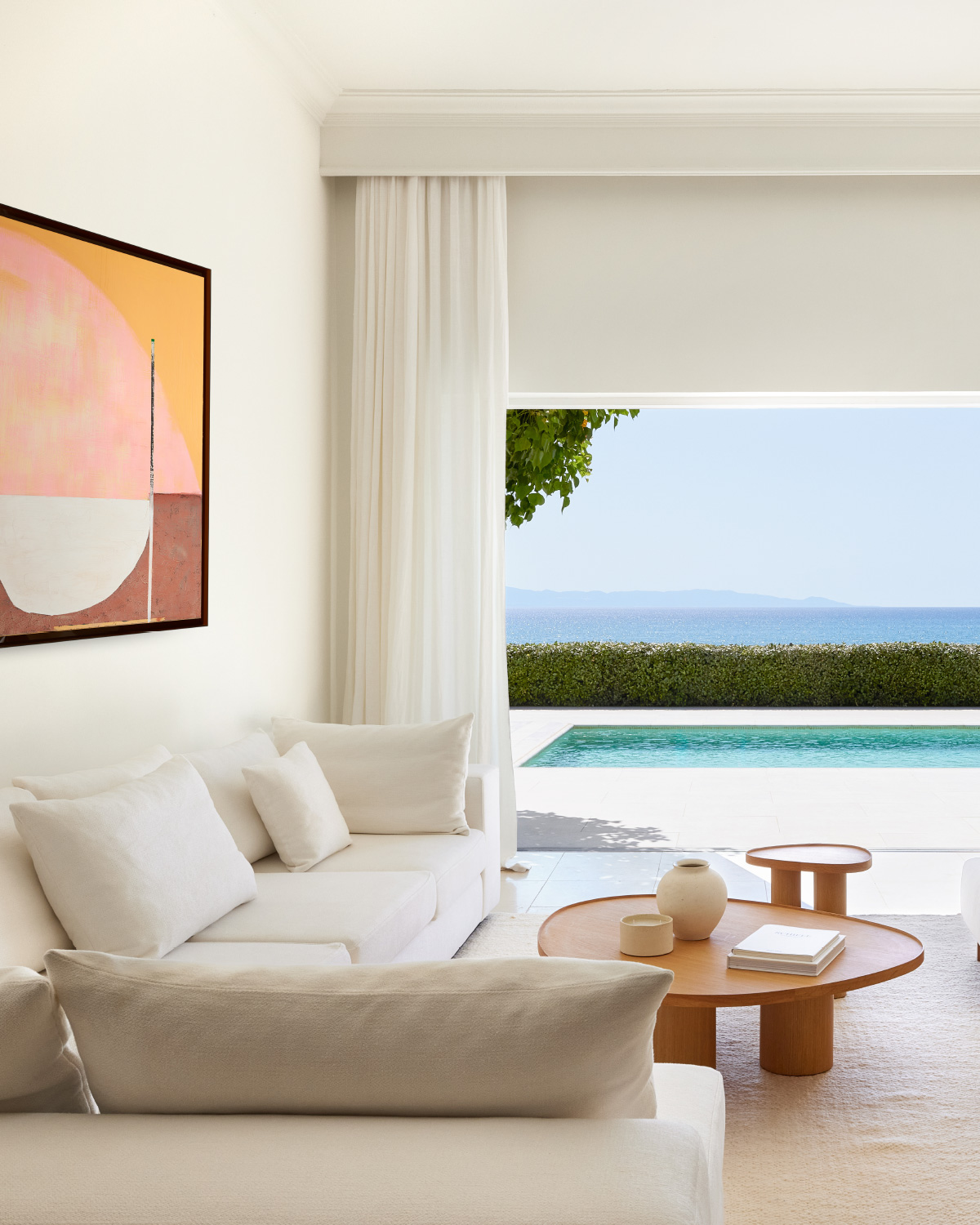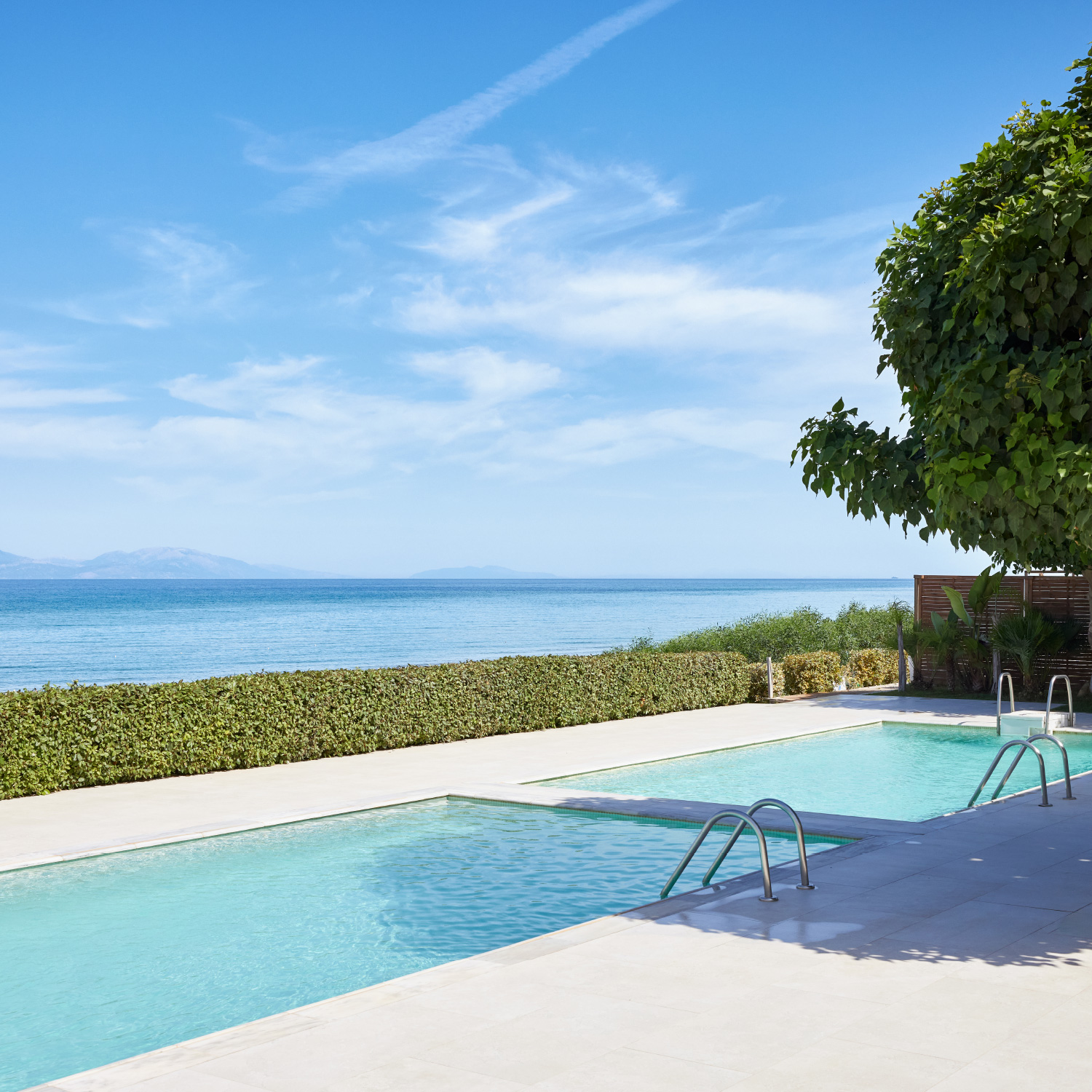 Located in the most exclusive section of Mandola Rosa Riviera, this Grand Sunset Residence offers the most extravagant beachfront setting in the resort with its own private beach cabana. The Residence is set out all in one level with amazing terraces, a grand marble pool and a more private master suite pool; all with infinity views to the sea. There are 5 bedrooms, all in crisp white cotton and linen decoration with luxurious bathrooms. The Grand Master suite is centered around a sparkling skylight with direct sea views, a cool veranda to relax or dine, a his & hers bathroom and a walk-in wardrobe room. The Salon opens to the covered and open air verandas with outdoor cozy cinema, ideal for family time together. Throughout the Residence the luxury of Greek marble, rich wood and works of Art creates a feeling of serenity, all in an amazing natural setting with the sounds of the sea.