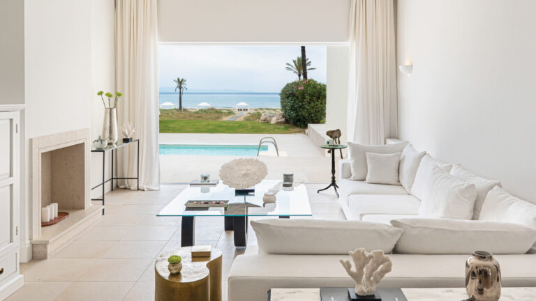 Design for guests seeking the utmost in exclusivity and luxury, this magnificent residence built directly on the beachfront is ideal for seclusion. It features two separate entrances, three master bedroom suites, an outdoor lounge and terrace with swimming pool and direct access to the sea.