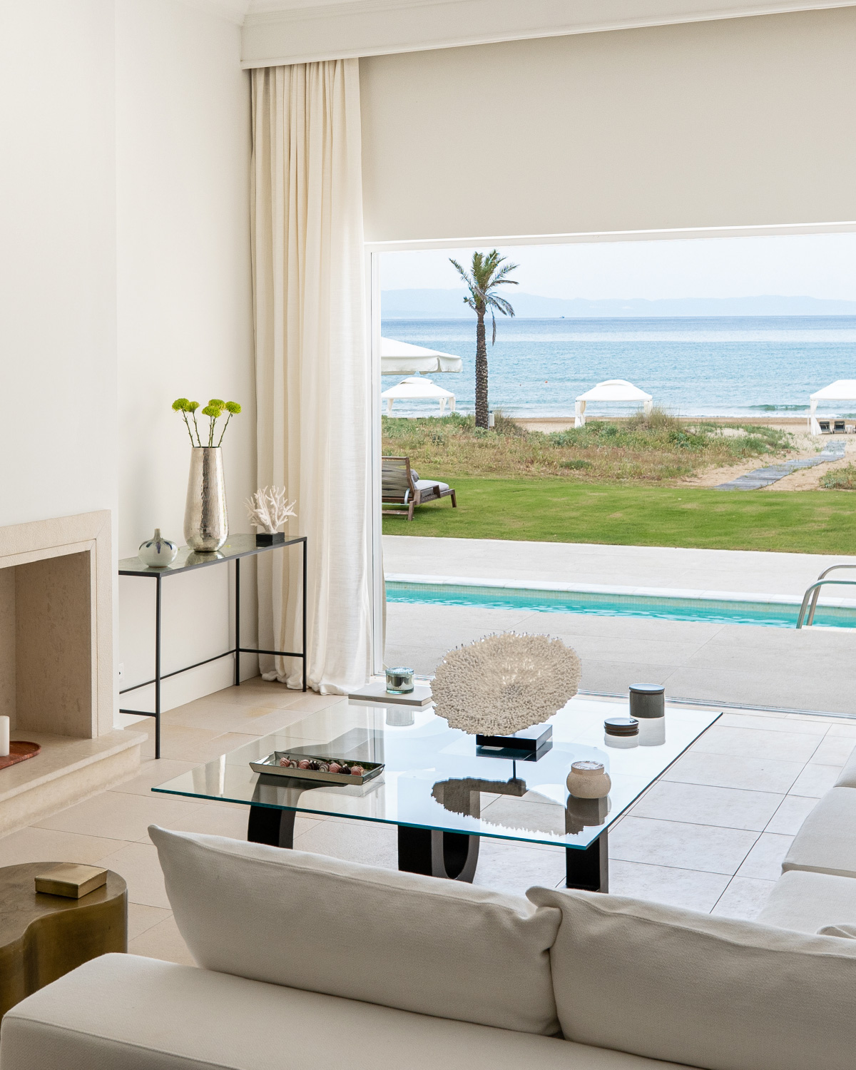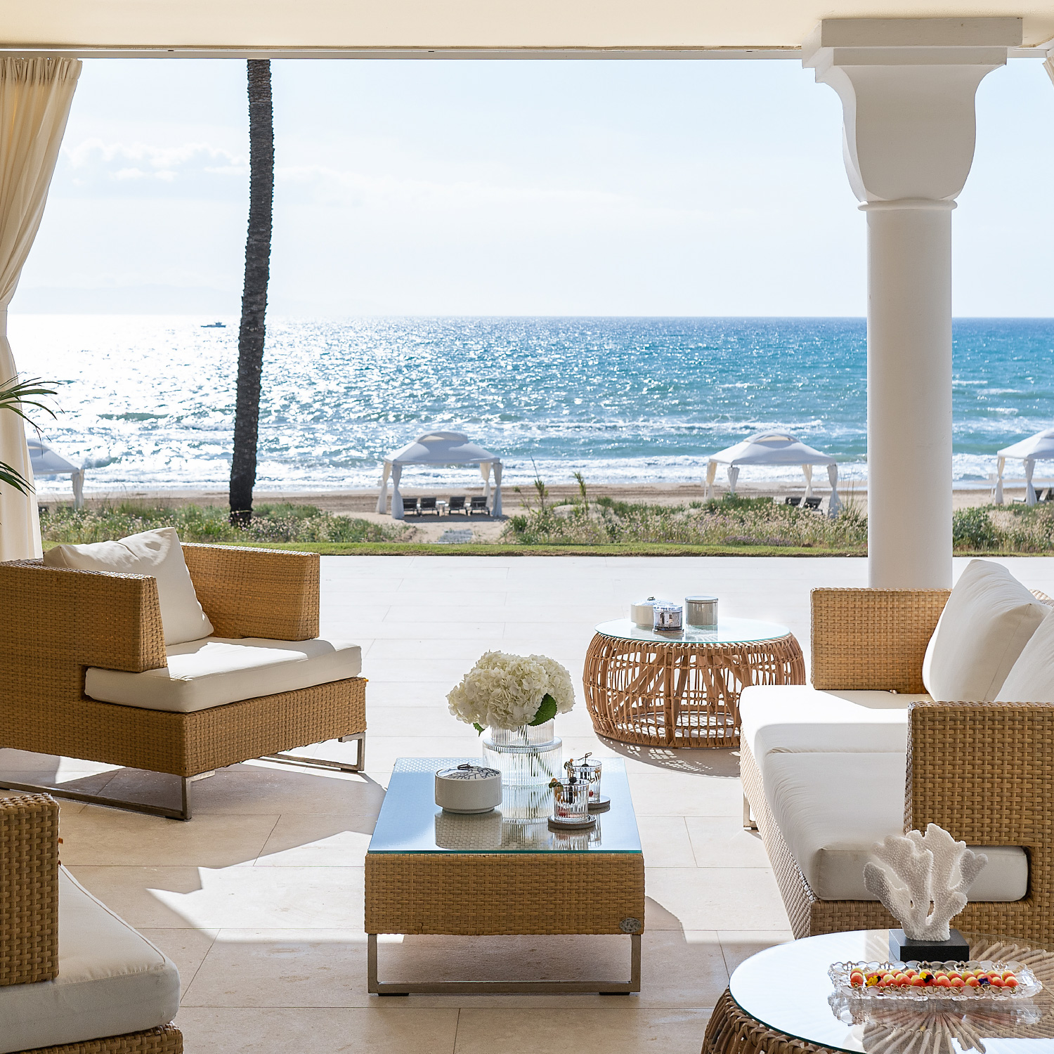 Design for guests seeking the utmost in exclusivity and luxury, this magnificent residence built directly on the beachfront is ideal for seclusion. It features two separate entrances, three master bedroom suites, an outdoor lounge and terrace with swimming pool and direct access to the sea.