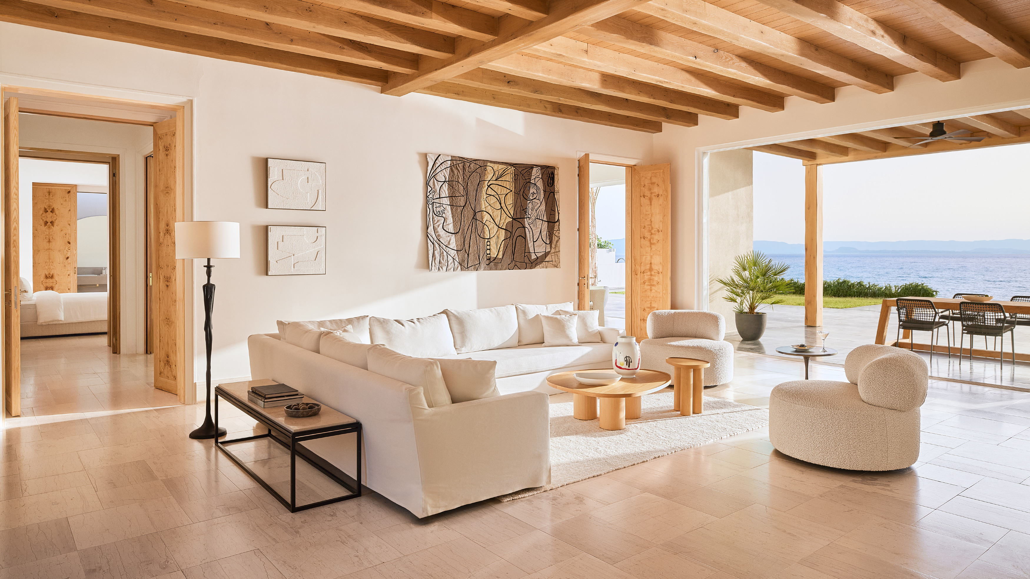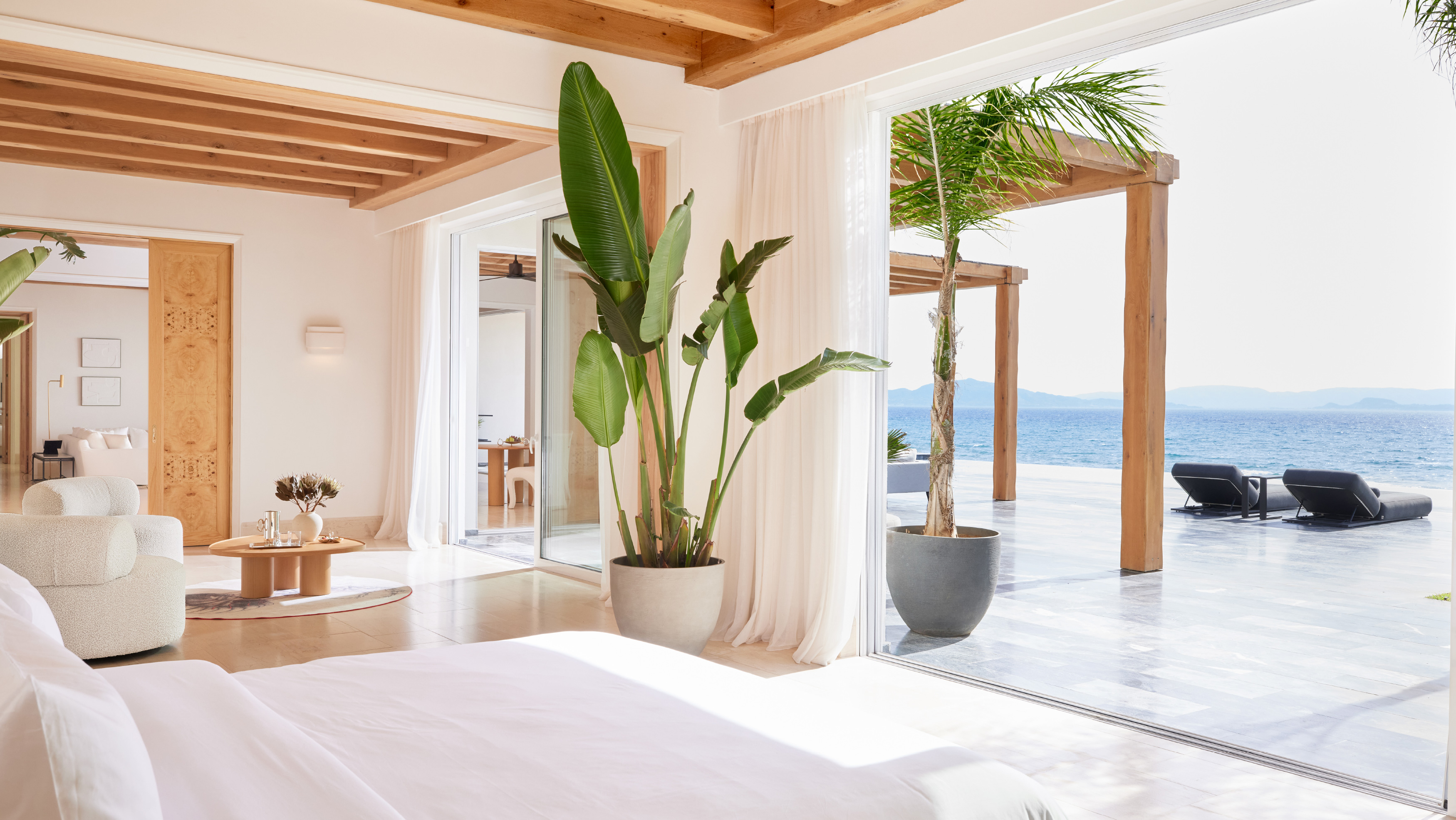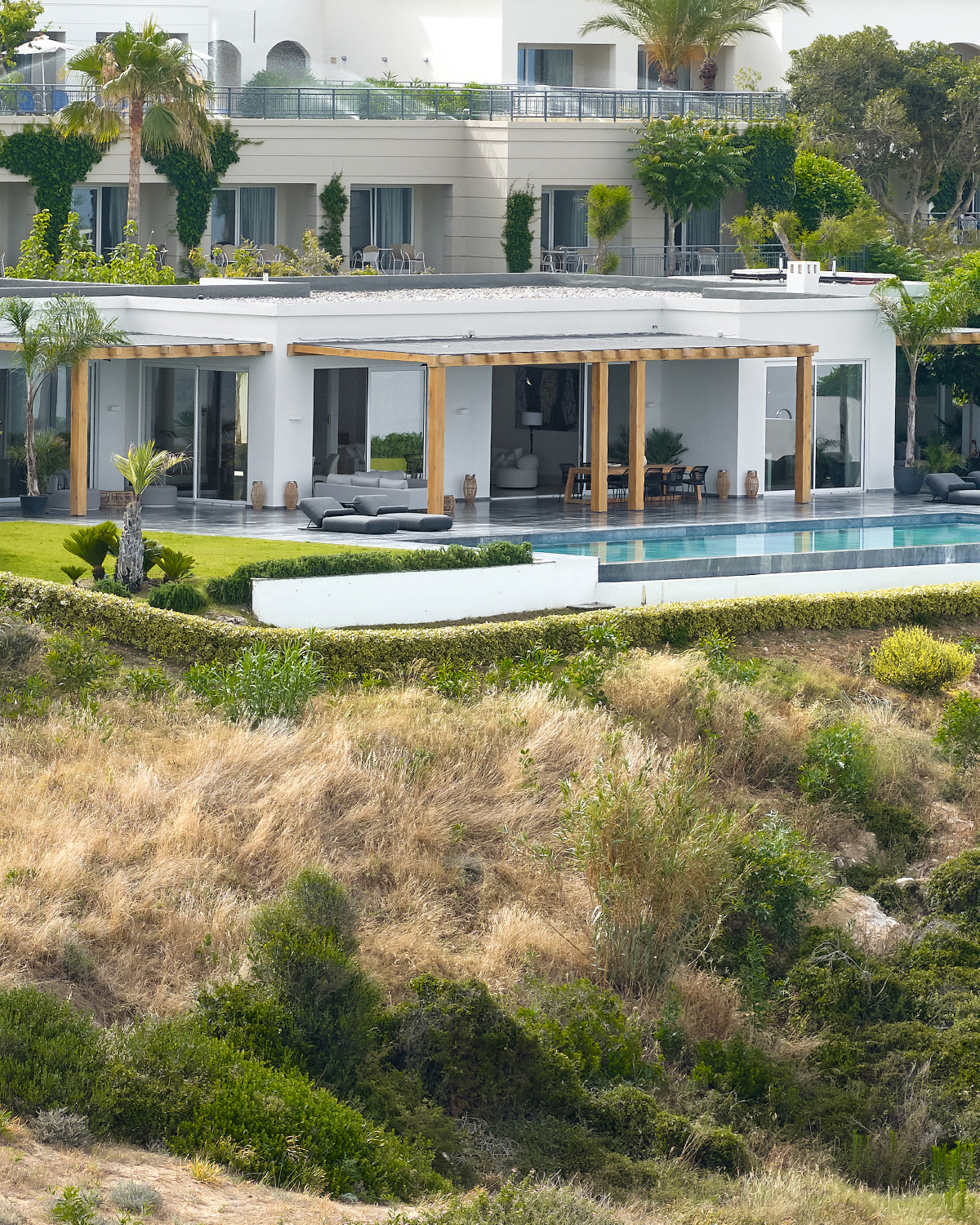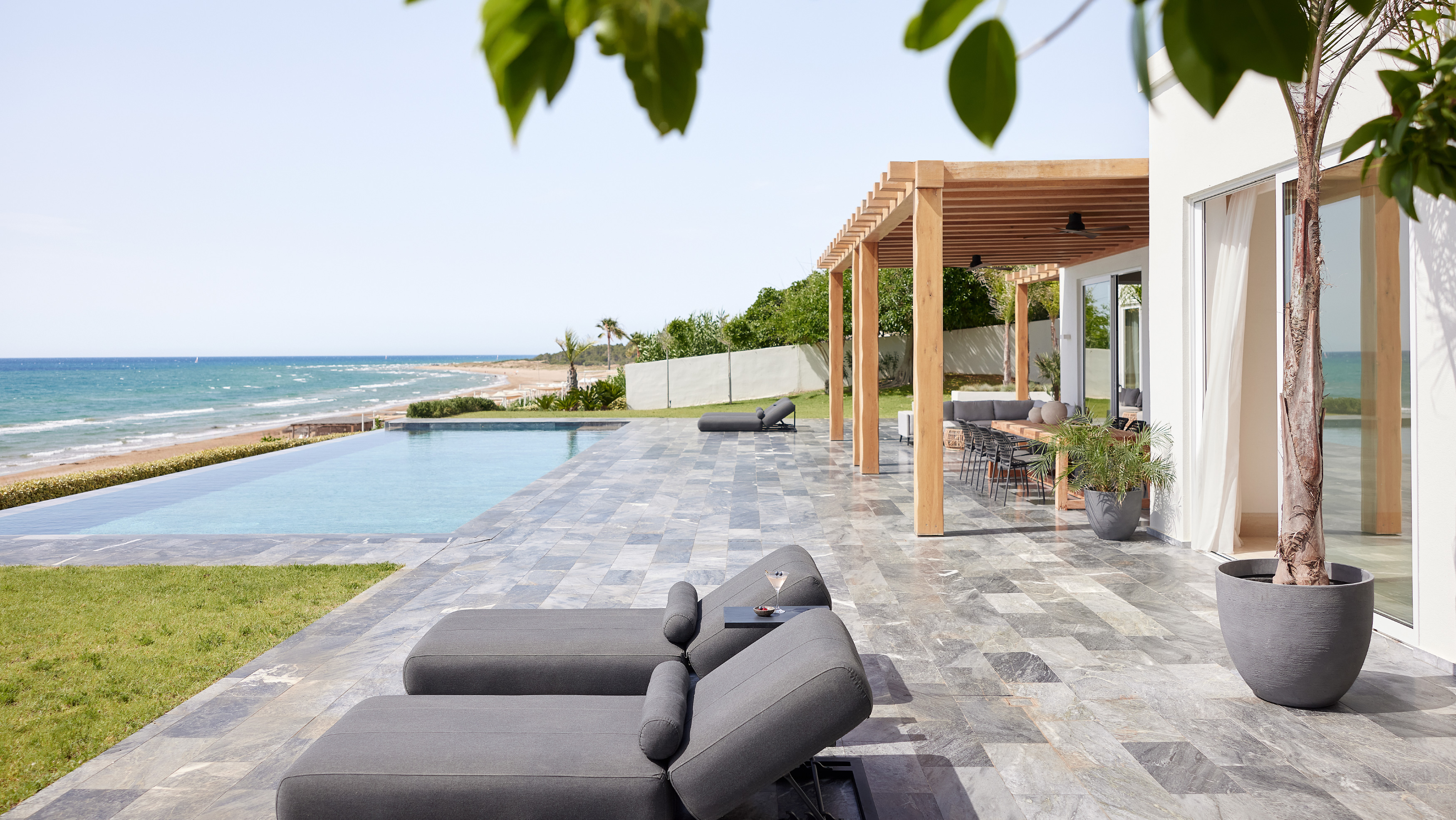 The Royal Pavilion Indoor & Outdoor Pool provides the utmost in luxury at Mandola Rosa, with ideal seclusion, private swimming pools, garden and separate entrances. Tall terrace doors lead out to the private garden and outdoor lounge areas with private steps to the beach.