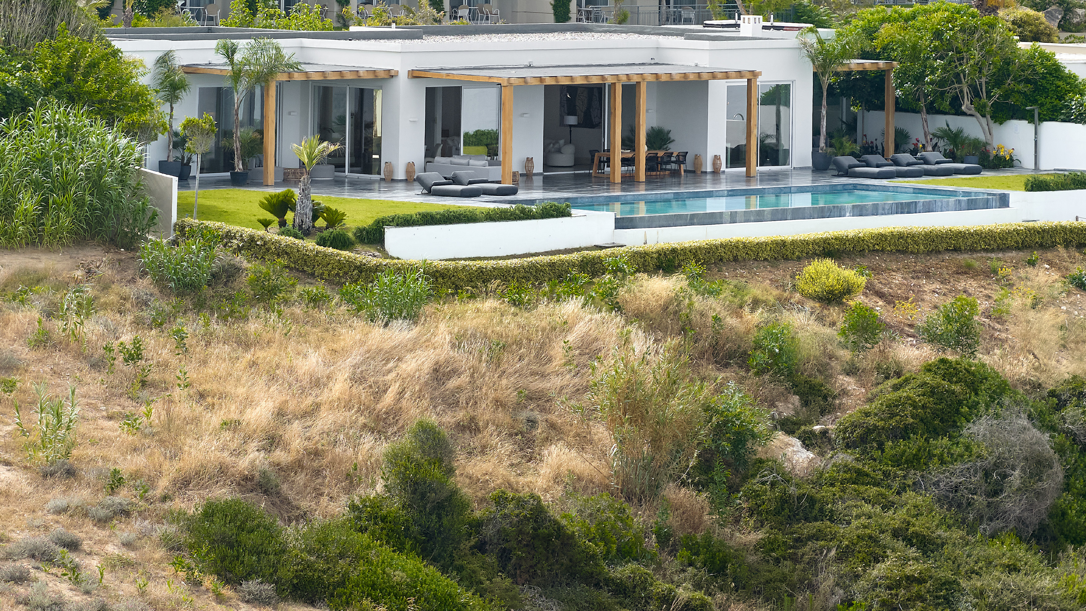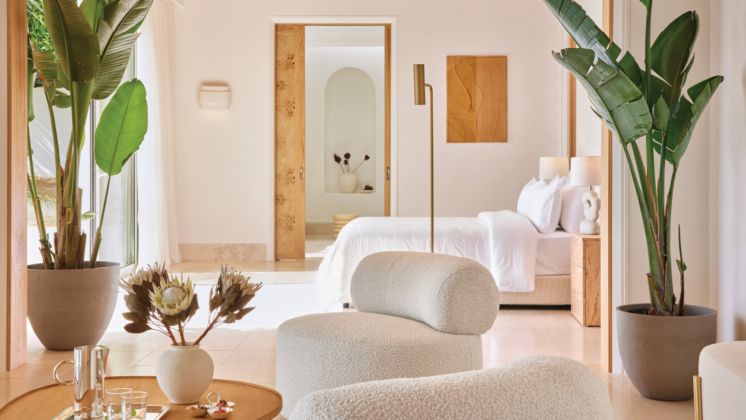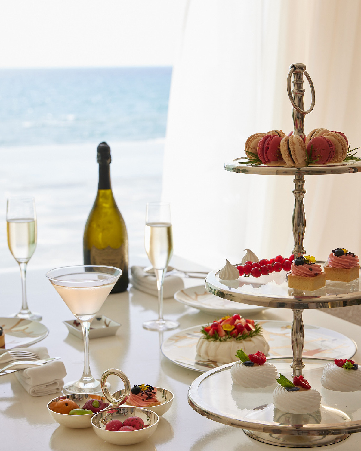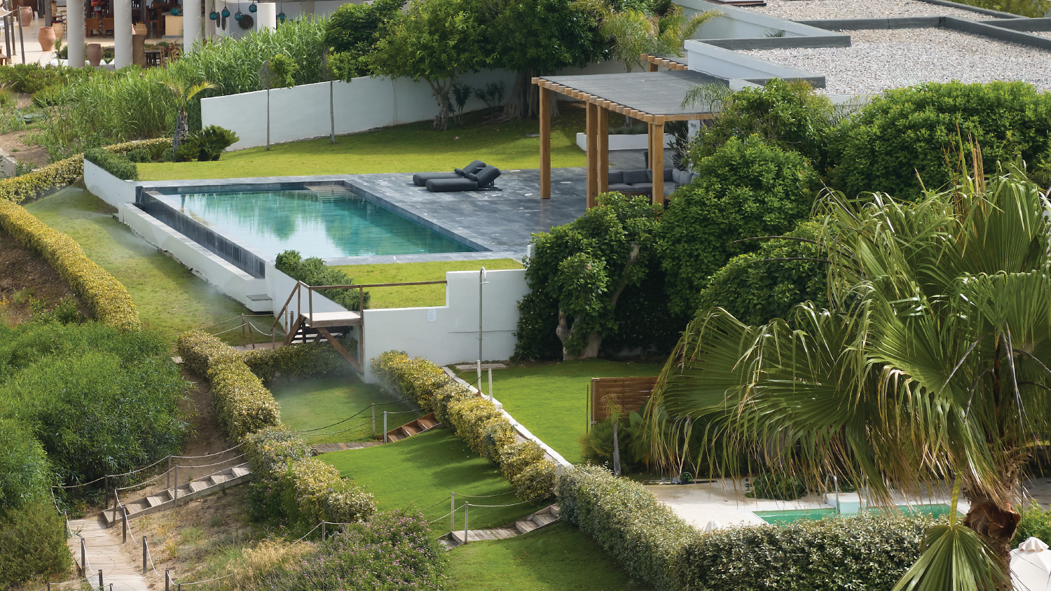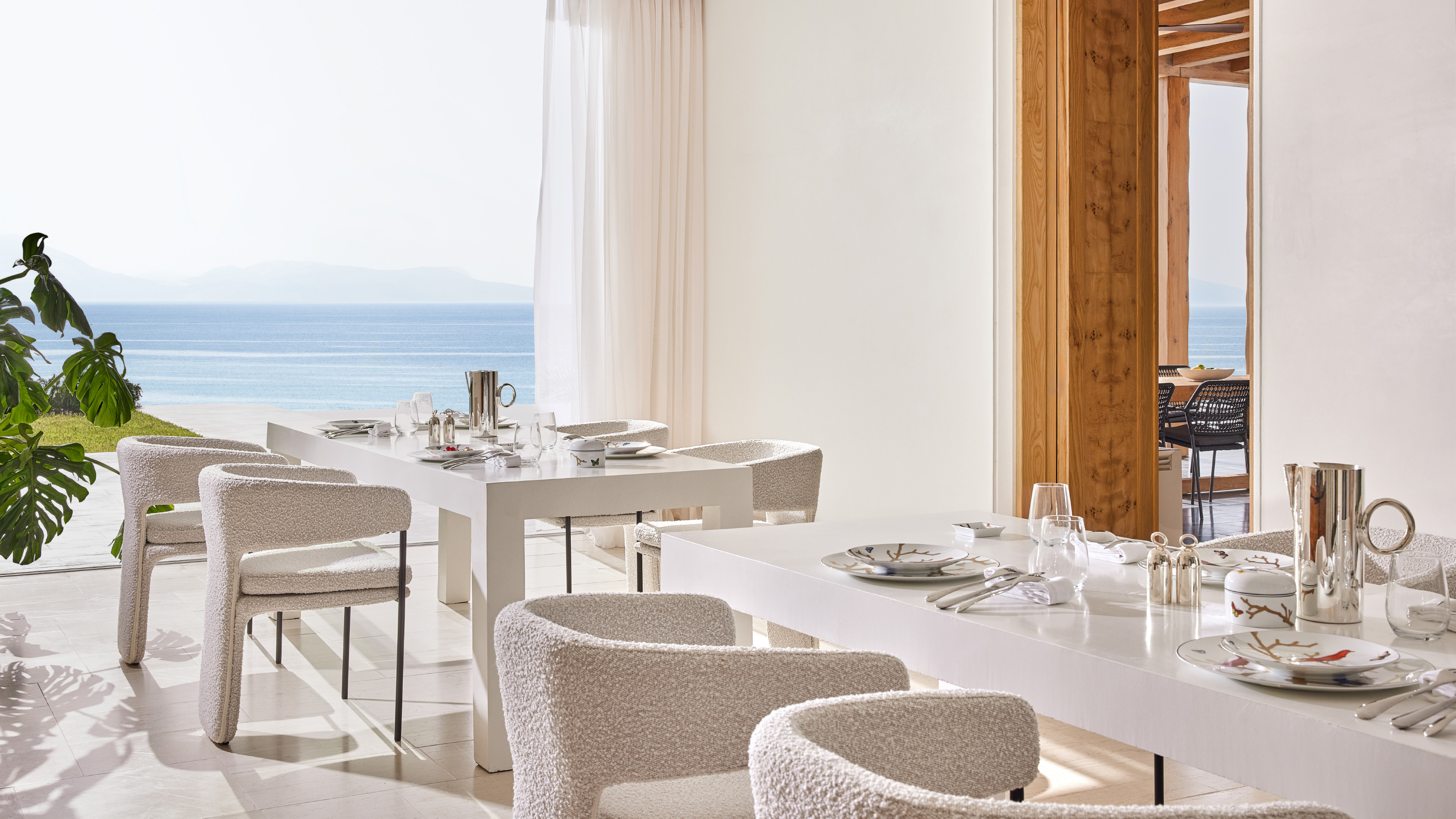 The Royal Pavilion Indoor & Outdoor Pool provides the utmost in luxury at Mandola Rosa, with ideal seclusion, private swimming pools, garden and separate entrances. Tall terrace doors lead out to the private garden and outdoor lounge areas with private steps to the beach.