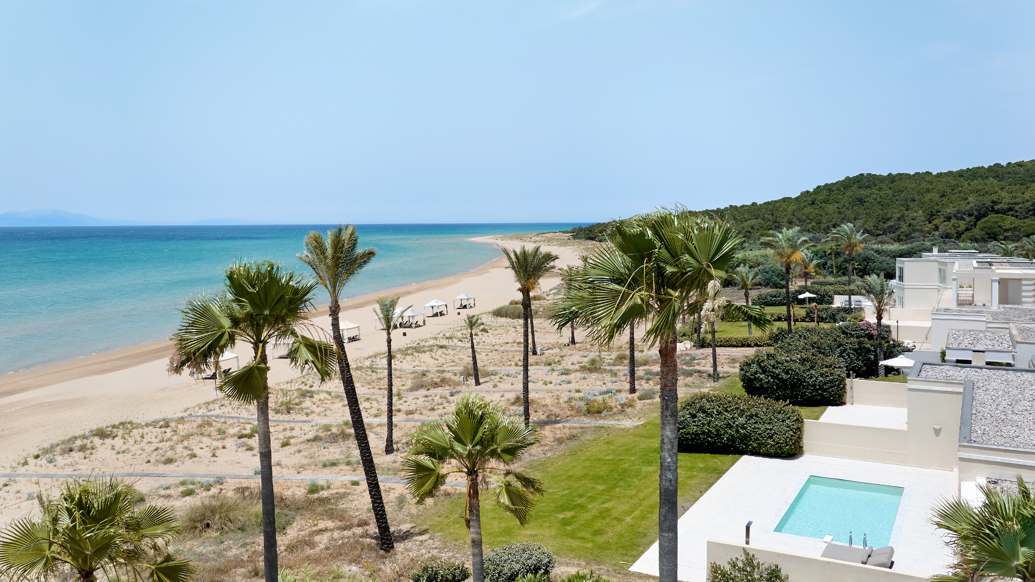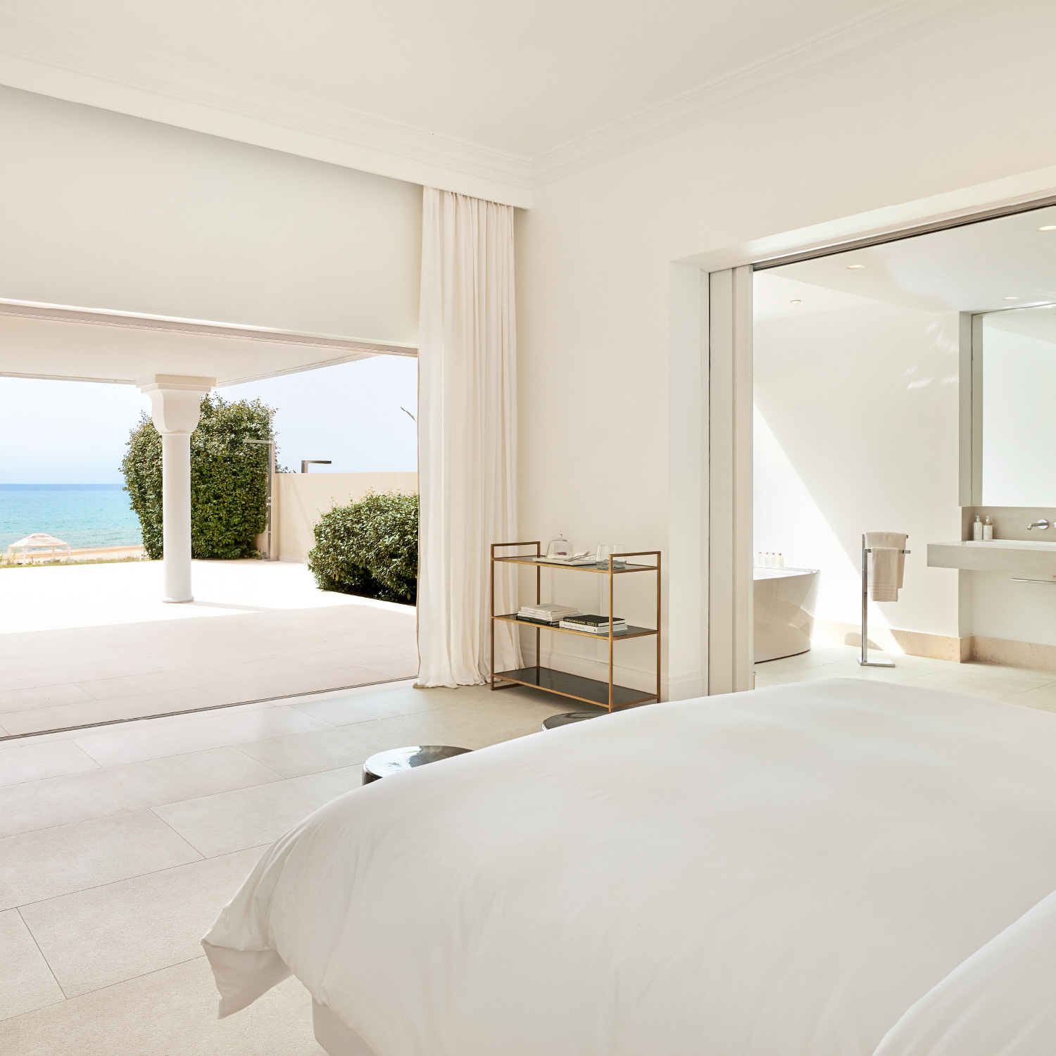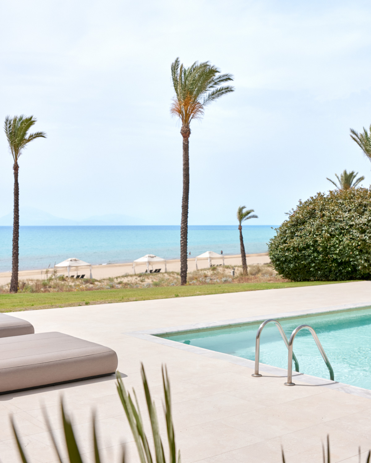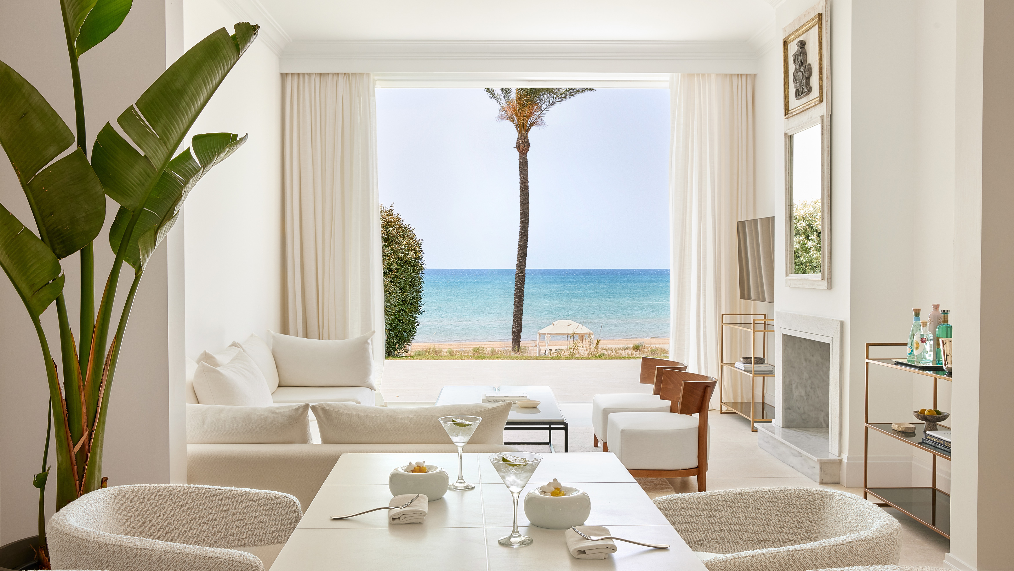 This exclusive residence is ideally secluded, with private swimming pool, garden and separate entrance. With the cool contemporary design reminiscent of a Mediterranean beach house, Royal Pavilion on the Beach is a supremely deluxe villa with bespoke furnishing, three master bedroom suites, a shaded stone-laid open-air salon with private pool showcasing stupendous views of the Ionian Sea.