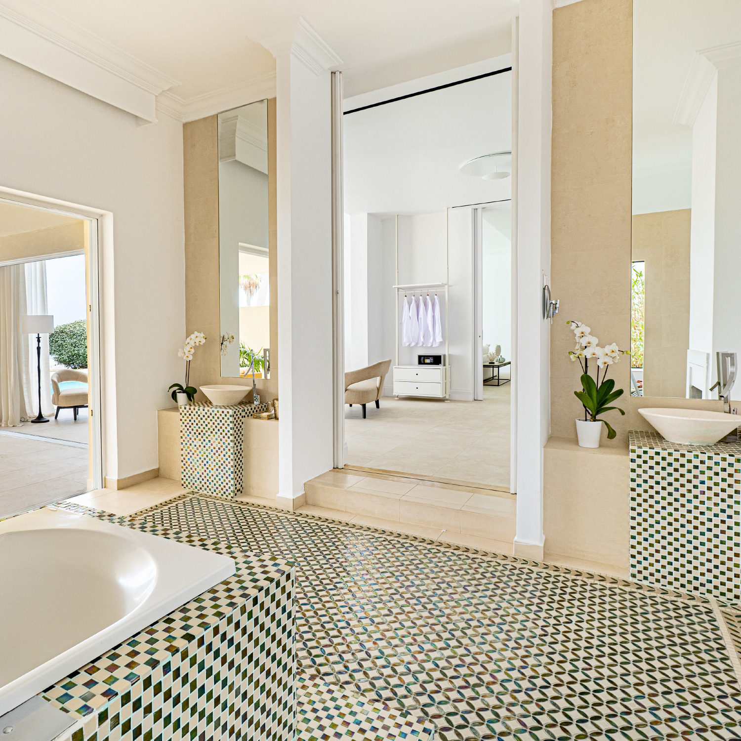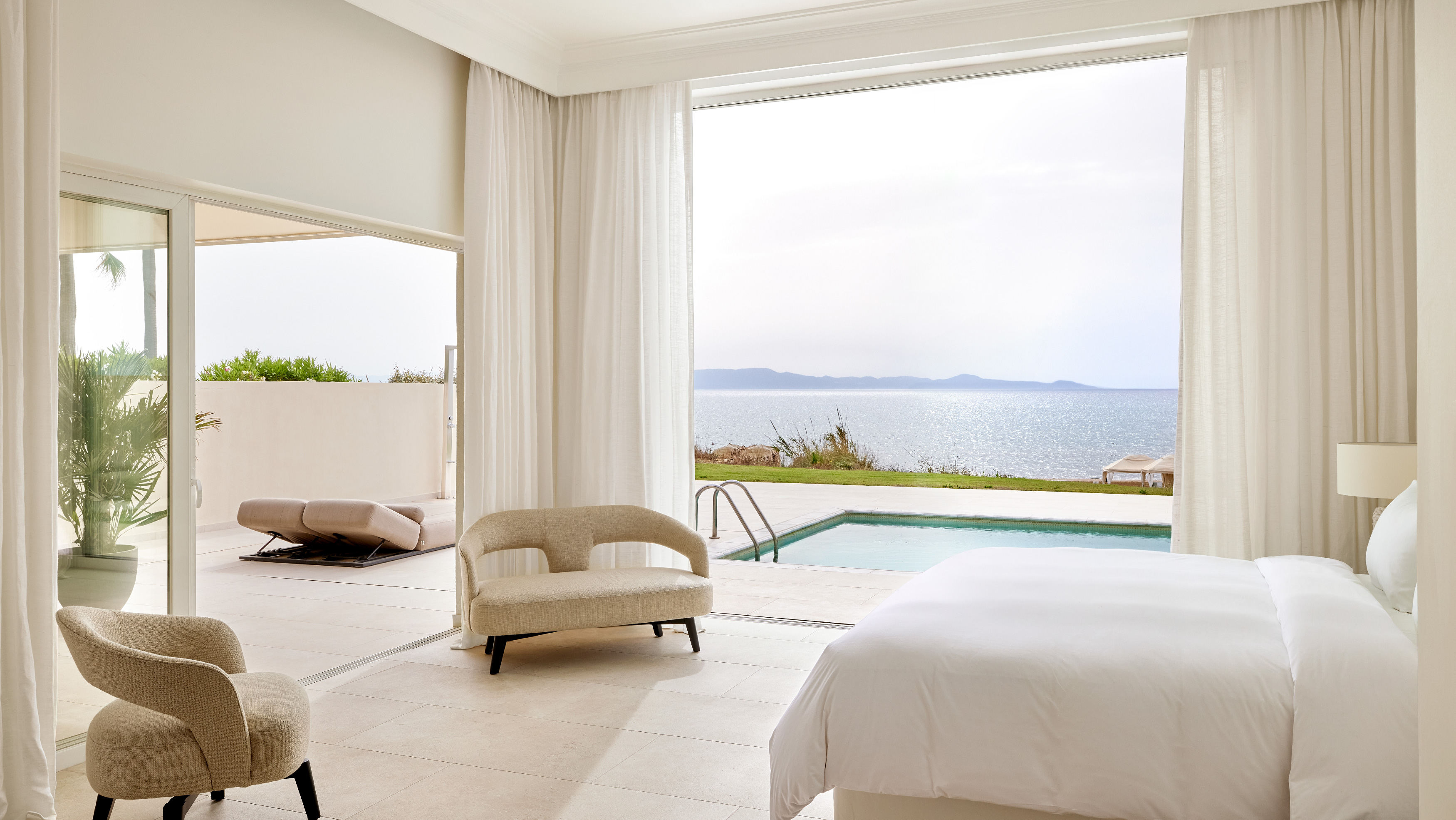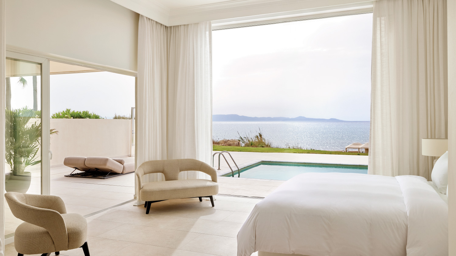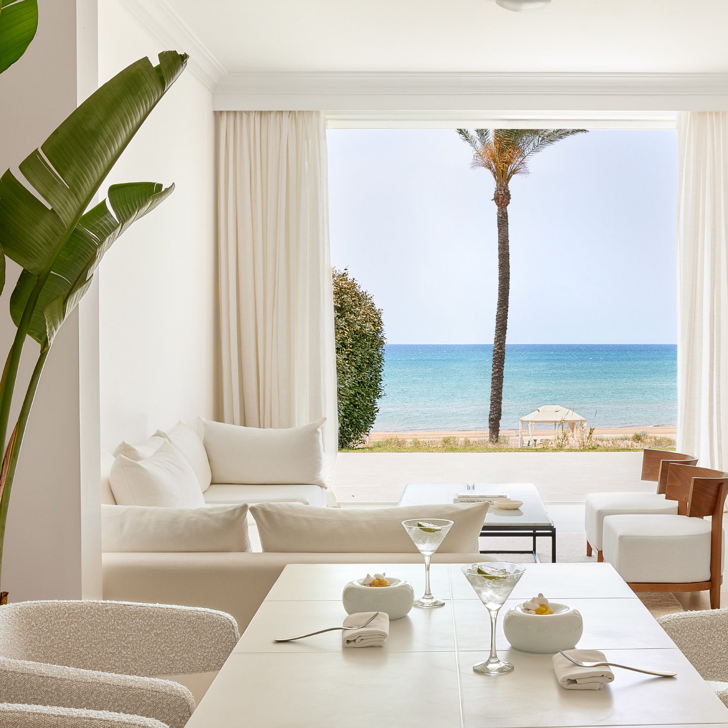 This exclusive residence is ideally secluded, with private swimming pool, garden and separate entrance. With the cool contemporary design reminiscent of a Mediterranean beach house, Royal Pavilion on the Beach is a supremely deluxe villa with bespoke furnishing, three master bedroom suites, a shaded stone-laid open-air salon with private pool showcasing stupendous views of the Ionian Sea.