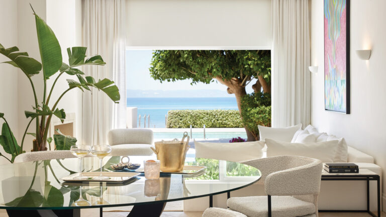 Located in the most exclusive section of Mandola Rosa Riviera, the Sunset Residence offers the most extravagant beachfront setting in the resort with its own private beach cabana. The Residence is set out all in one level with amazing terraces and two private pools with infinity views to the sea. There are 3 bedrooms, all in crisp white cotton and linen decoration with luxurious bathrooms. The Master suite offers mesmerizing direct sea views and a lavish marble hydromassage bathtub. The extensive terrace with the al fresco salon is ideal for dining and family time together. Throughout the Residence the luxury of Greek marble, rich wood and works of Art creates a feeling of serenity, all in an amazing natural setting with the sounds of the sea.