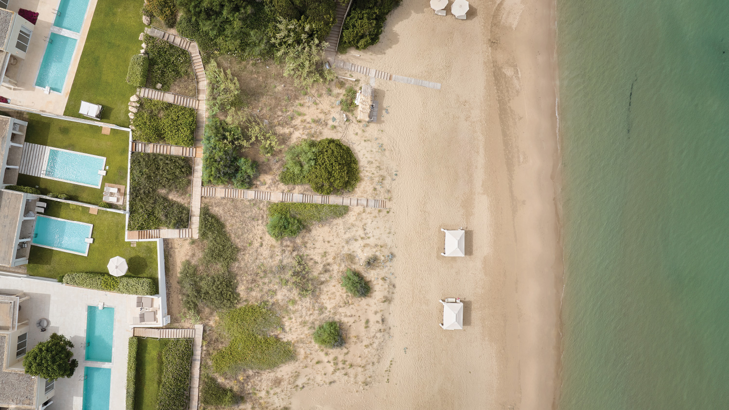 - LAYOUT: Beachfront one-level with 2 pools, private gardens’ terrace, indoor & outdoor salon and dining areas, open plan dining room, 3 bedrooms including a Master Suite.