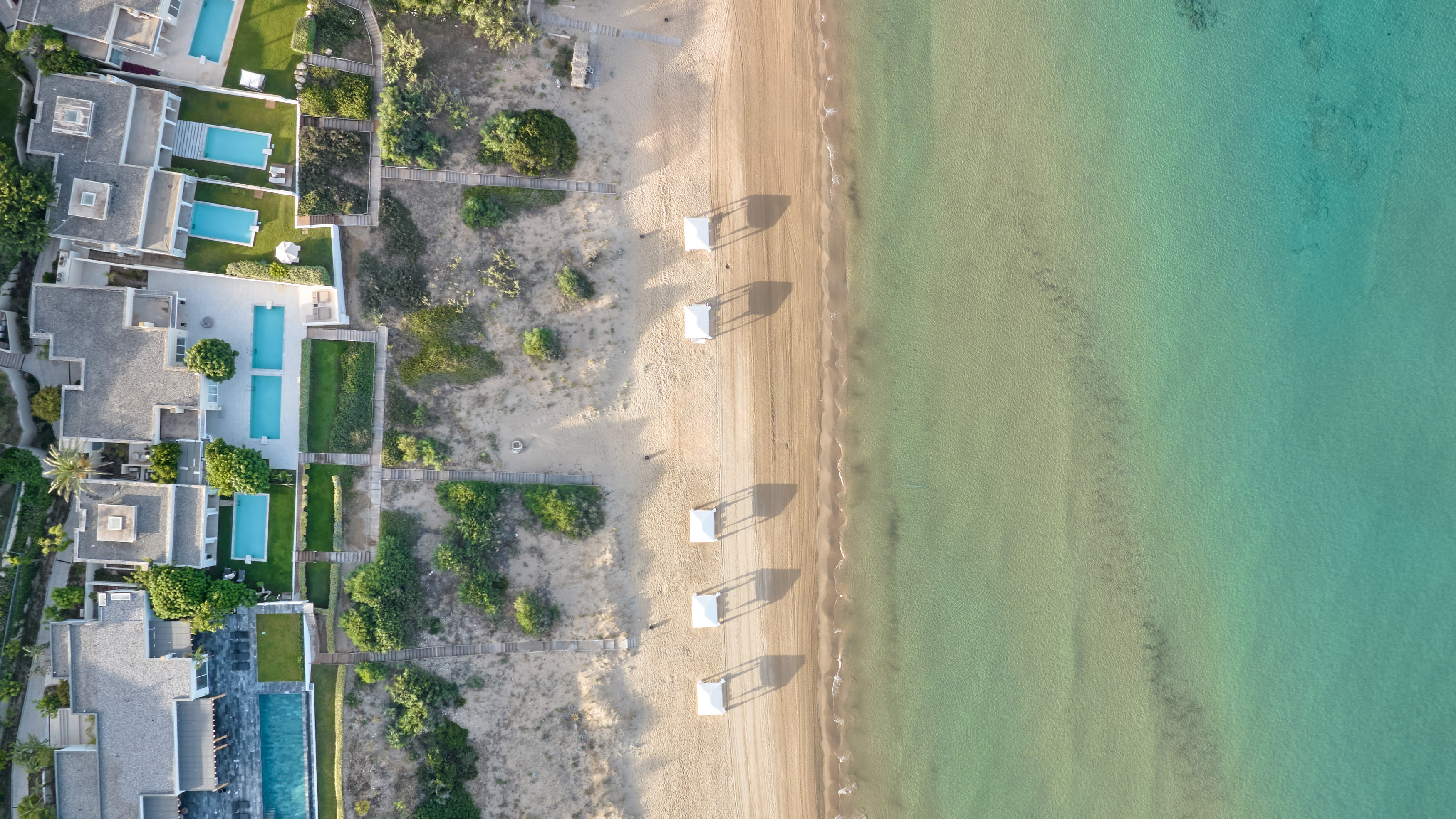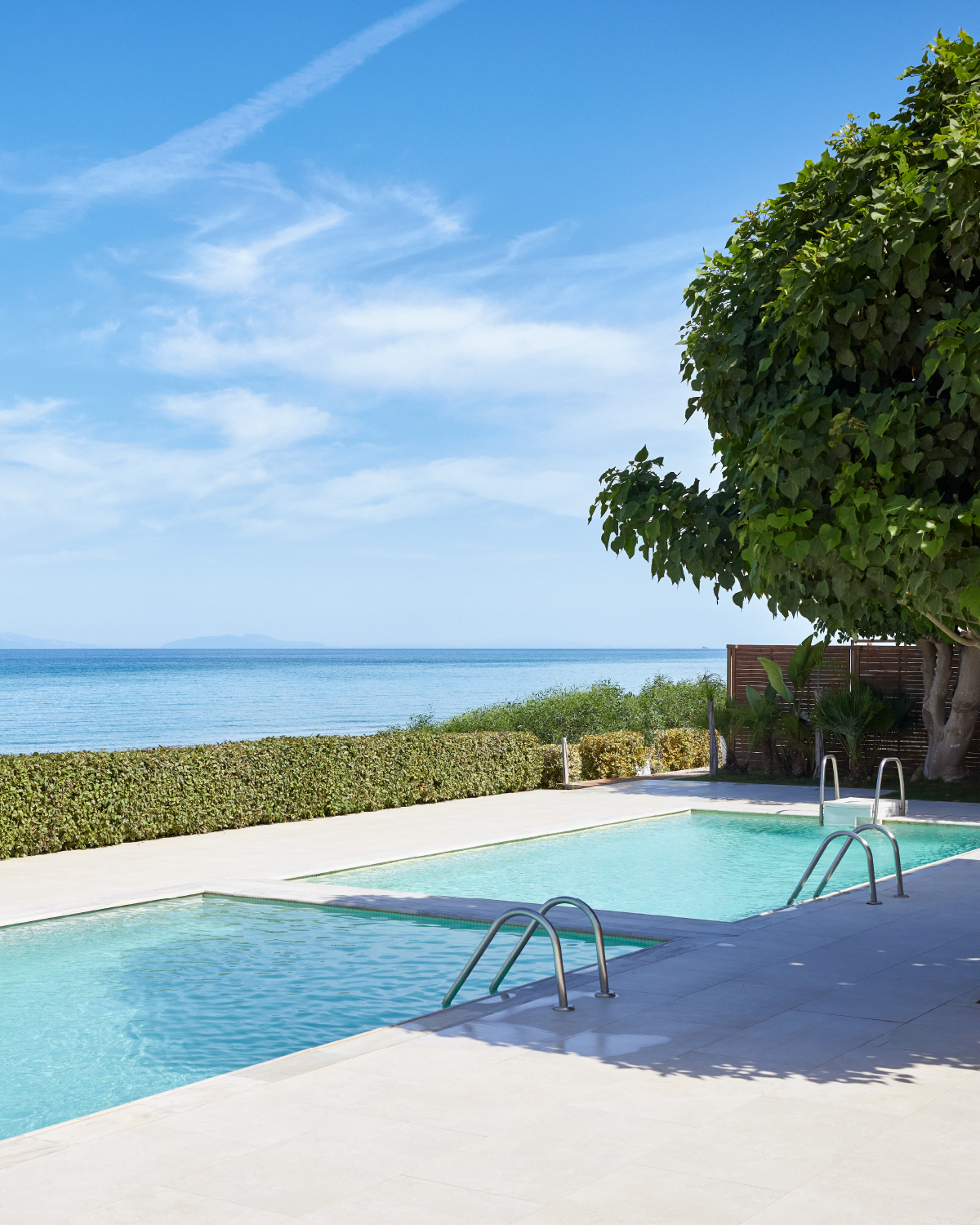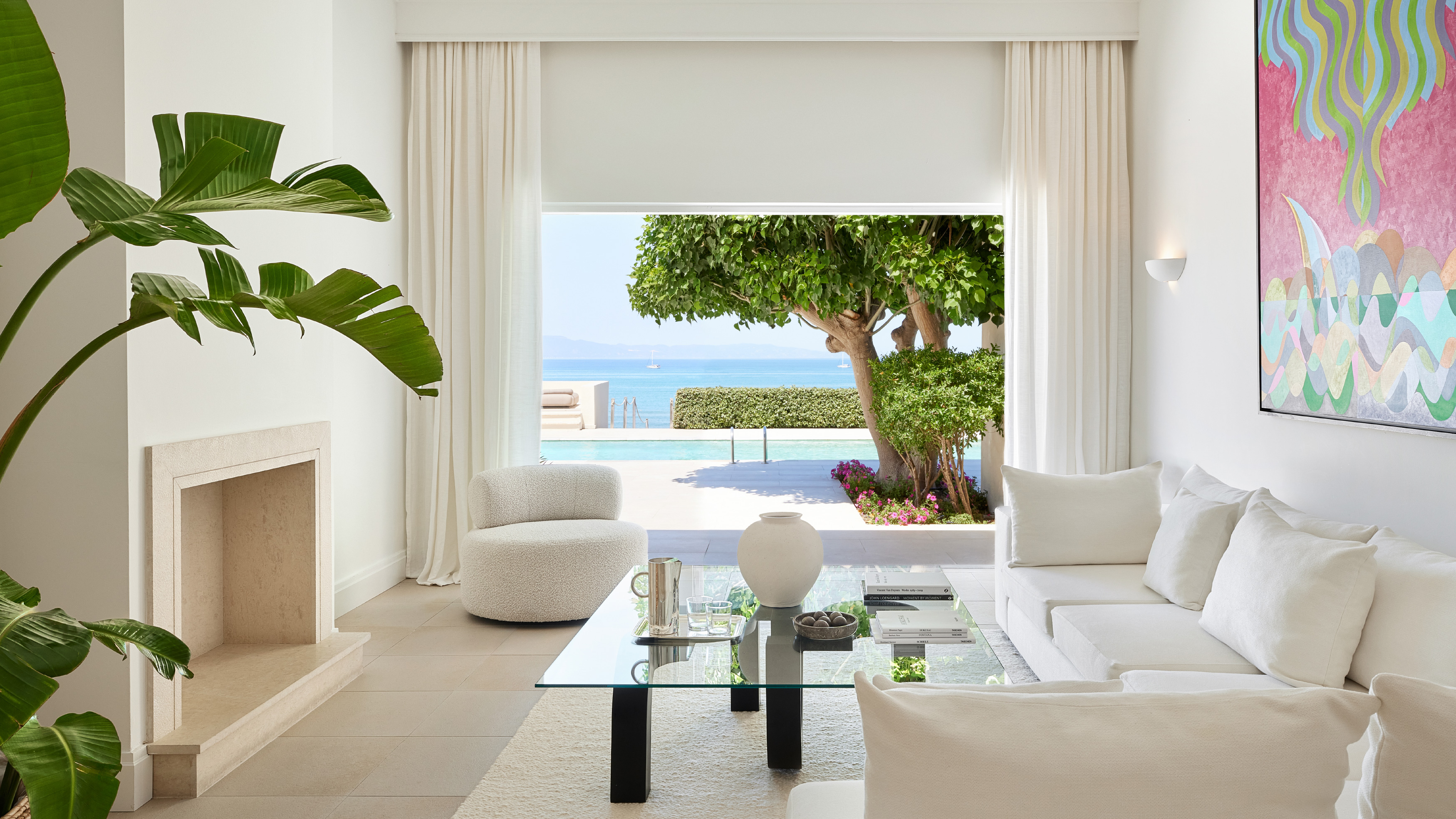 Located in the most exclusive section of Mandola Rosa Riviera, the Sunset Residence offers the most extravagant beachfront setting in the resort with its own private beach cabana. The Residence is set out all in one level with amazing terraces and two private pools with infinity views to the sea. There are 3 bedrooms, all in crisp white cotton and linen decoration with luxurious bathrooms. The Master suite offers mesmerizing direct sea views and a lavish marble hydromassage bathtub. The extensive terrace with the al fresco salon is ideal for dining and family time together. Throughout the Residence the luxury of Greek marble, rich wood and works of Art creates a feeling of serenity, all in an amazing natural setting with the sounds of the sea.