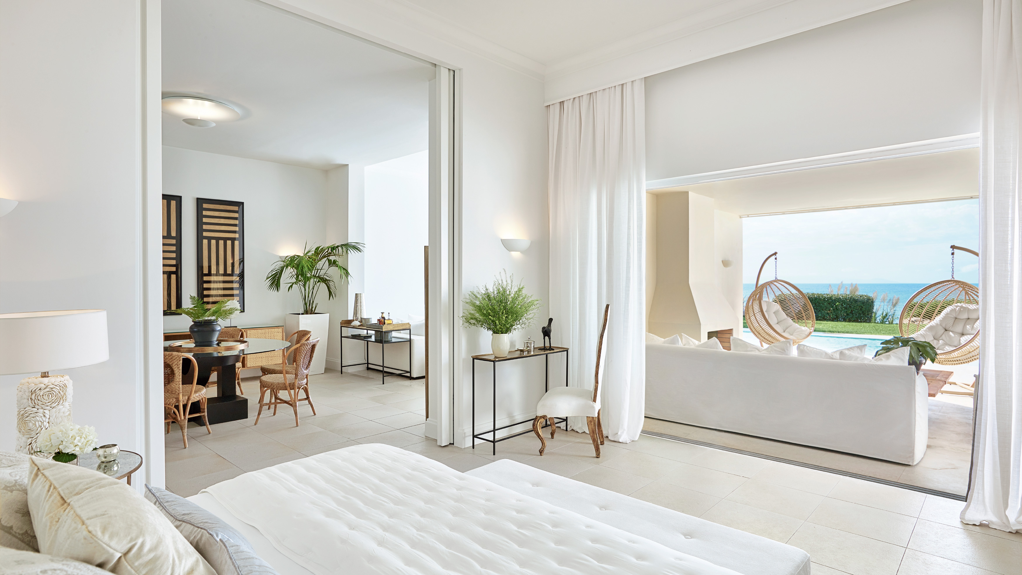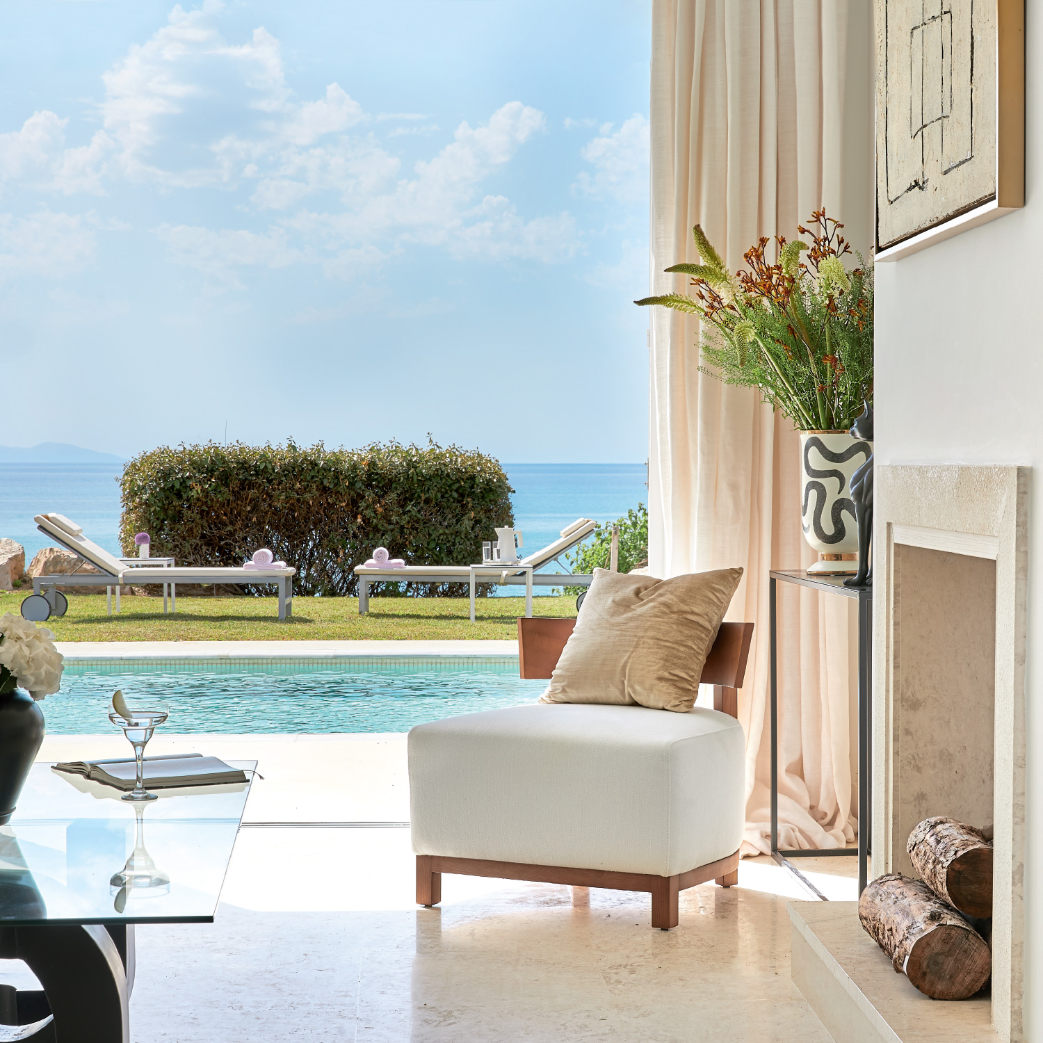 Your private beachfront hideaway, Villa Iolas Private Pool provides the utmost in privacy, poised at the edge of a natural sand bluff with an unsurpassed beach & sea view. Endless indoor and outdoor living space feature two spacious bedrooms, covered veranda, natural stone floors, outdoor fireplace and a private pool.