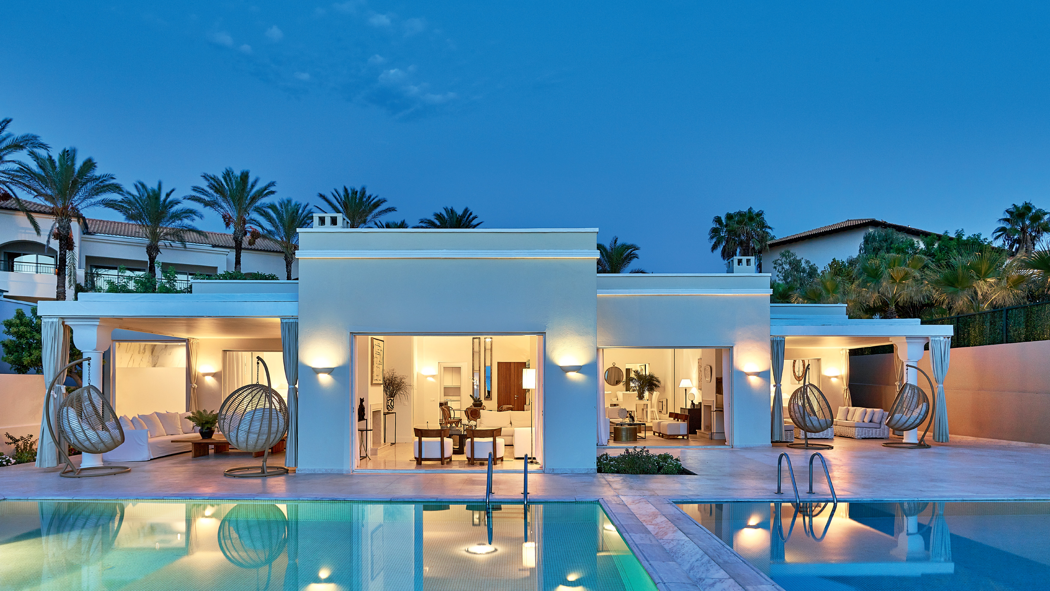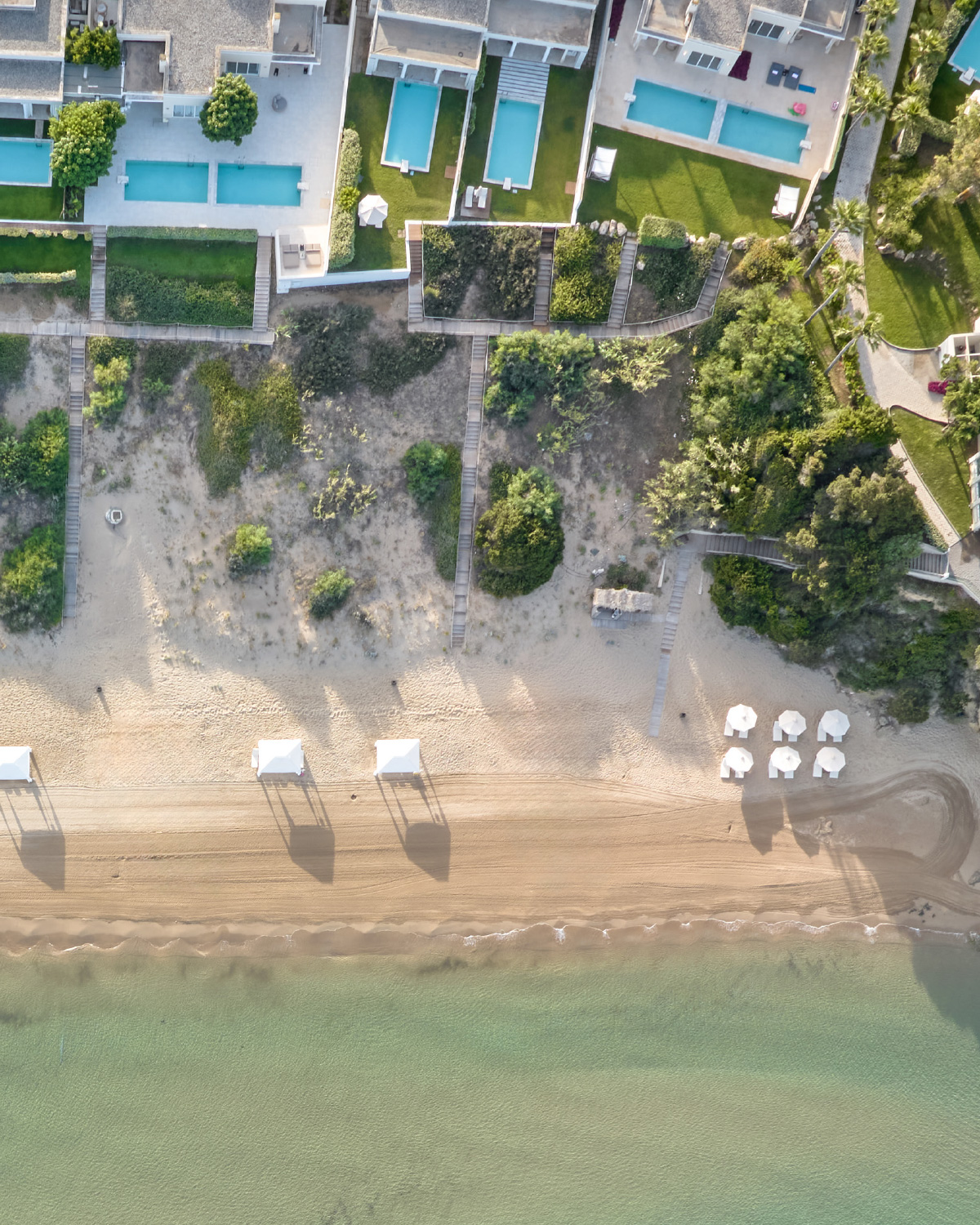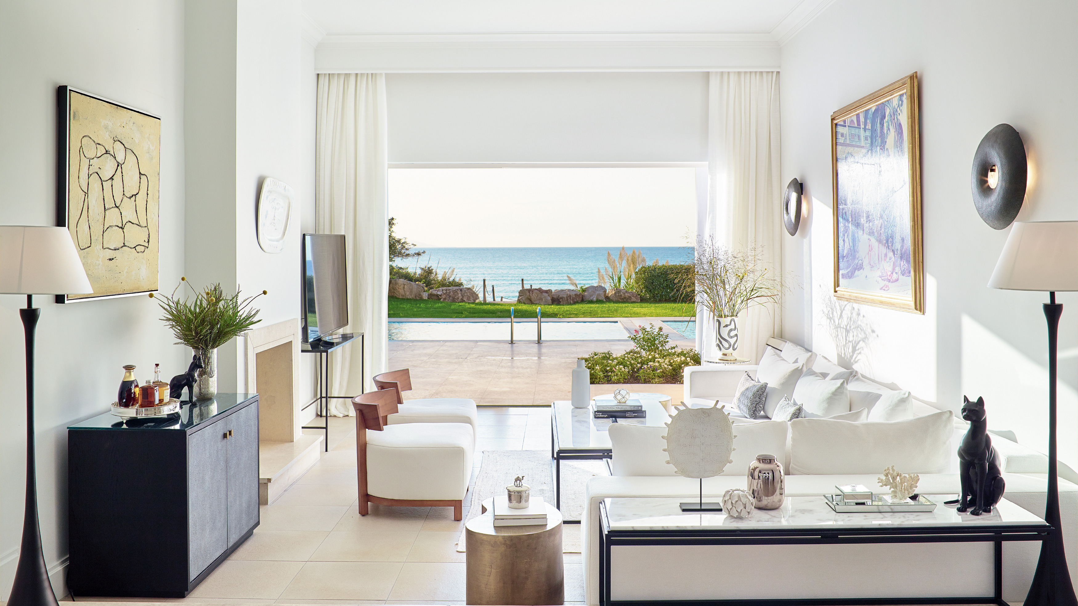 Appointed at a prime location, the ultra-spacious villa features two separate entrance halls, extensive lounges, living and dining areas, three bedrooms and an indoor hydro-massage room. Luxurious outdoor lounges and pools, with private steps to the beach, enrich perfectly the experience of the total exclusivity during your vacation.