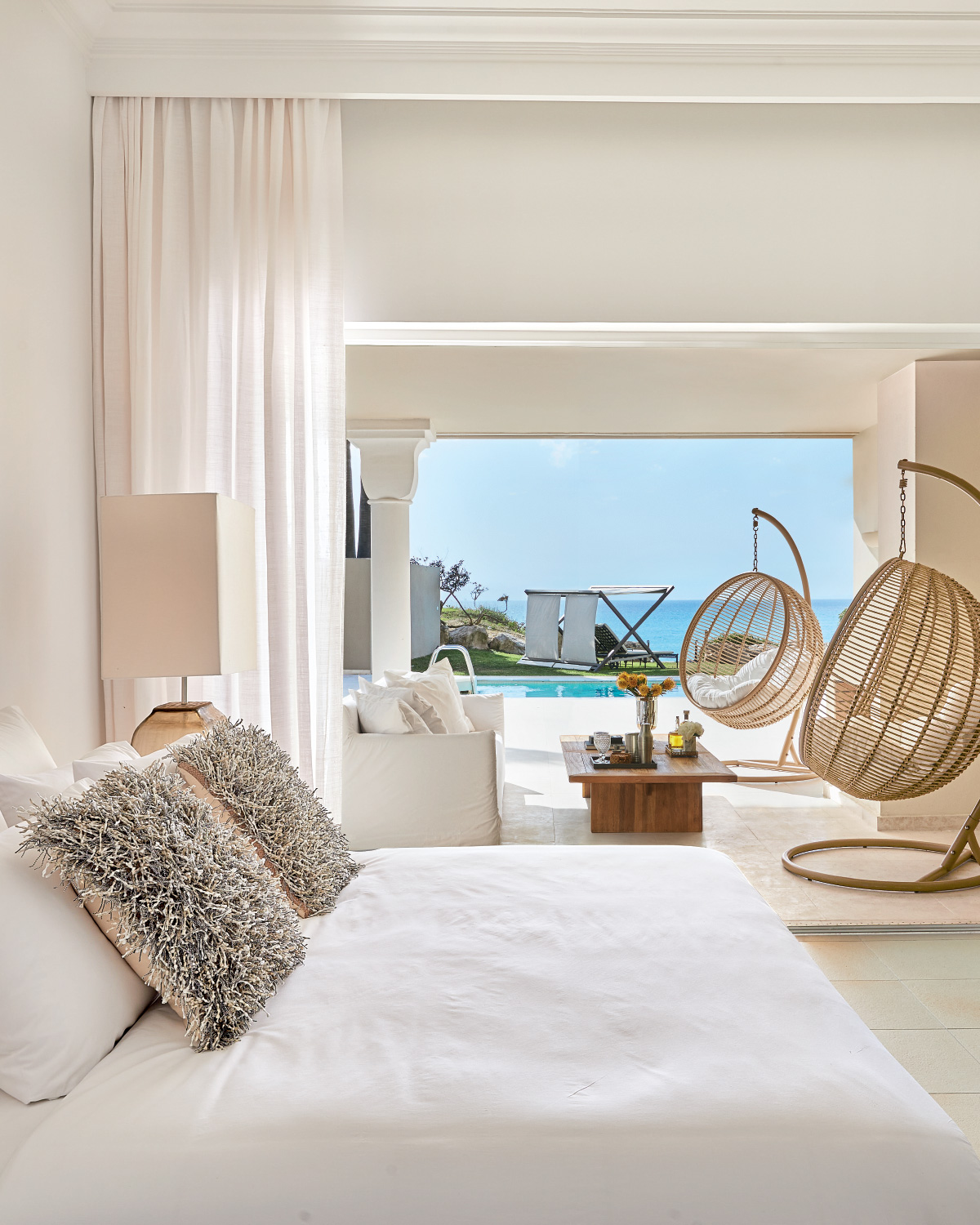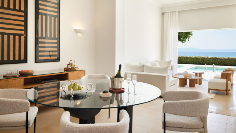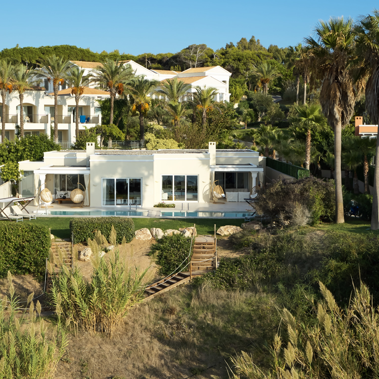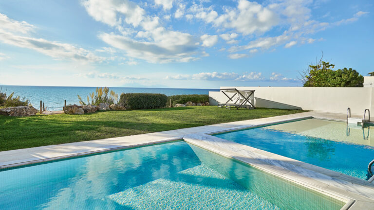 Appointed at a prime location, the ultra-spacious villa features two separate entrance halls, extensive lounges, living and dining areas, three bedrooms and an indoor hydro-massage room. Luxurious outdoor lounges and pools, with private steps to the beach, enrich perfectly the experience of the total exclusivity during your vacation.