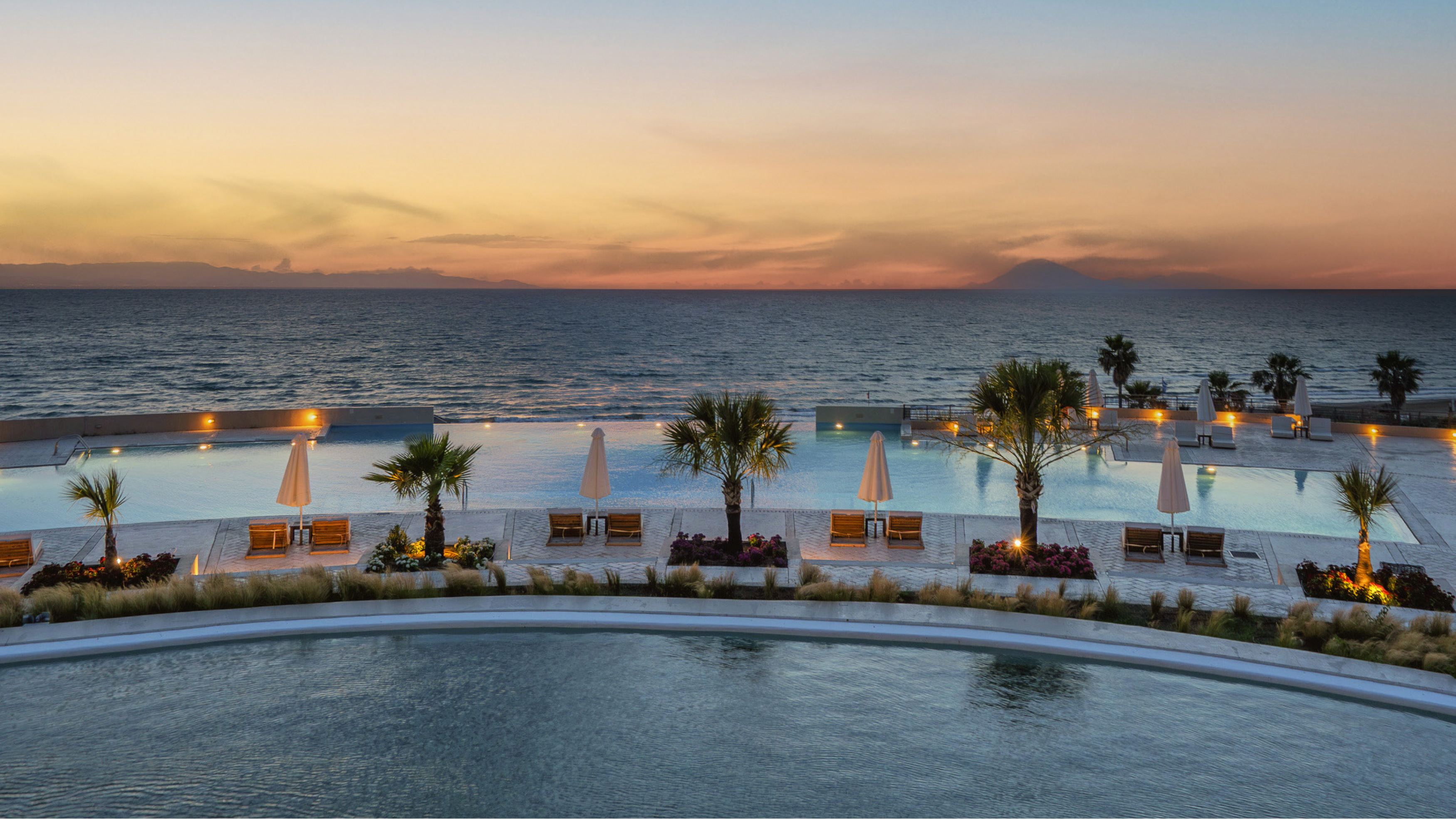 For many guests, the evening begins at the Lobby Bar, to enjoy the glorious sunset while sipping creative cocktails. This grand lobby bar and open-air terrace adjoins the reception area and overlooks the pools and sea. Lounge music complements the relaxed mood, while a selection of snacks and light meals are offered till the early hours.