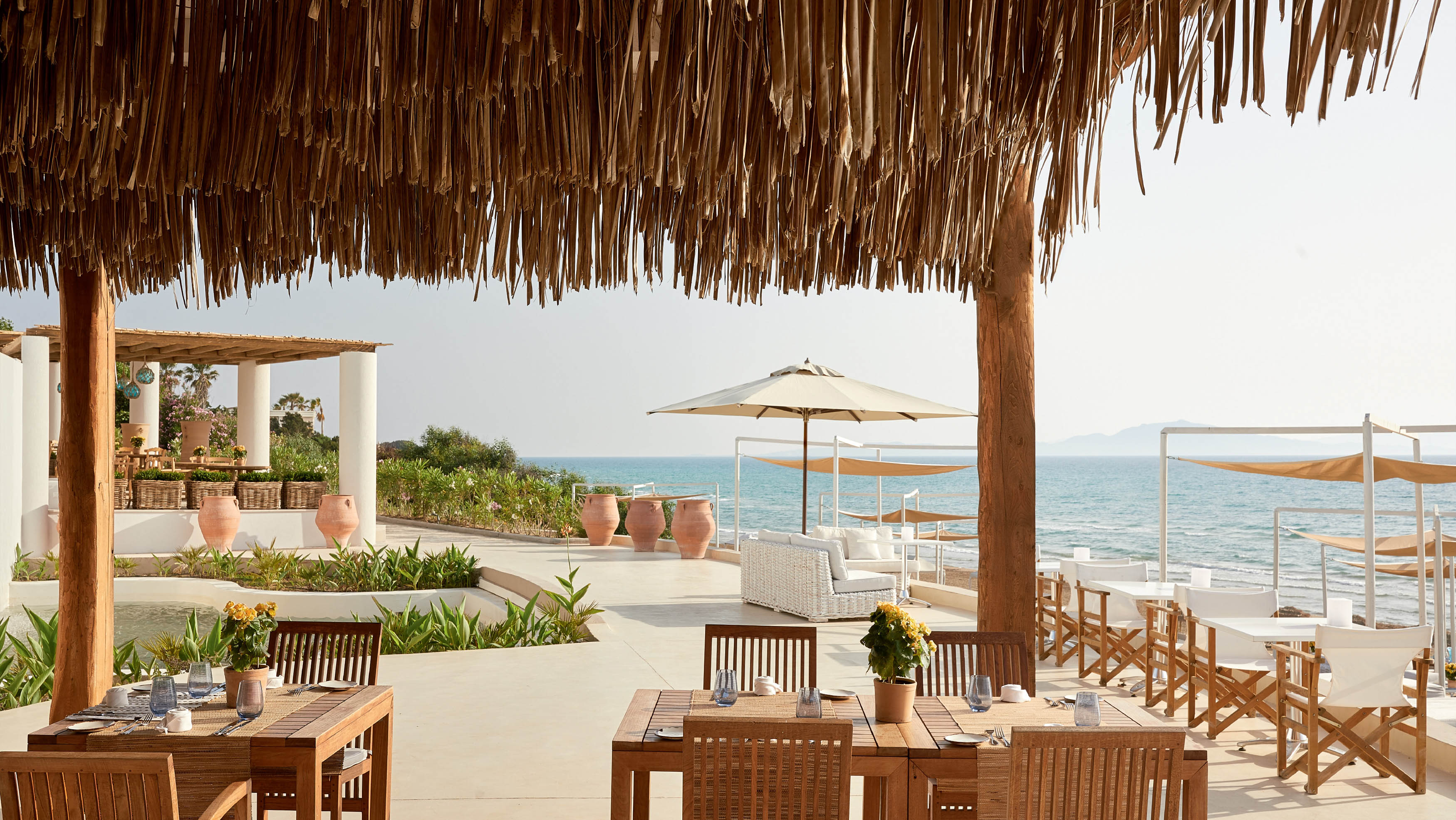 Let the Ionian Sea’s gentle breeze fan you as you savour the catch-of-the-day and experience al fresco dining at its best. The beachfront location next to the seawater tropical pool is the gorgeous natural backdrop for sampling mouth-watering barbecue – fresh fish or juicy meat straight from the grill. Go Mediterranean, with star selections like lobster spaghetti, a traditional Greek fisherman’s specialty with our gourmet tweak. Sea Dunes transitions from casual seaside taverna at lunch to stylish waterfront steak and fish grill house at night with its signature island ambience – cue white-washed arches, natural wood, and sea-grass shaded pergola.