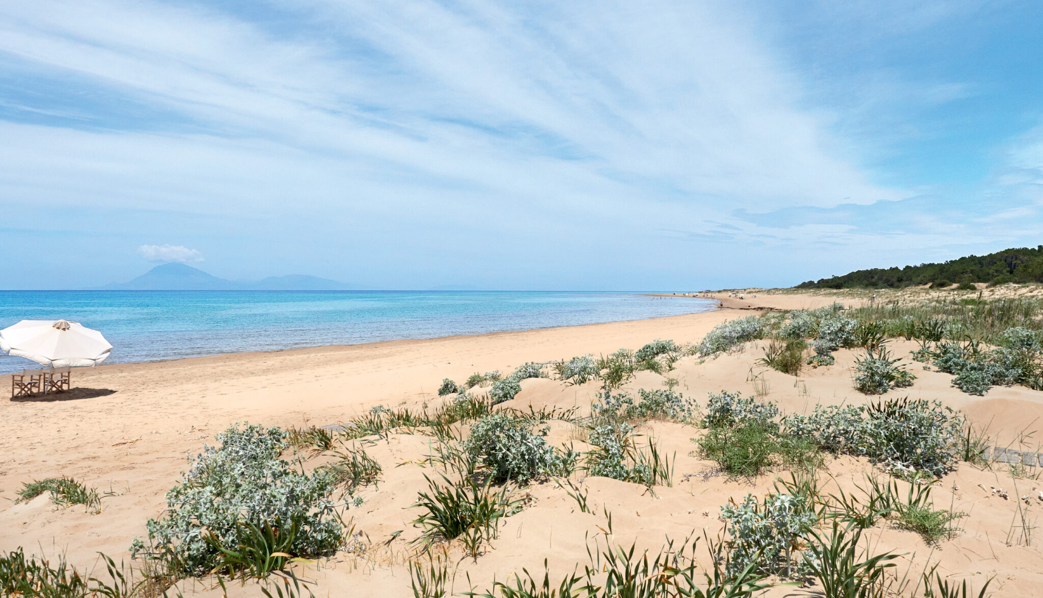 A beach extraordinaire, offering 2 km of golden sand and crystal-clear waters of the Ionian Sea at your disposal. Honored with the prestigious “Blue Flag,” it proudly meets the highest standards of the European programme, ensuring exceptional quality, safety, and environmental care for an unforgettable seaside experience.