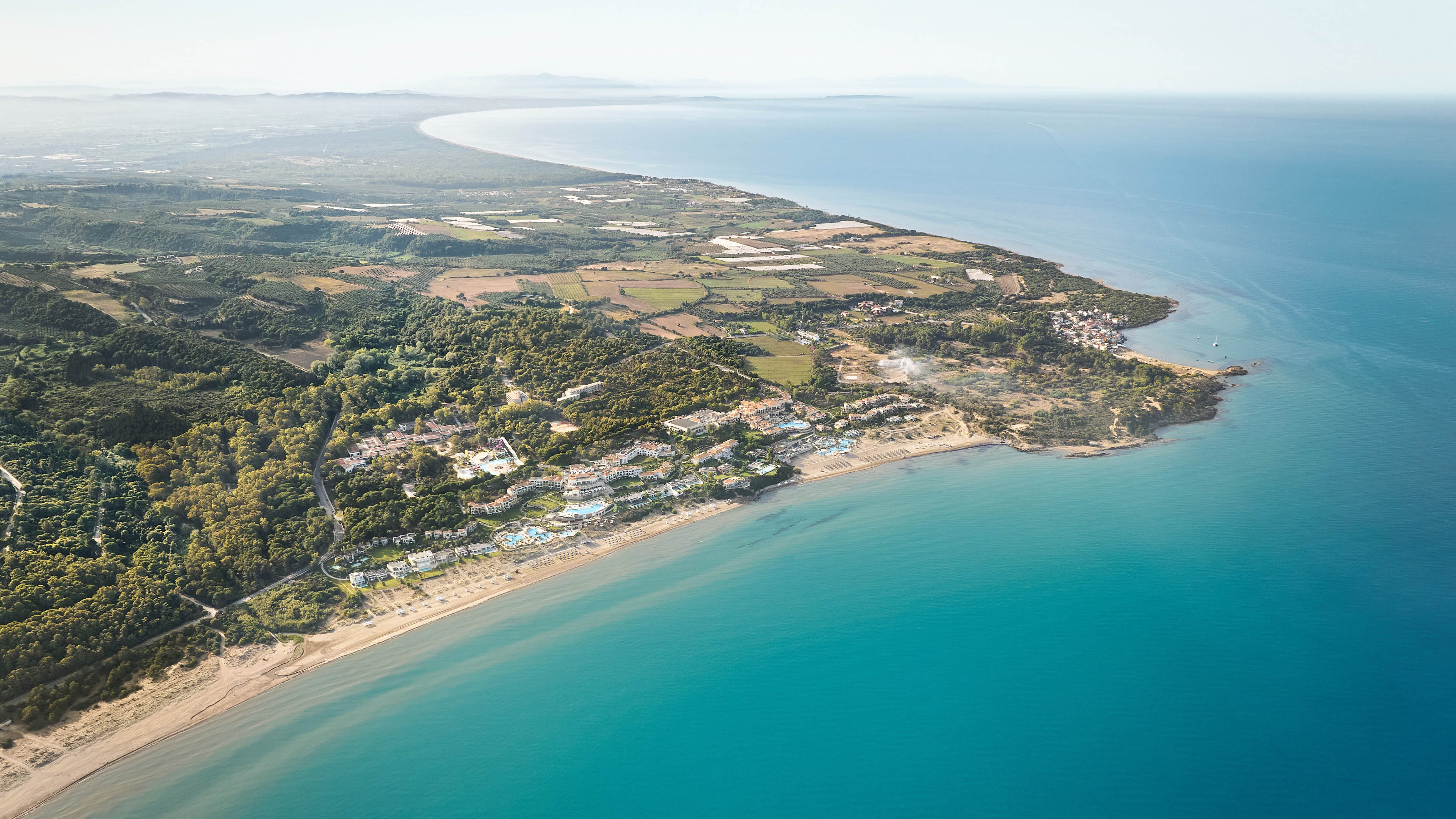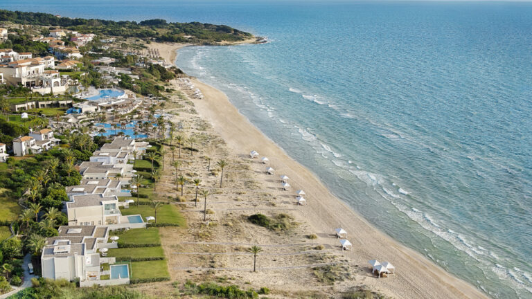 A beach extraordinaire and an infinite horizon. Aquamarine crystal-clear waters of the Ionian Sea and a stunning golden sandy 2 km ‘Blue Flag’ beach.