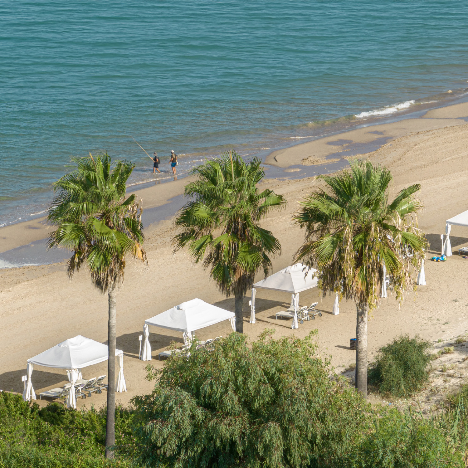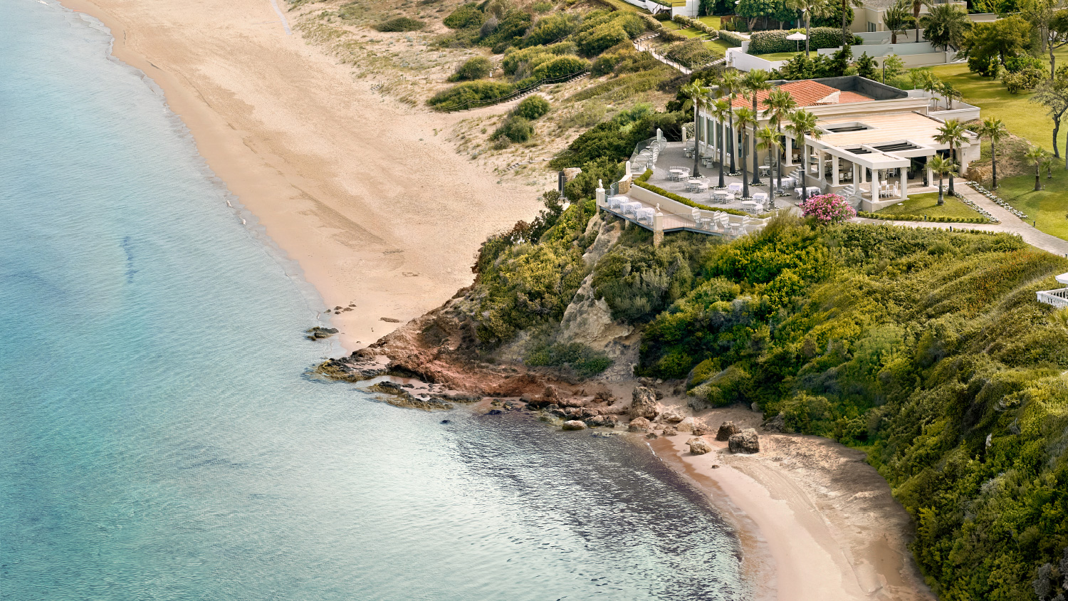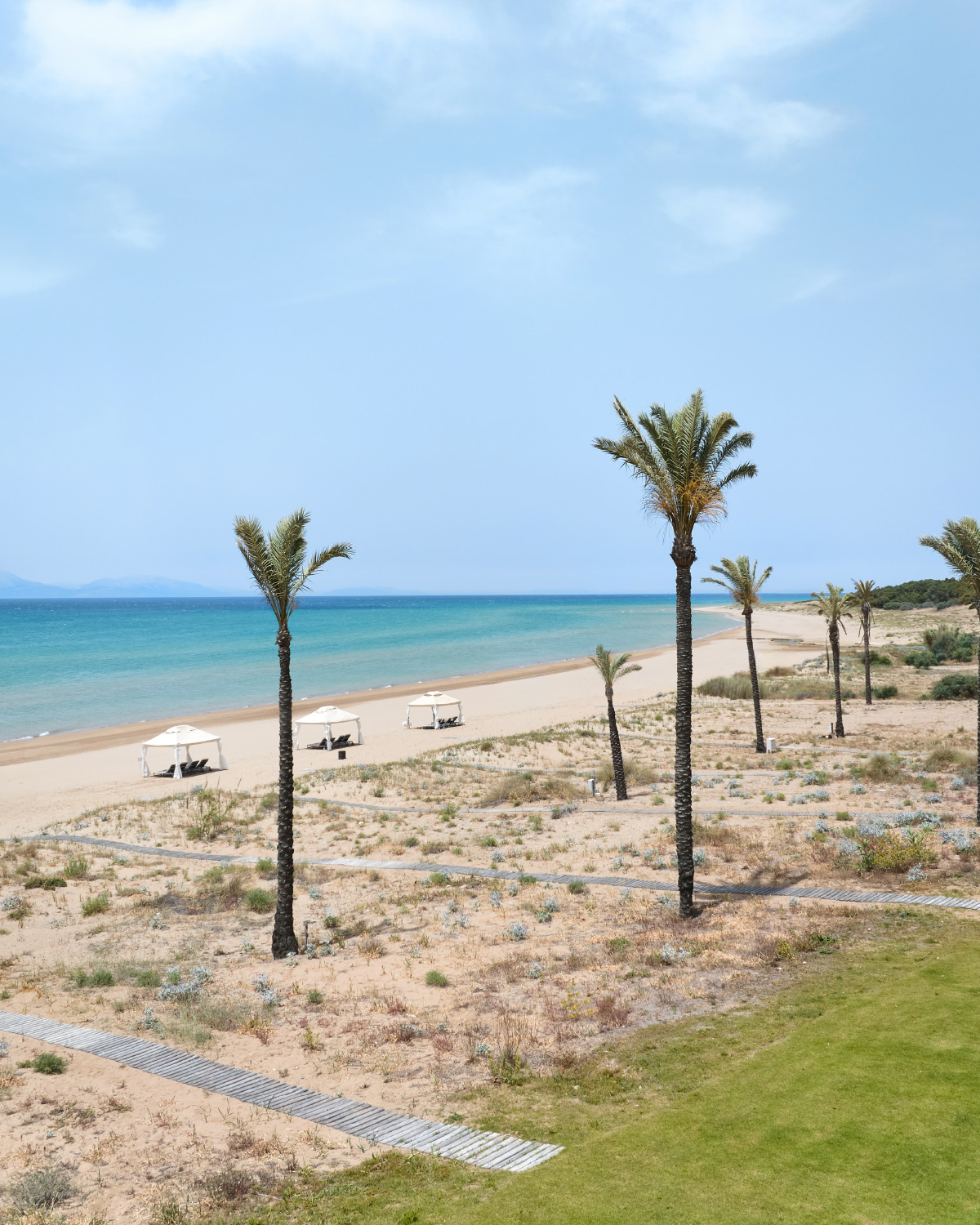 A beach extraordinaire and an infinite horizon. Aquamarine crystal-clear waters of the Ionian Sea and a stunning golden sandy 2 km ‘Blue Flag’ beach.