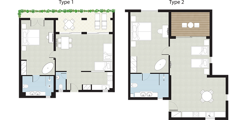 - SIZE: Spacious 60m² suite with master bedroom & distinct living, dining and kitchen areas
