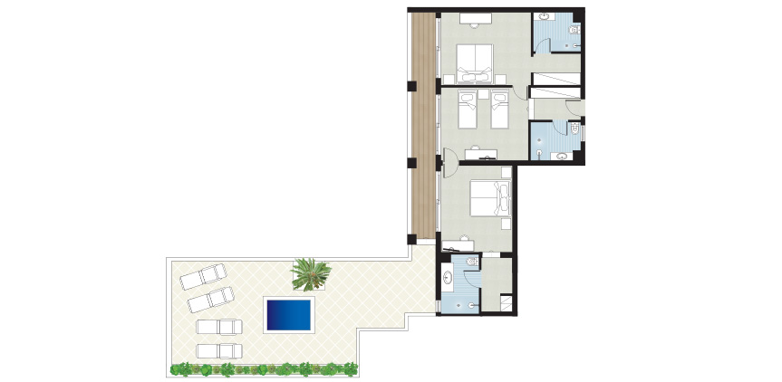 - SIZE: Spacious 70m² room with sliding doors, Exterior 45m²
