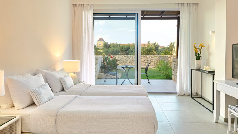 Die Casa Marina Familien-Maisonetten sind speziell für Familien konzipiert und bieten getrennte Schlafräume auf zwei Ebenen sowie eine geräumige, überdachte Außenterrasse mit privatem Garten für gemeinsame Momente unter freien Himmel.