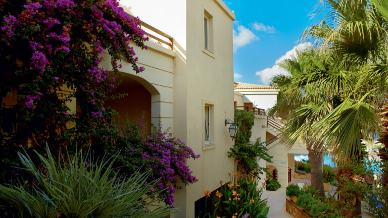 - BLICK: Blick auf die farbenfrohen Gärten des Hotels