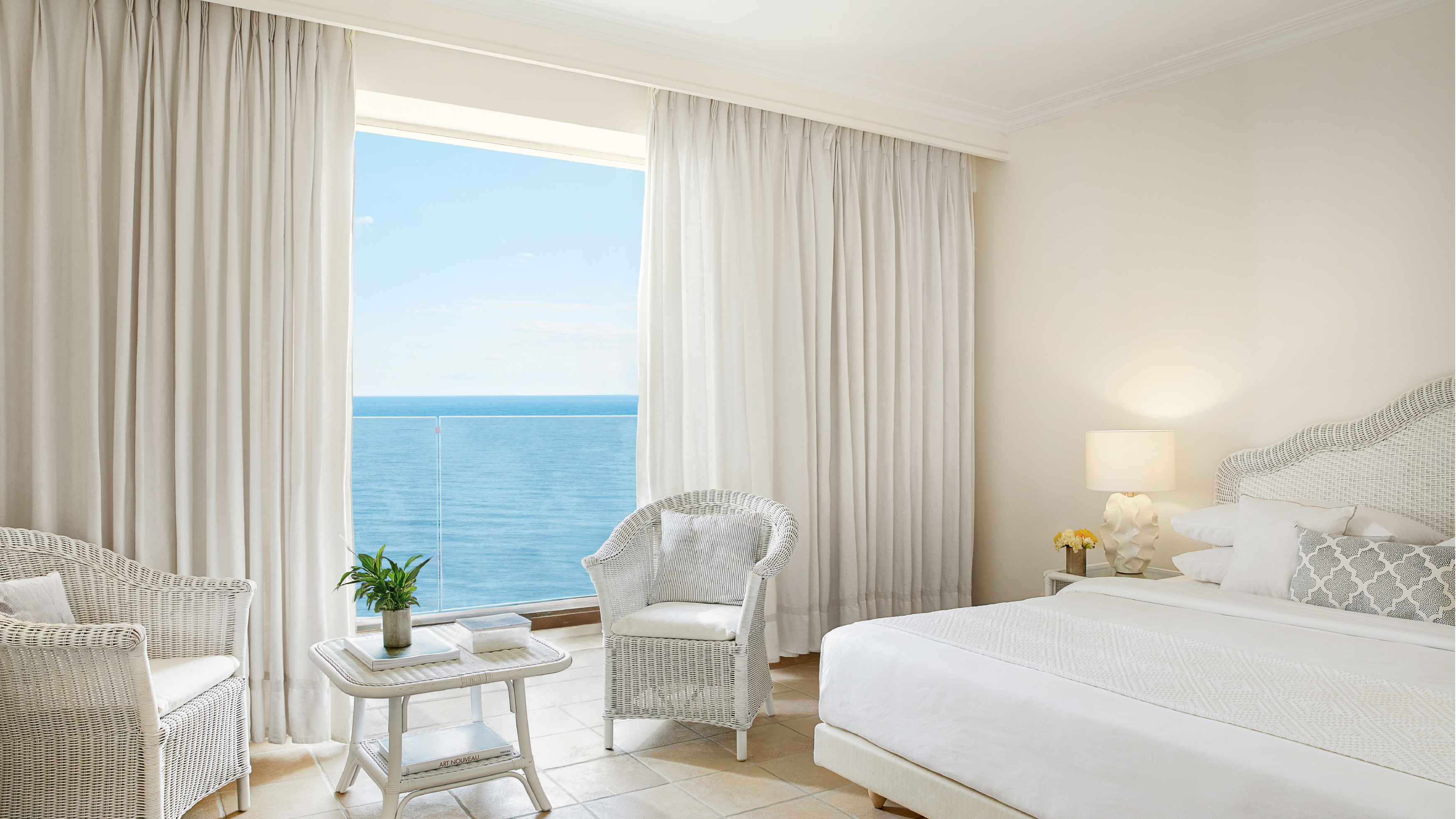 Diese geräumigen Familienbungalows in Meeresnähe sind in kühlen, frischen Farben gehalten, die an die farbenfrohen Gärten erinnern, und bieten zwei Schlafbereiche − perfekt für Familien mit Kindern.