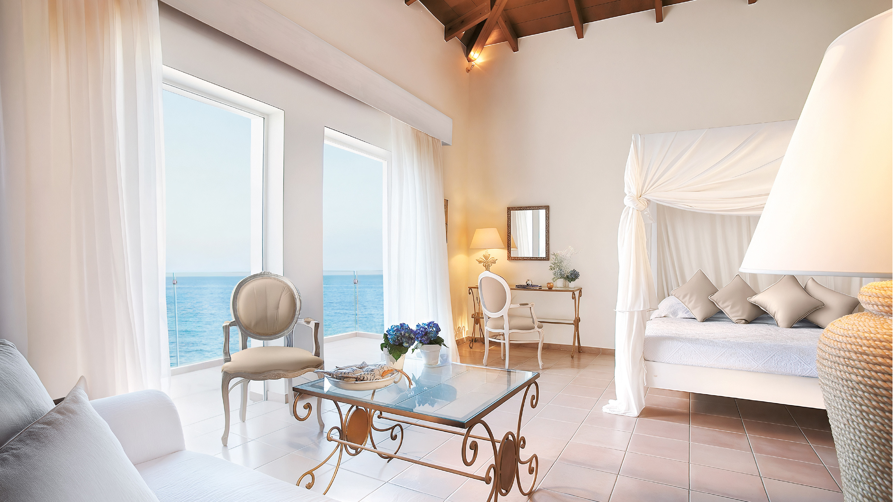 Die ideal ausgestatteten, direkt am Meer gelegenen Suiten sind komfortable und geräumige Unterkünfte, die speziell für Familien konzipiert wurden. Die Suiten in Lapislazuli- und Cremetönen bestehen aus zwei getrennten Schlaf- und Wohnbereichen.