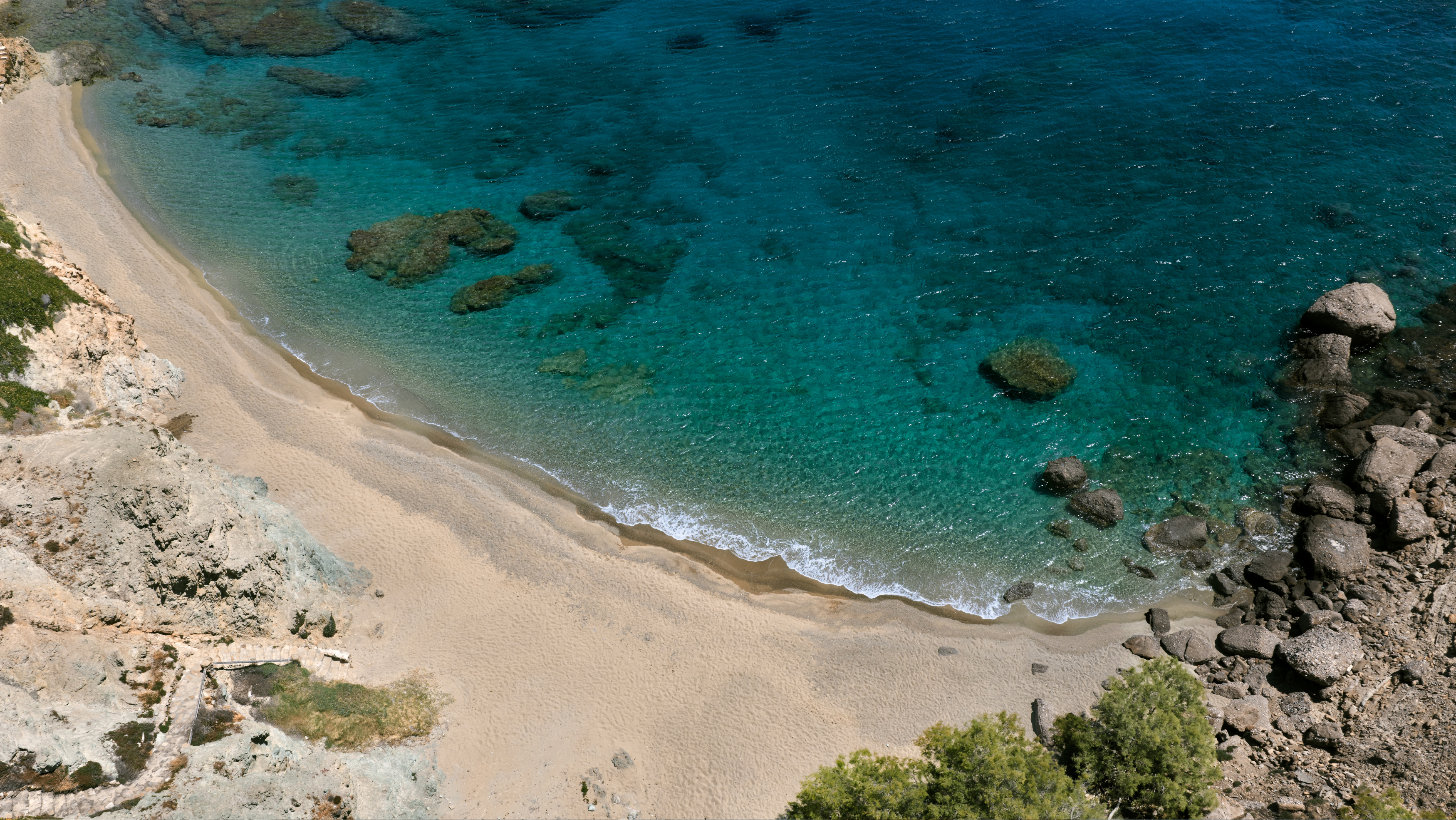 Direct access to a private beach, a hidden gem of Mykonos amid untouched natural surroundings.