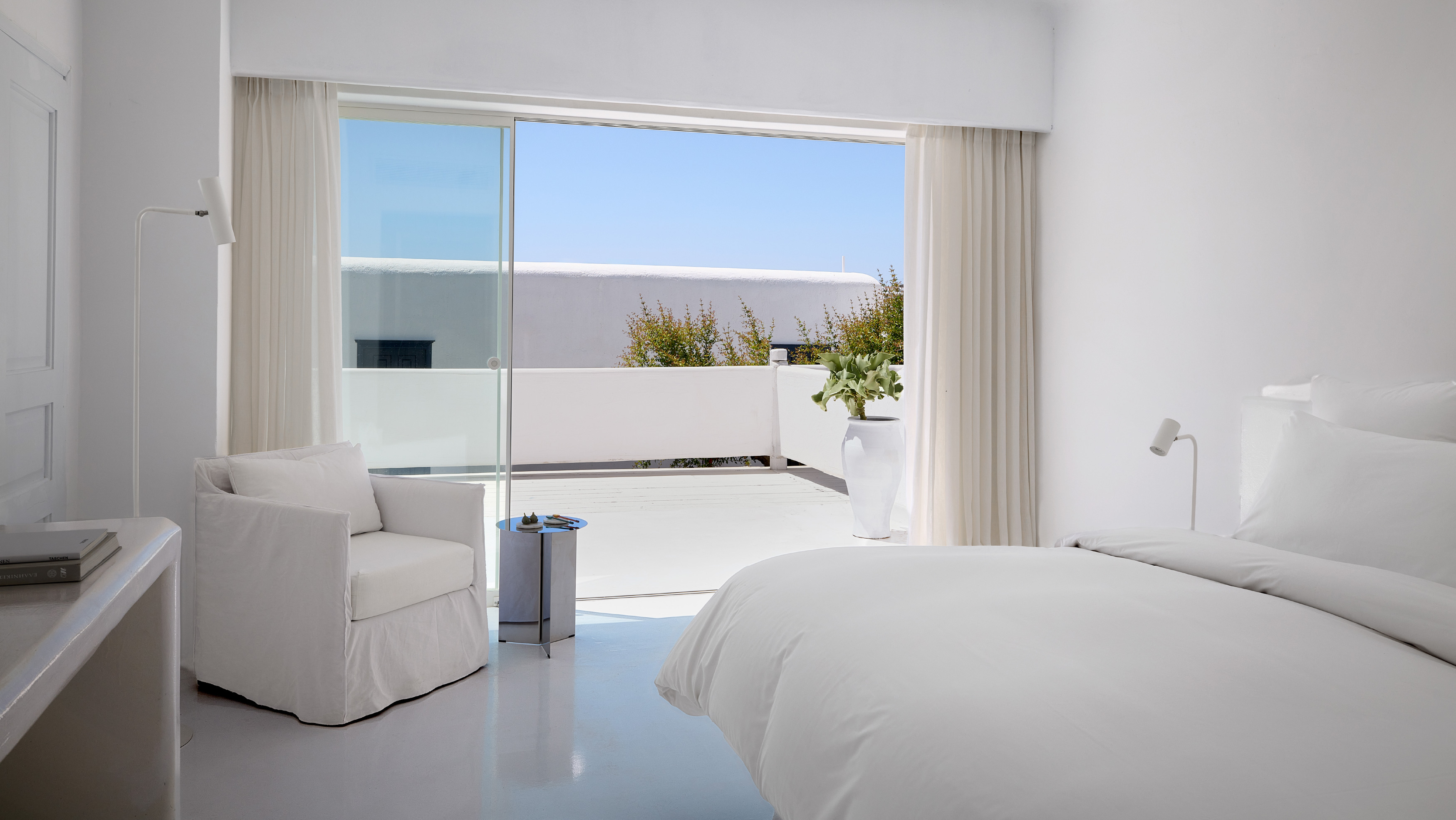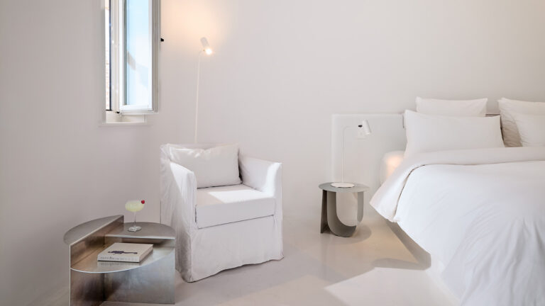 Cycladic-style bungalows clustered in small groups throughout the gardens. Cool and stylish with romantic touches.
