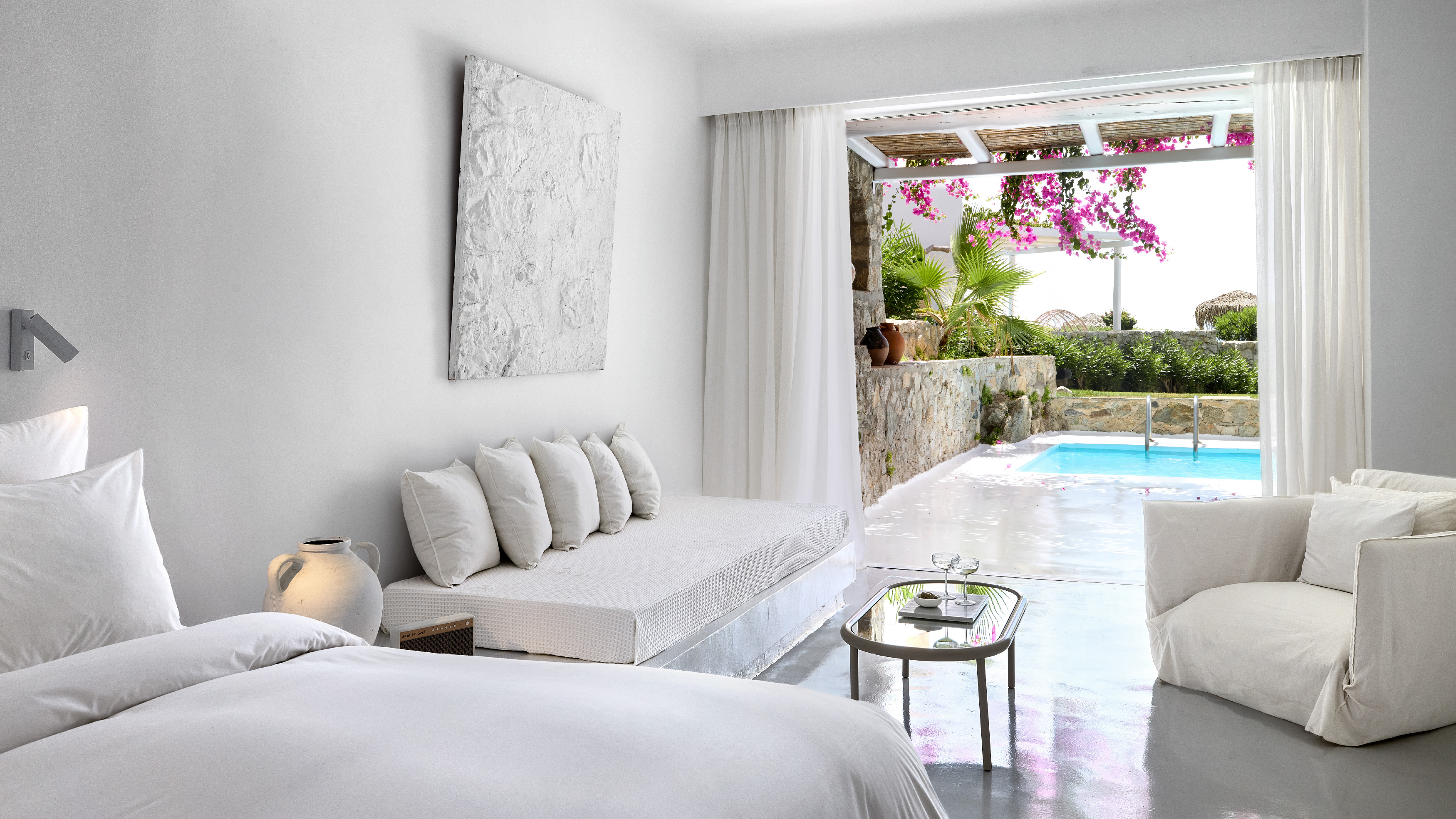 Spacious accommodation, a haven to relax, with sleeping, dining, and living areas within an open-plan design, furnished with many eclectic details.