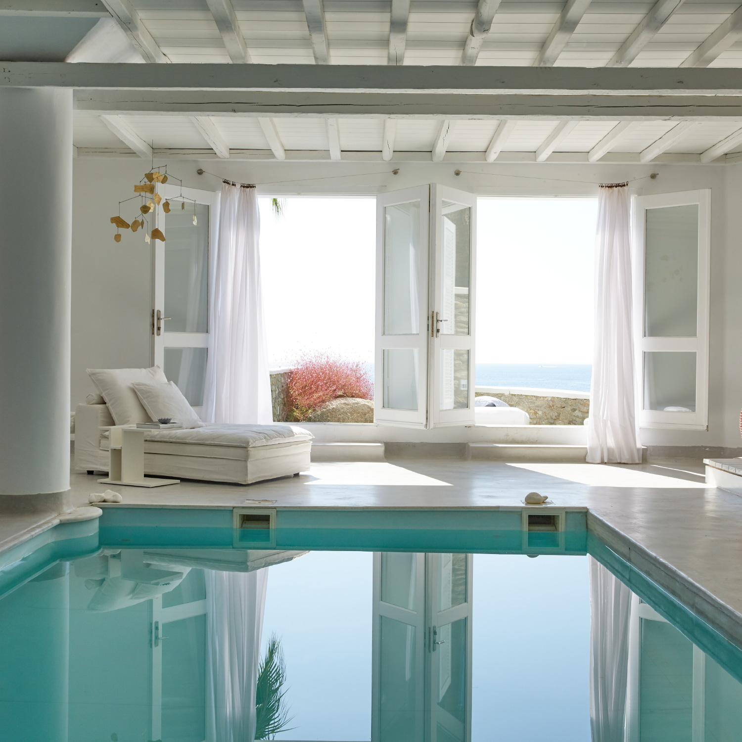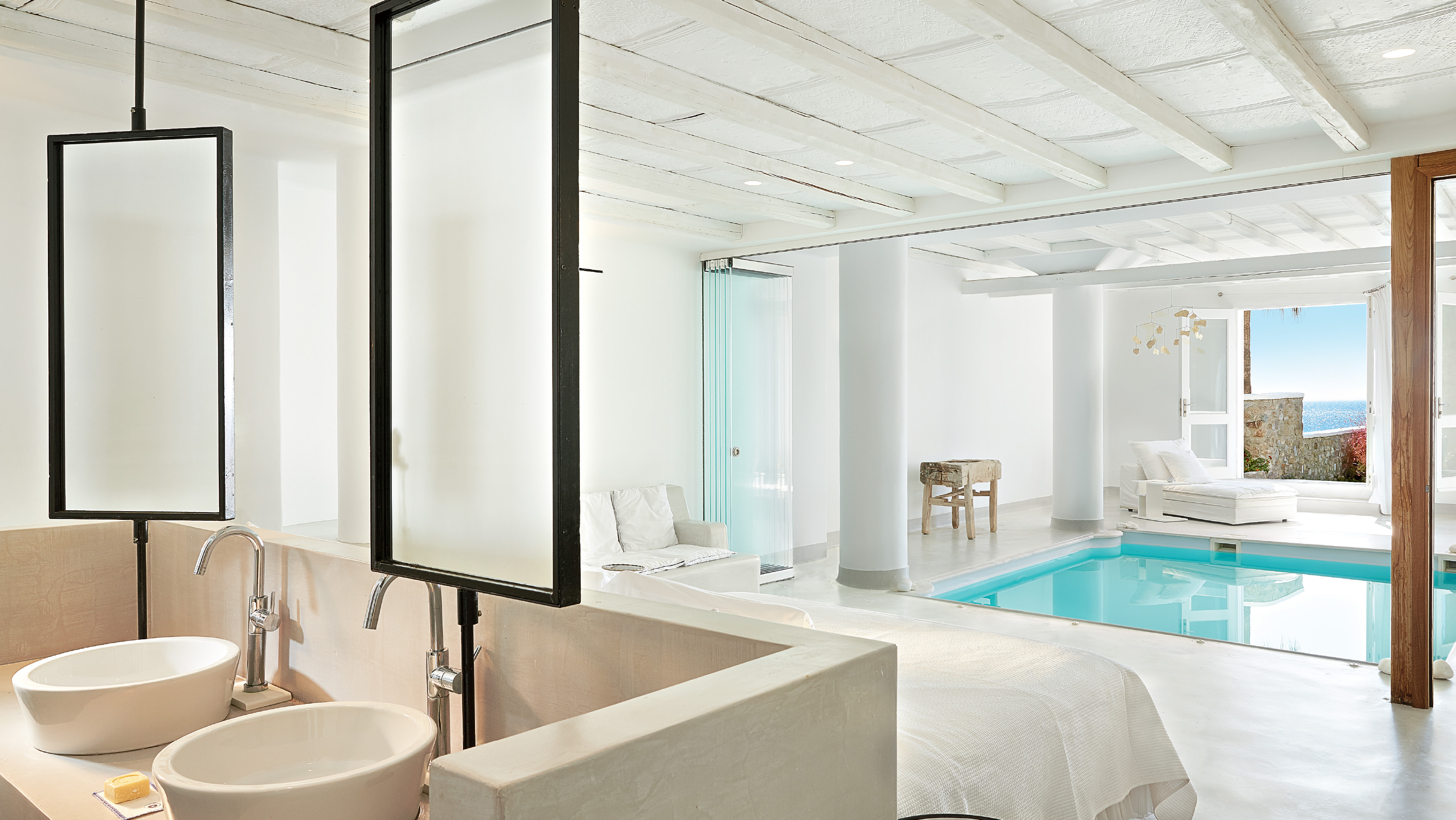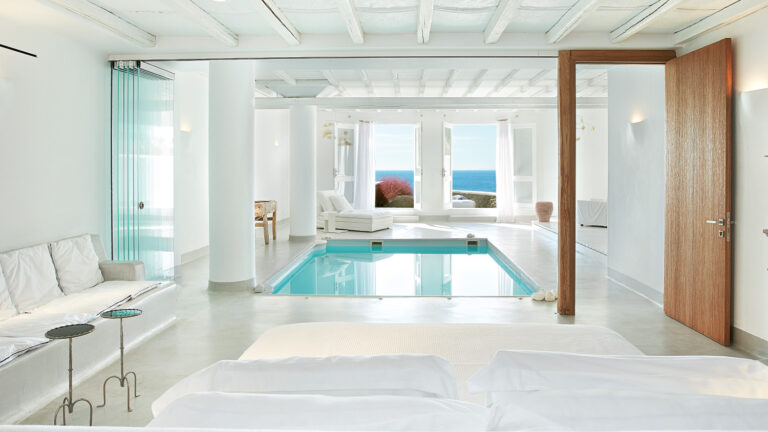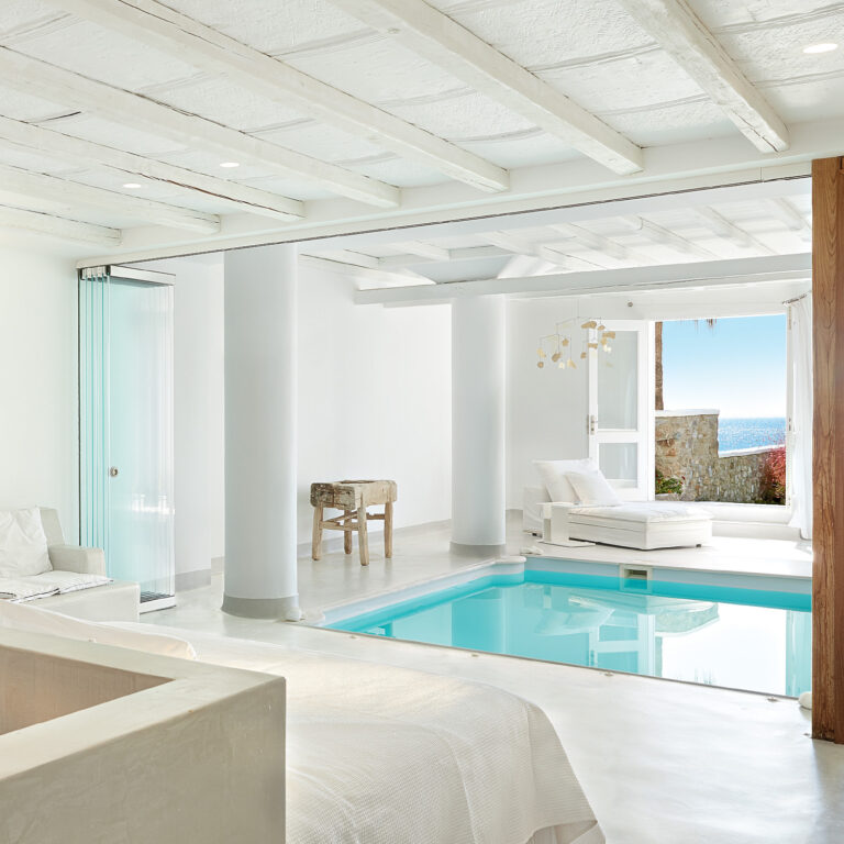 Luna Blu Suite with private indoor pool is the most extravagant romantic suite on Mykonos Island.