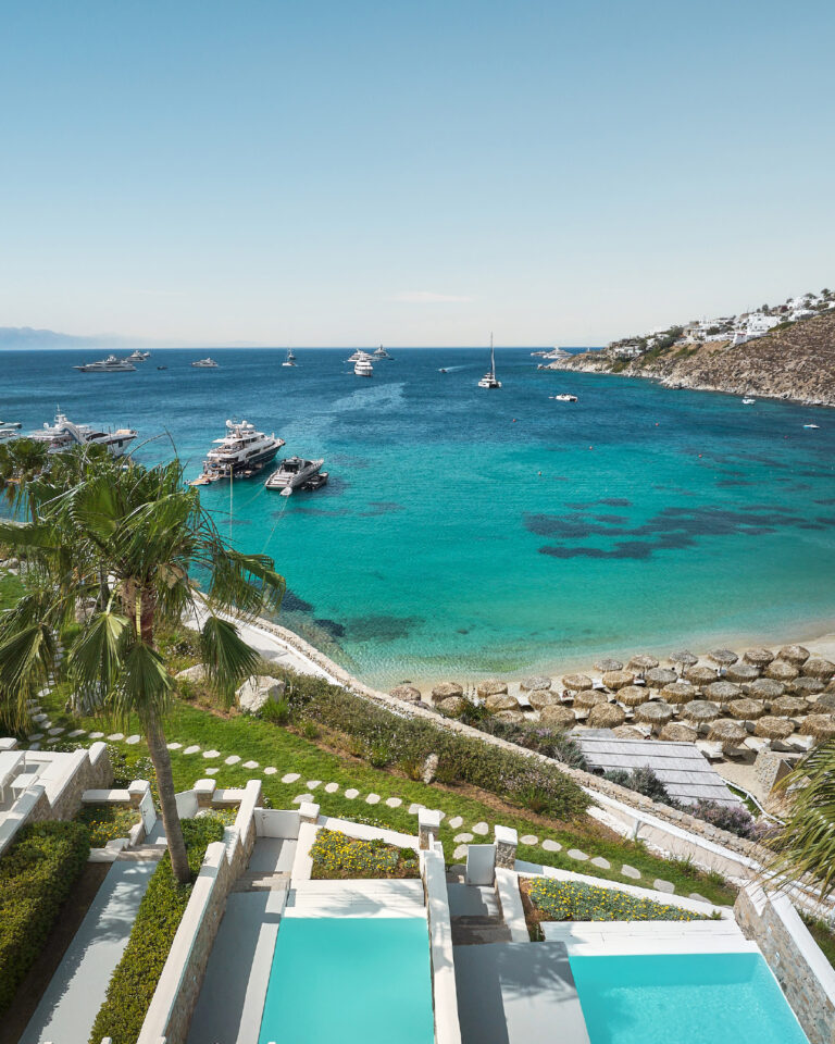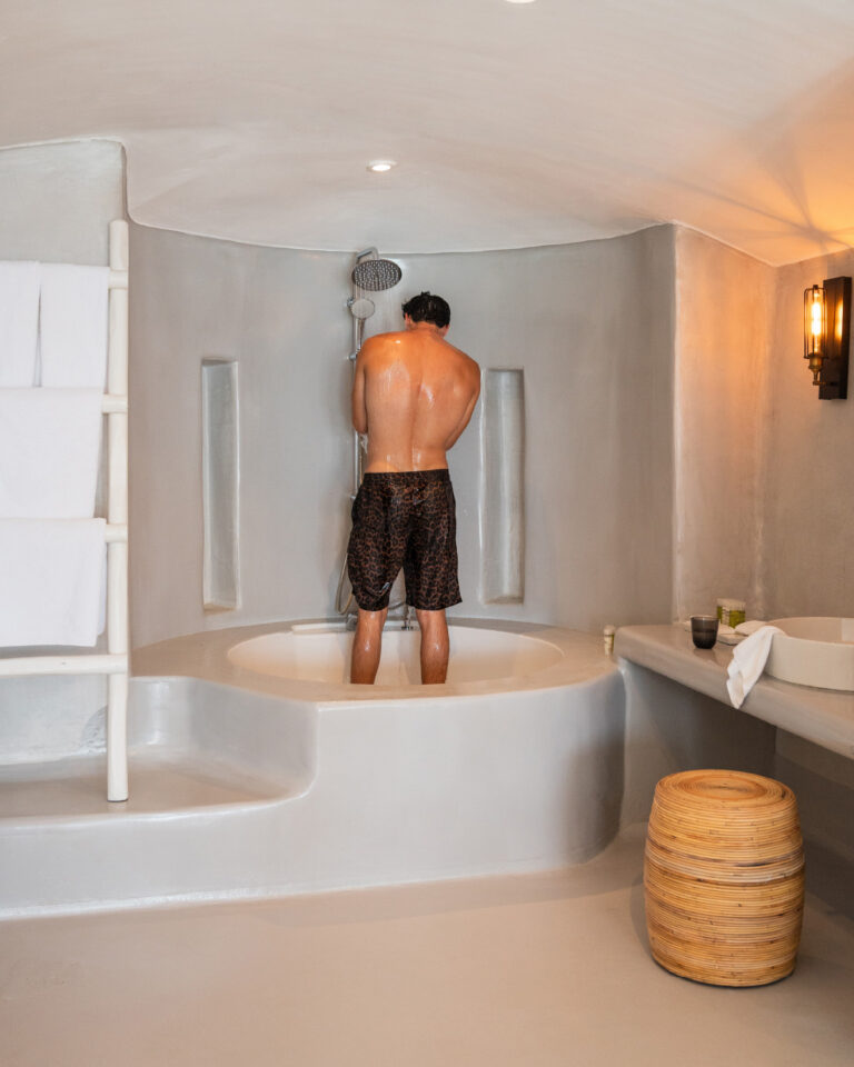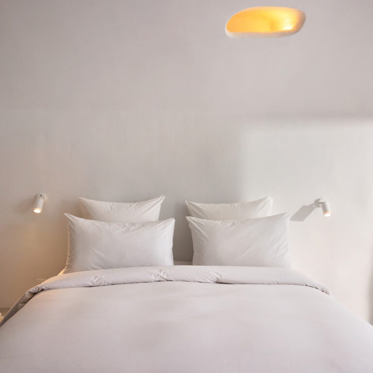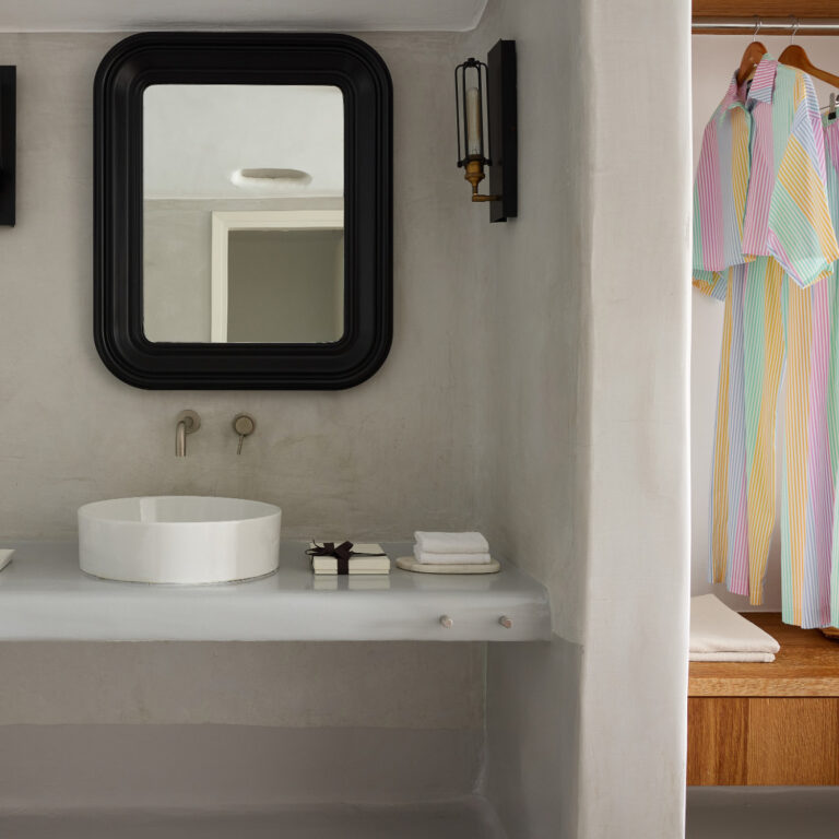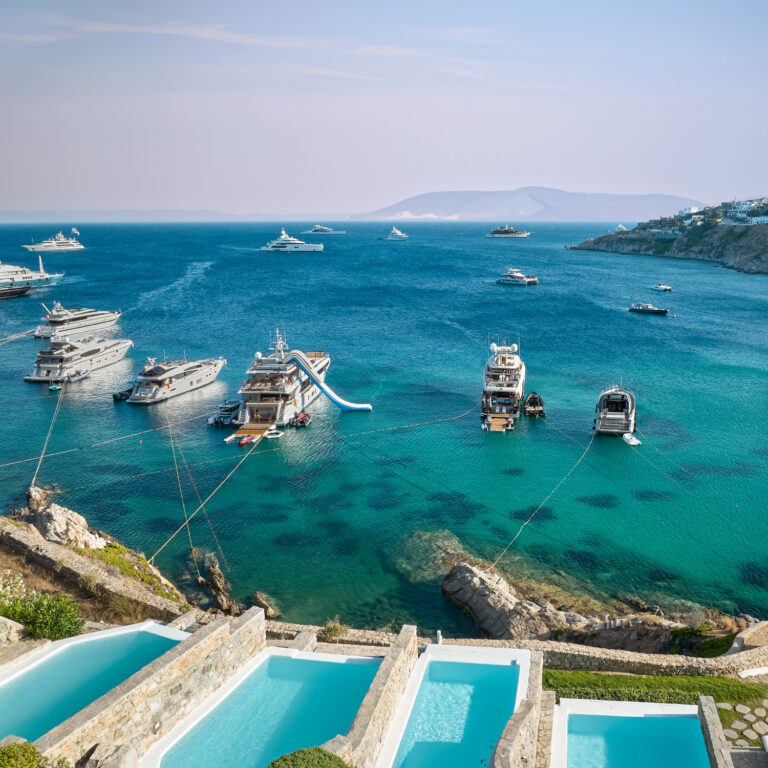 Open Plan Suites with private infinity pools are the ultimate extravagance in Mykonos Blu’s remarkable setting. Aegean-inspired romantic decor filters the sun’s rays through the half-open shutters.